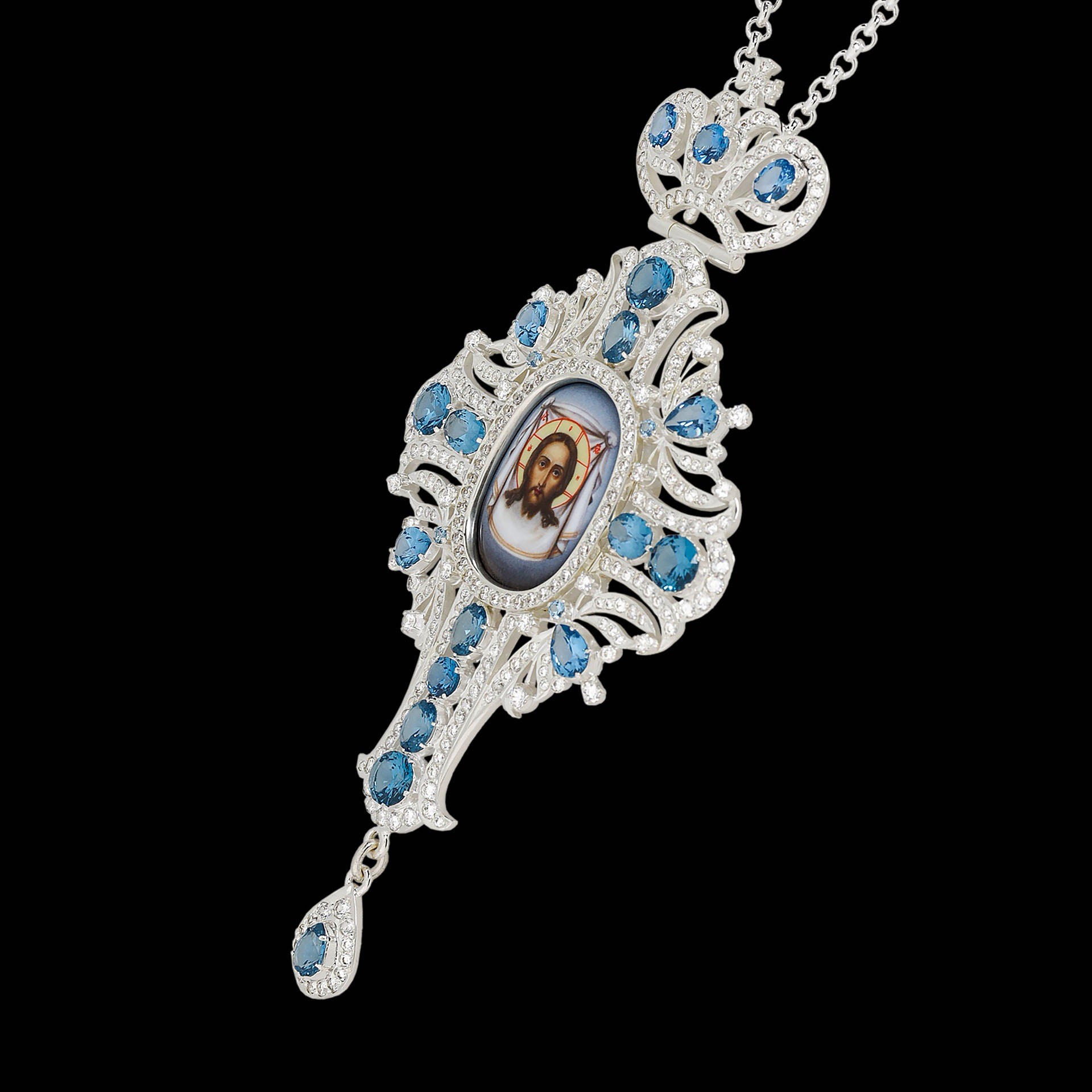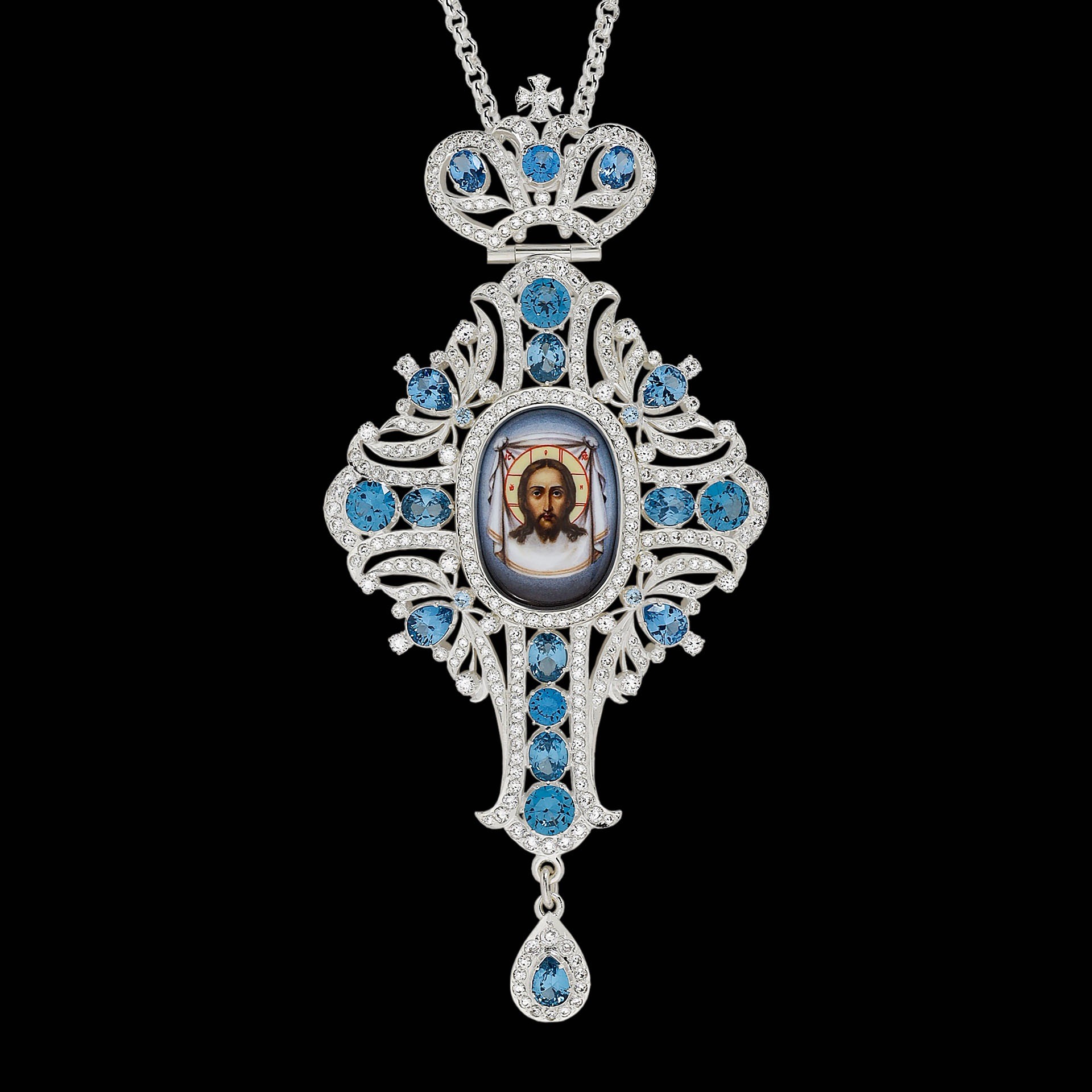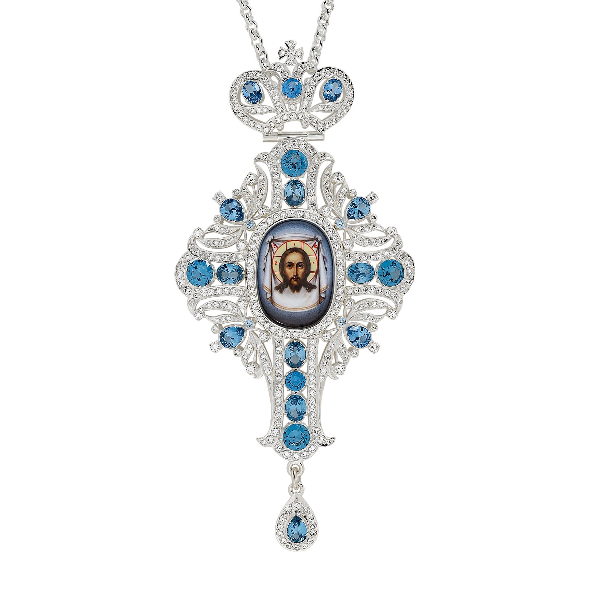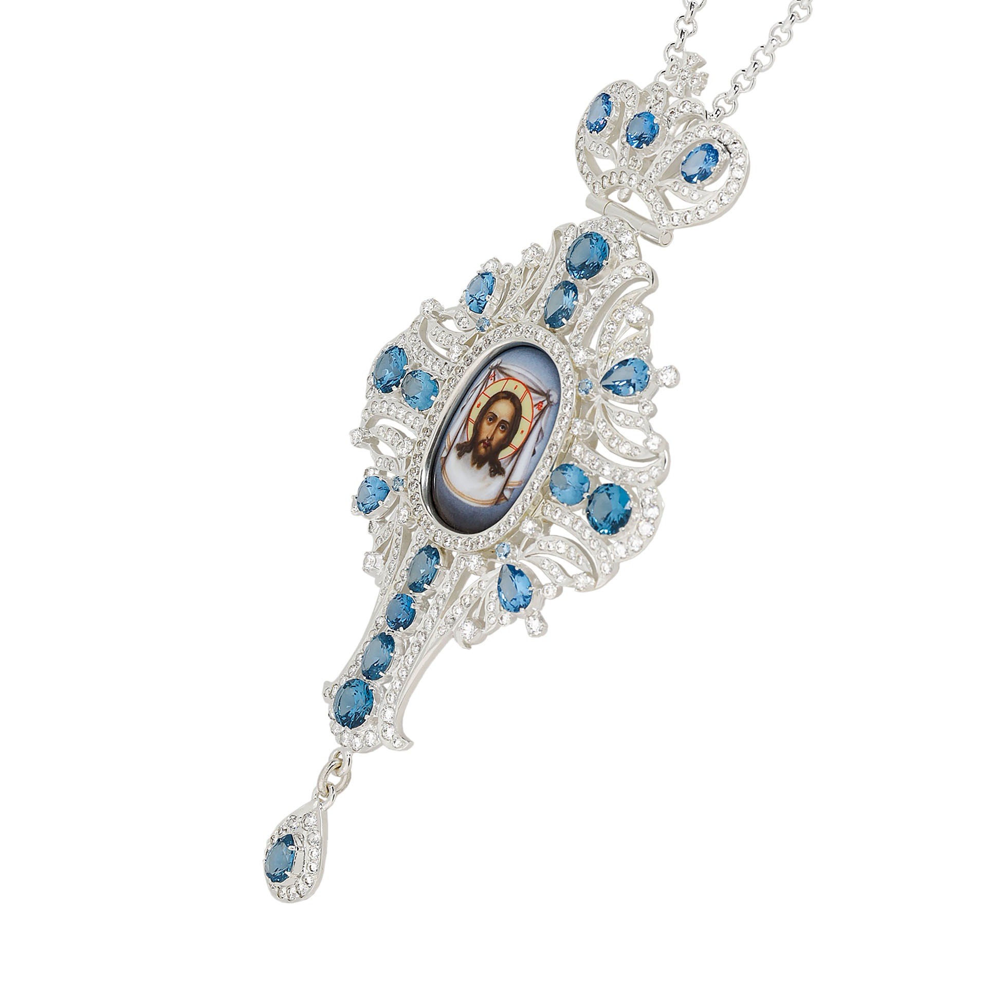 Крест архиерейский №210 / Фианиты деколь / серебрение
