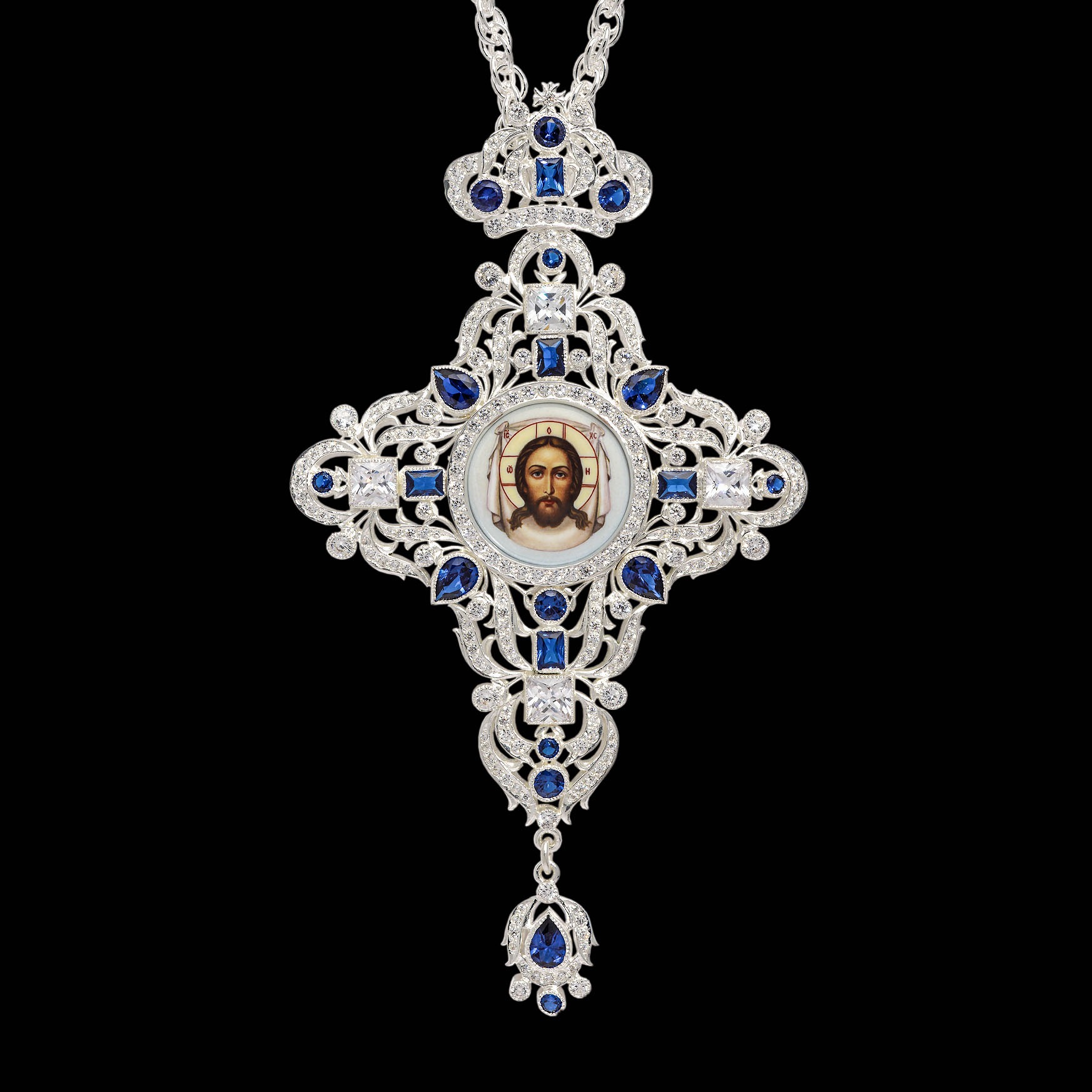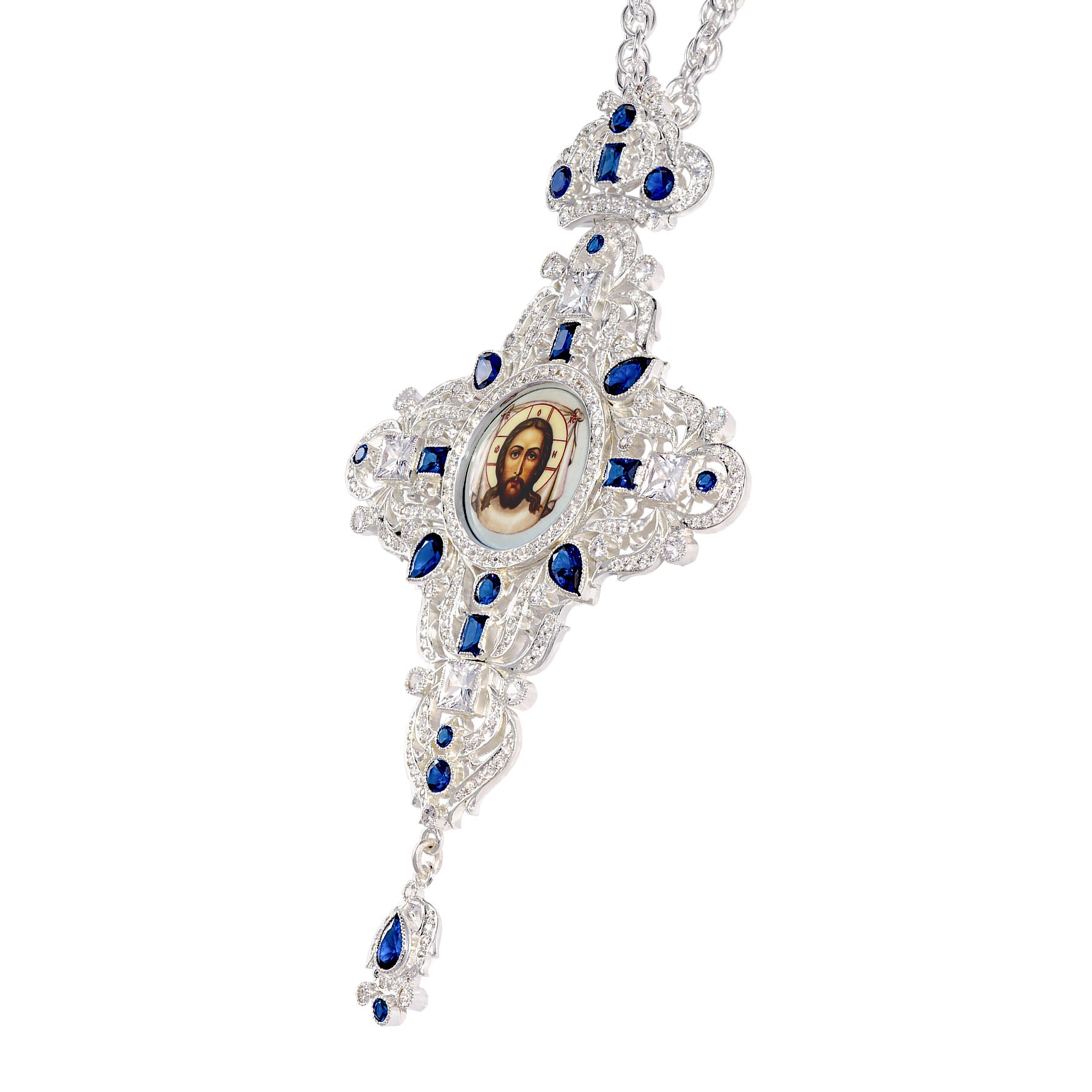 Крест архиерейский №213 / Фианиты деколь / серебрение