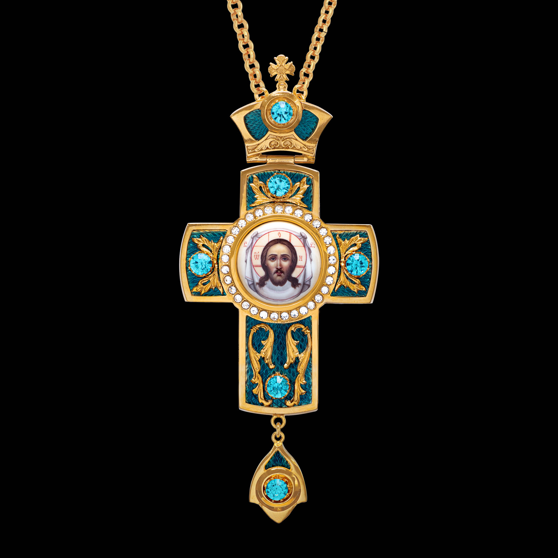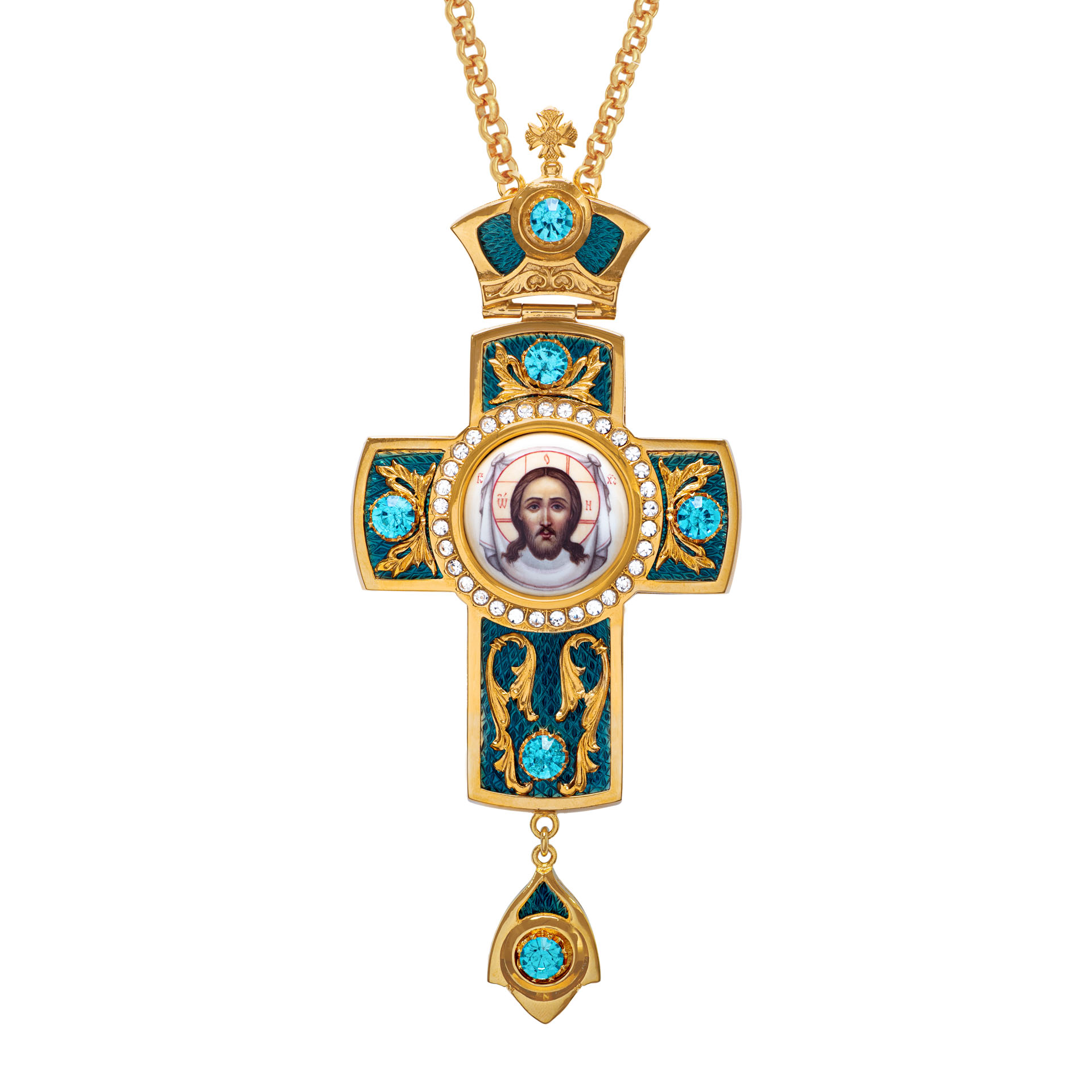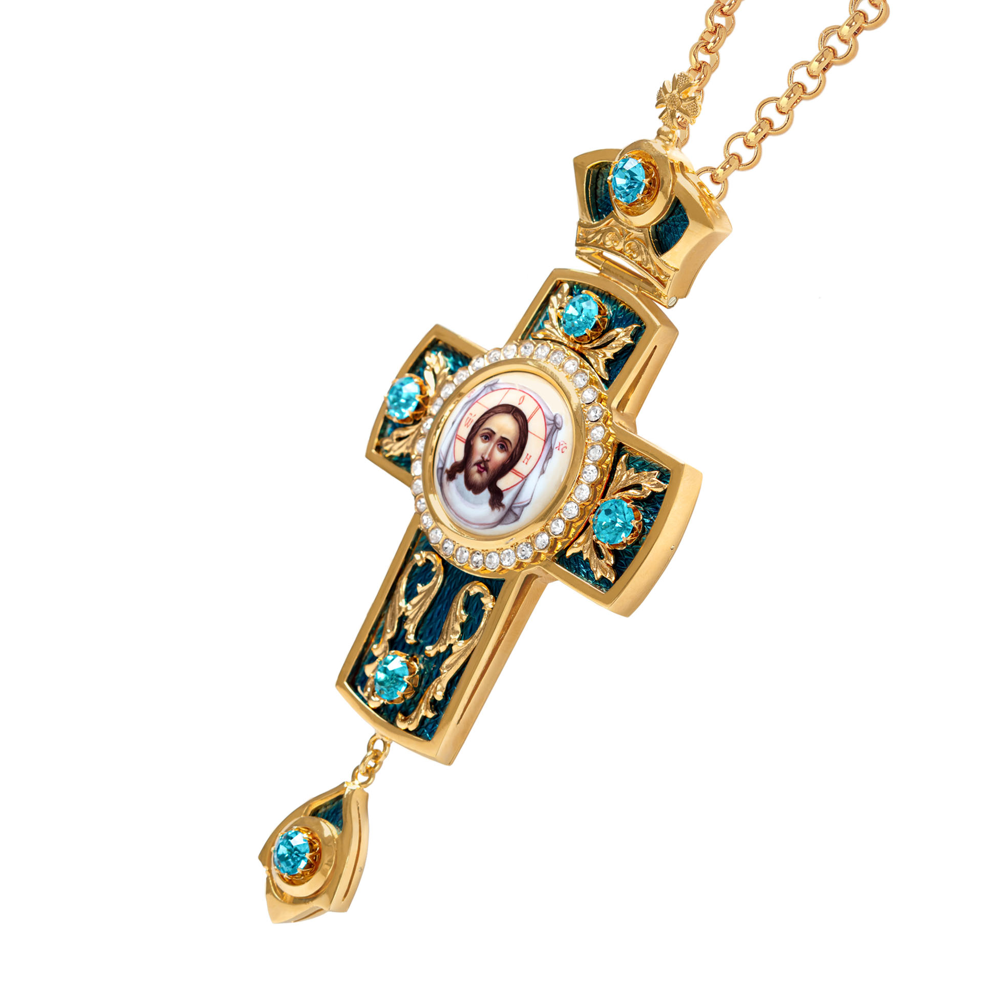 Крест архиерейский №38 эмаль финифть / круглая / золочение
