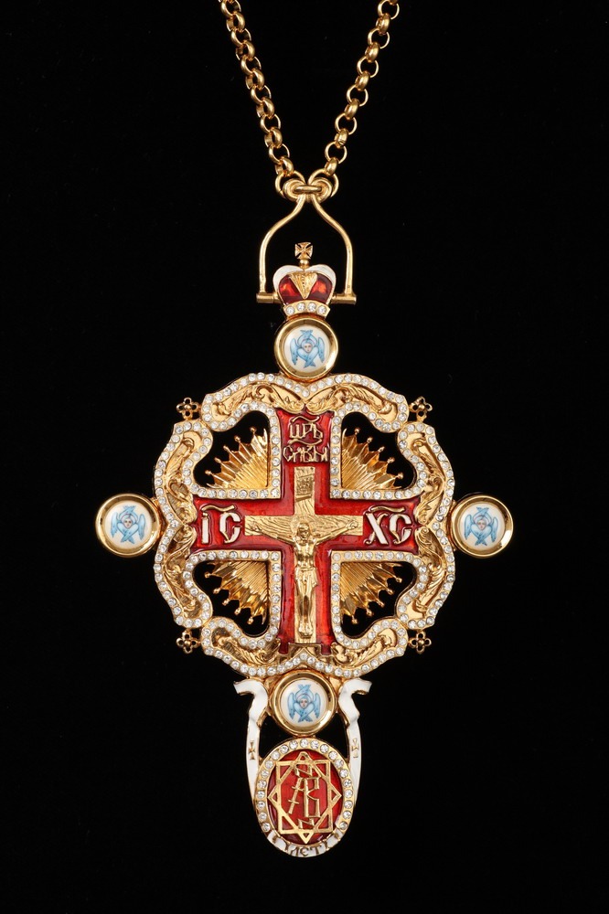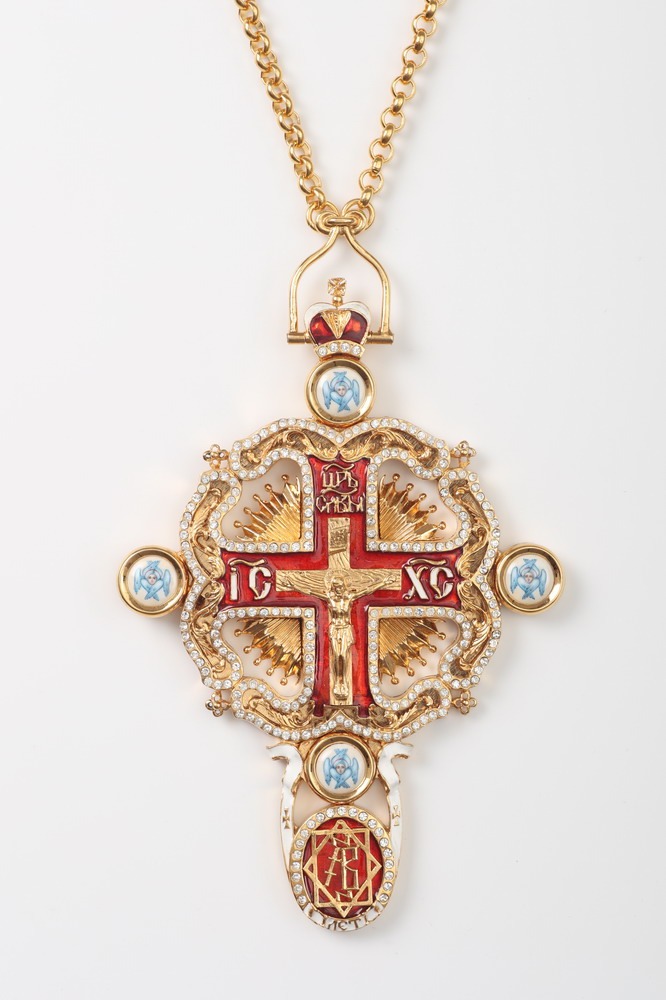 Крест архиерейский №52 литьевое распятие, финифть, эмаль / золочение