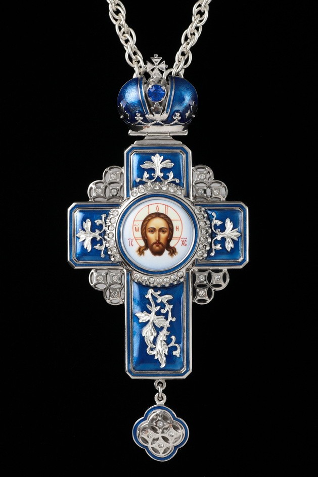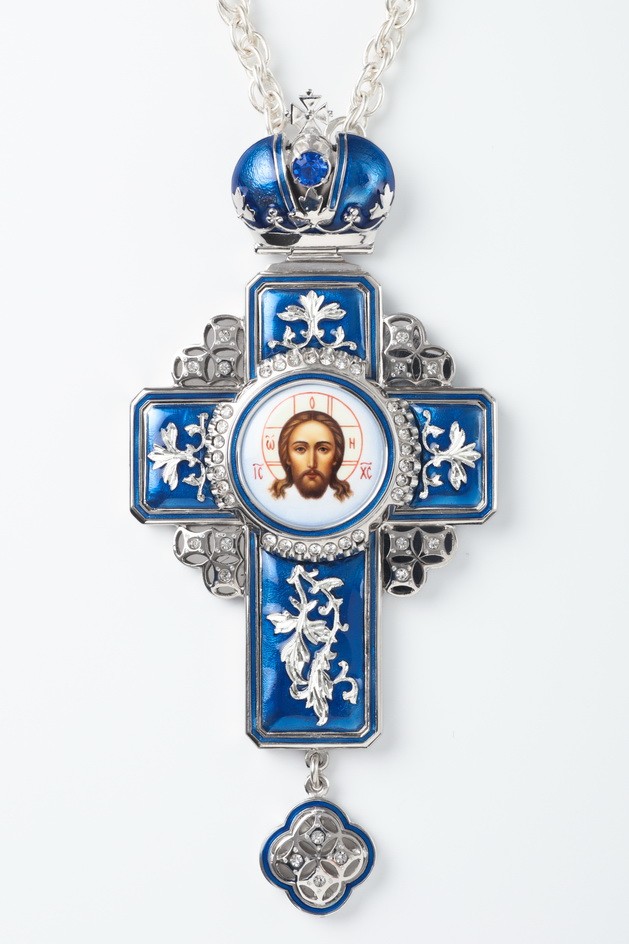 Крест архиерейский №8 серебро эмаль, финифть / круглая / (УИН)