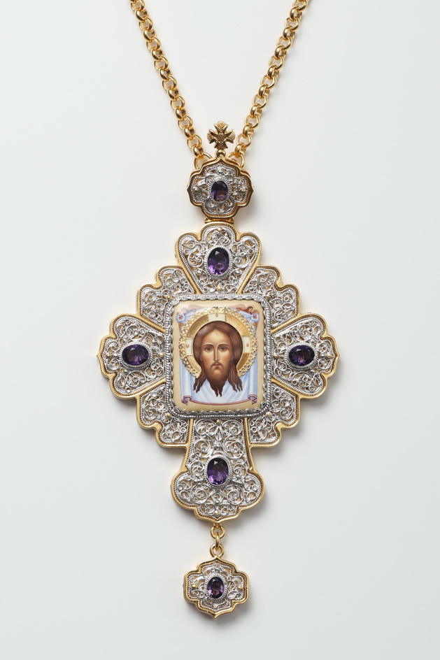 Крест архиерейский филигрань №0001 двойной рант финифть / золочение, серебрение