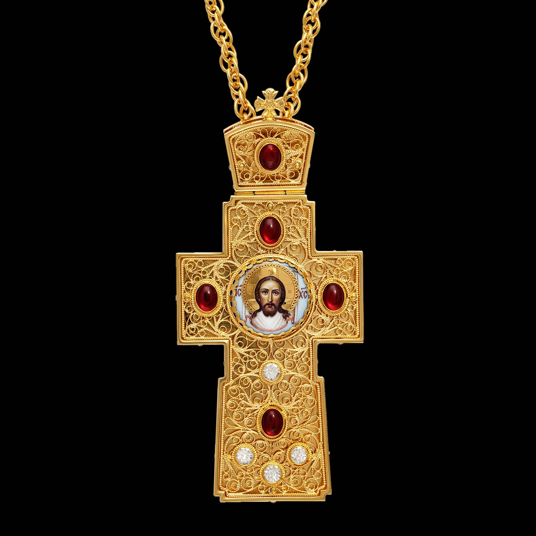 Крест архиерейский филигрань №0003 двойной рант деколь / круглая / золочение