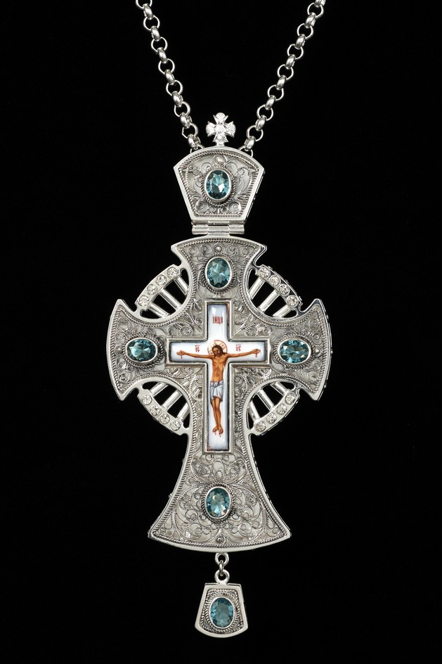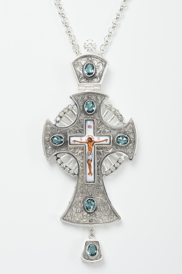 Крест архиерейский филигрань №0007 двойной рант финифть / серебрение
