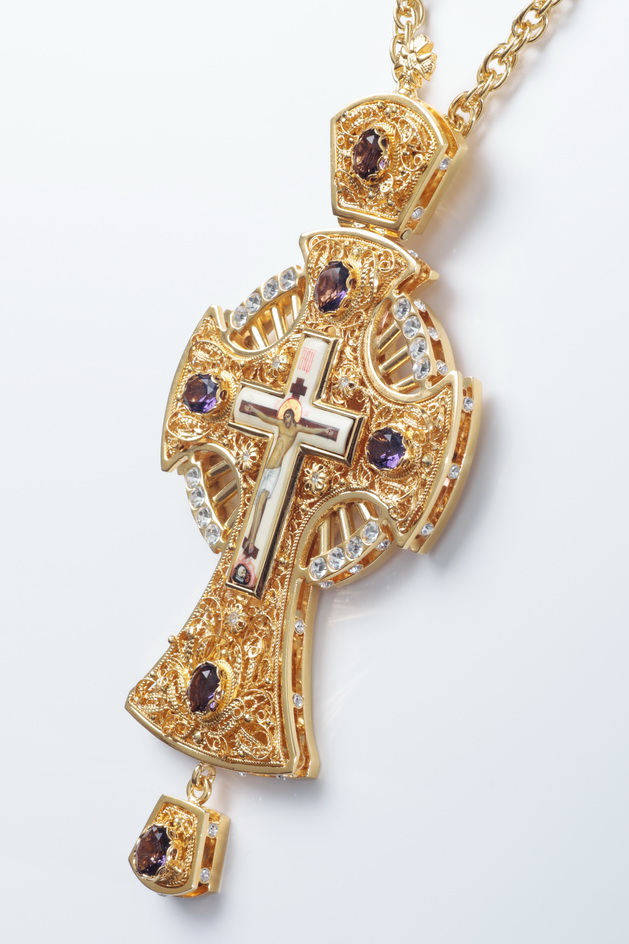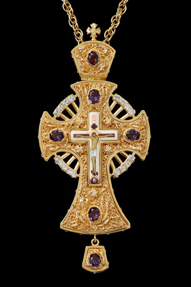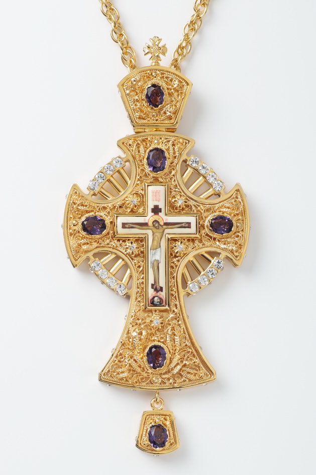 Крест архиерейский филигрань №0007 двойной рант живопись / золочение