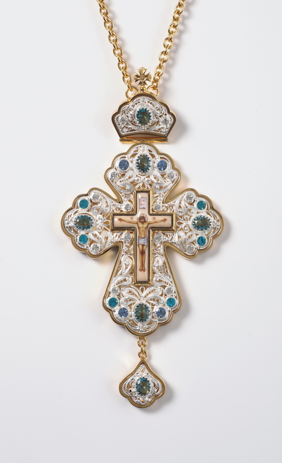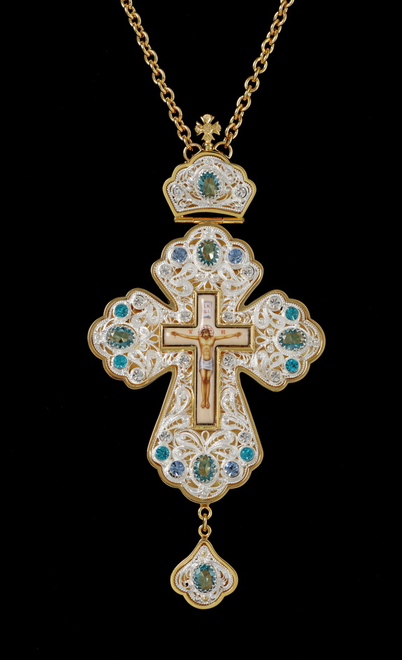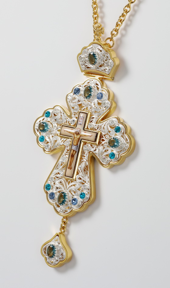 Крест архиерейский филигрань №0009 коробка финифть / золочение, серебрение