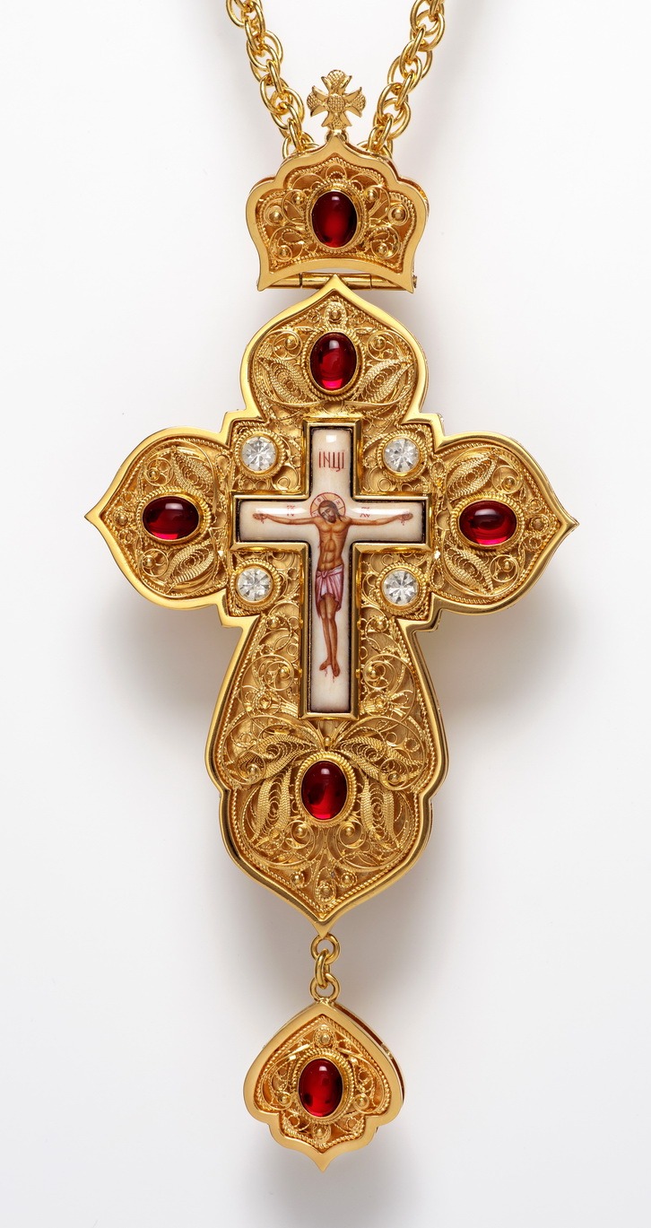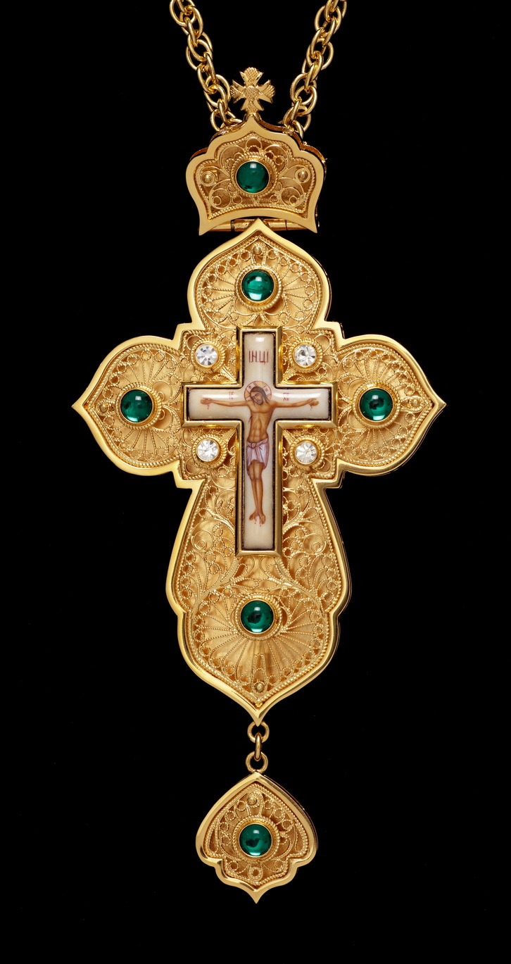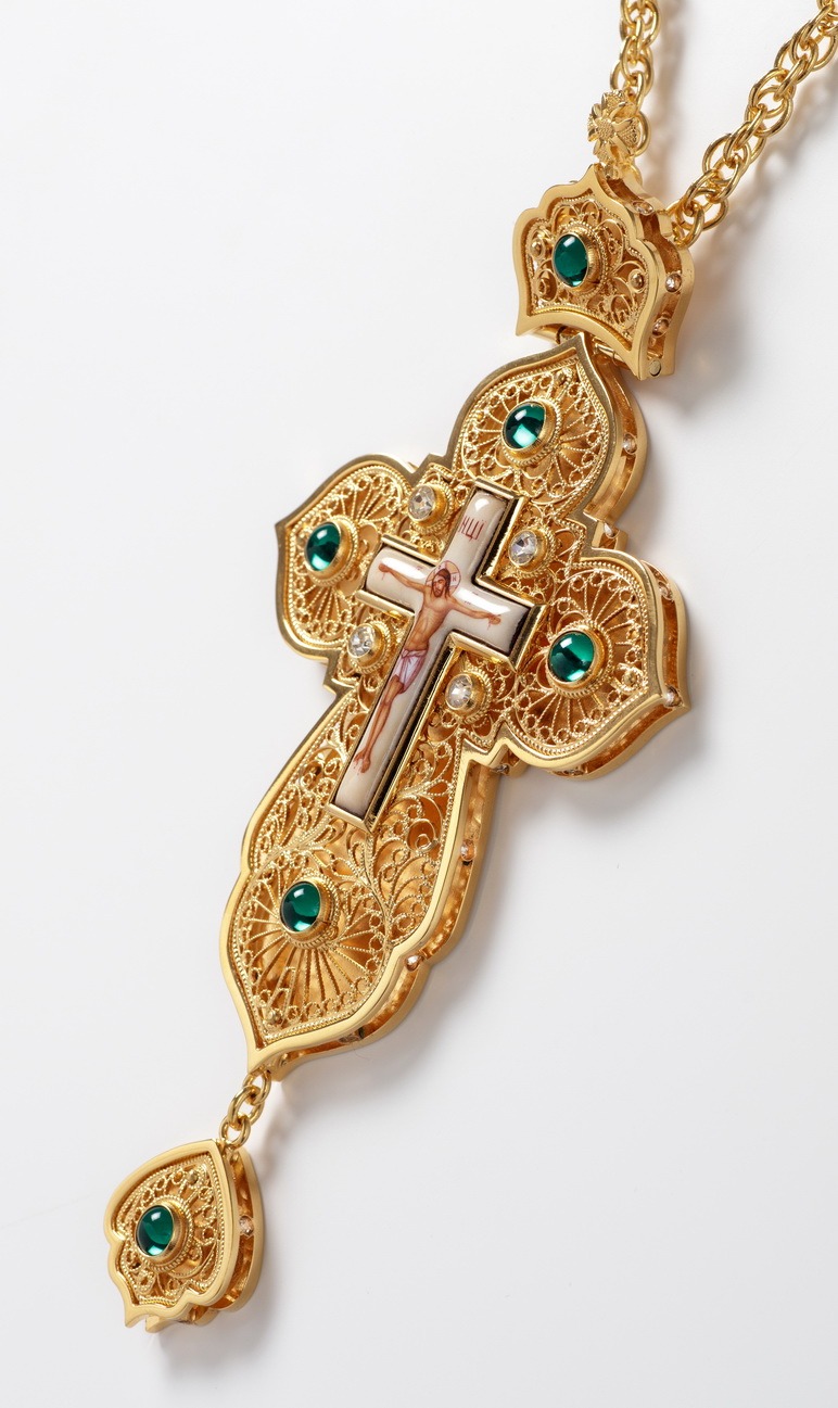 Крест архиерейский филигрань №0015 двойной рант финифть / золочение