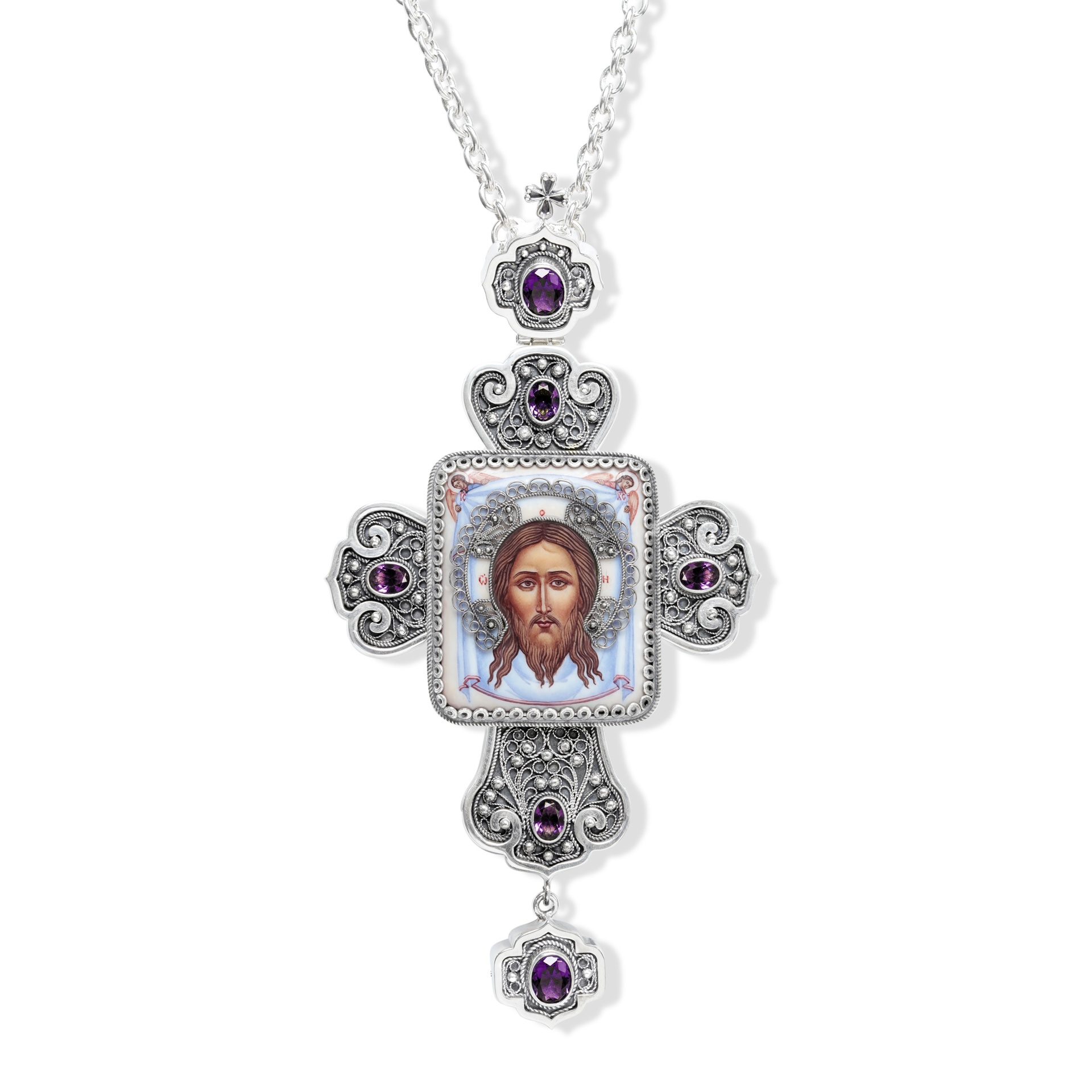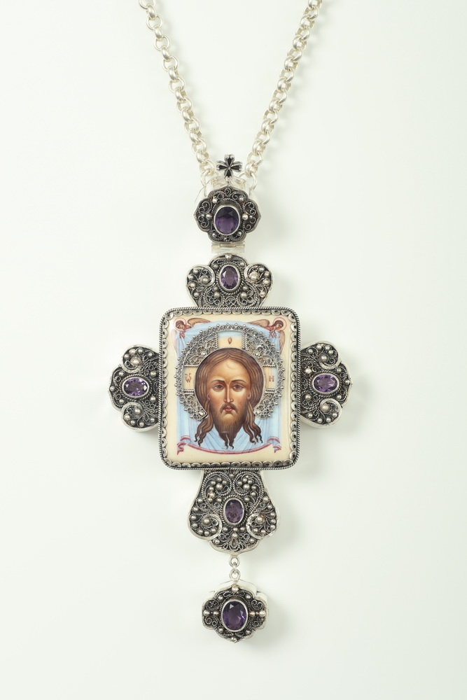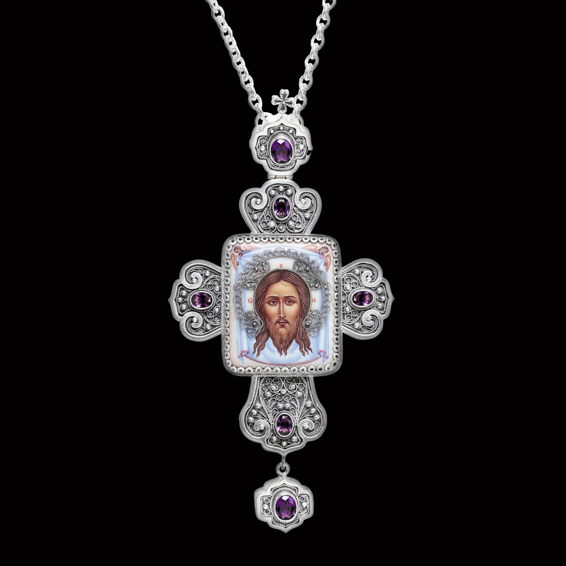 Крест архиерейский филигрань №4 финифть серебро (УИН)