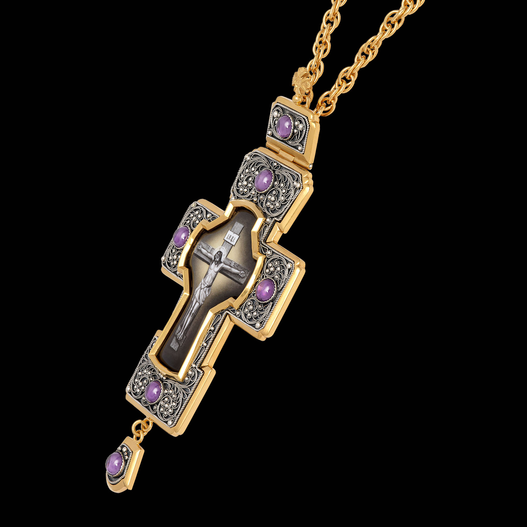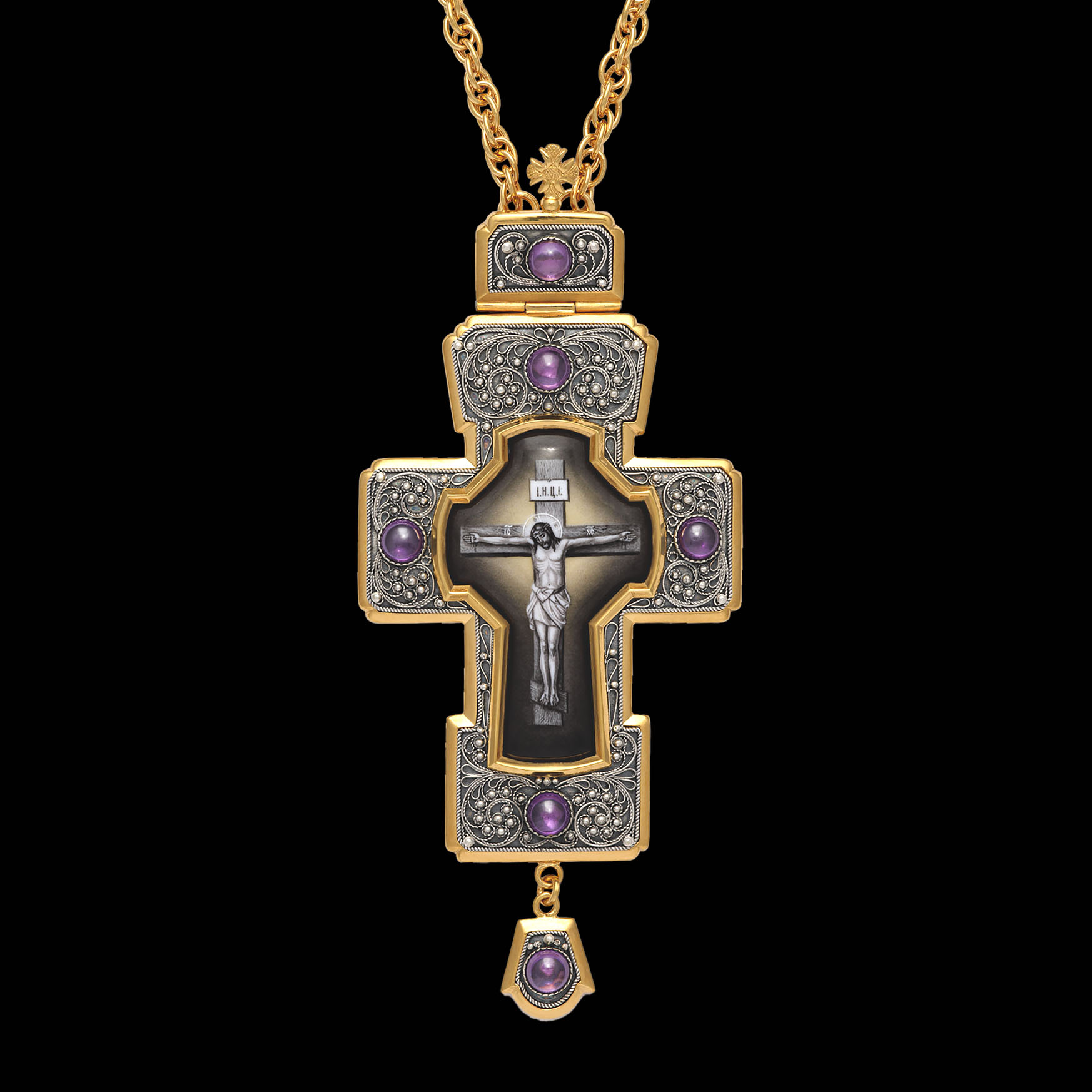 Крест архиерейский филигрань №7 деколь / золочение / серебро (УИН)