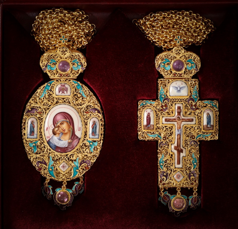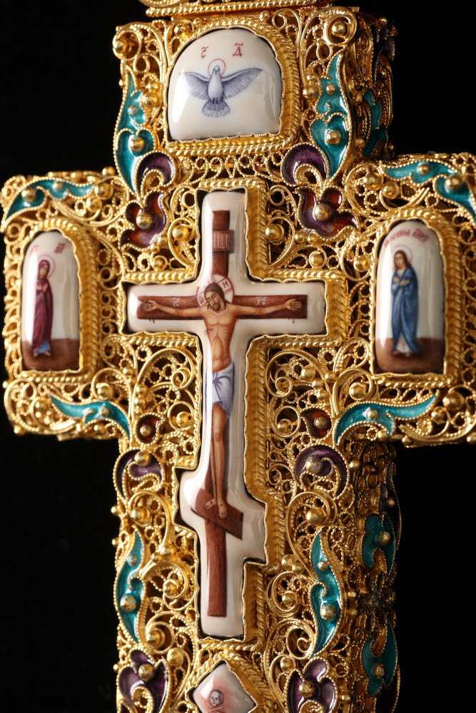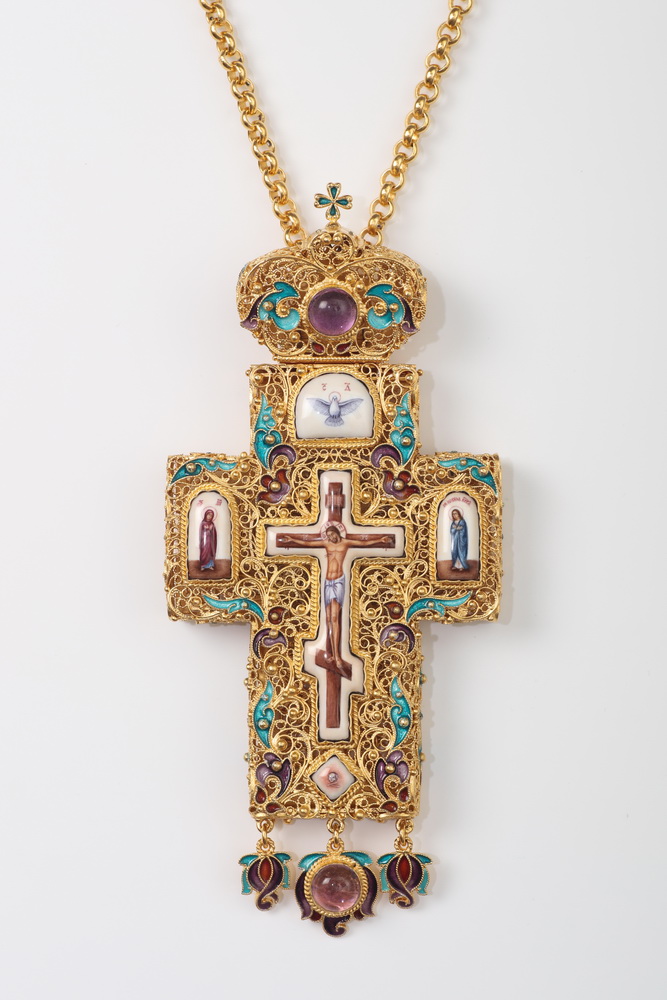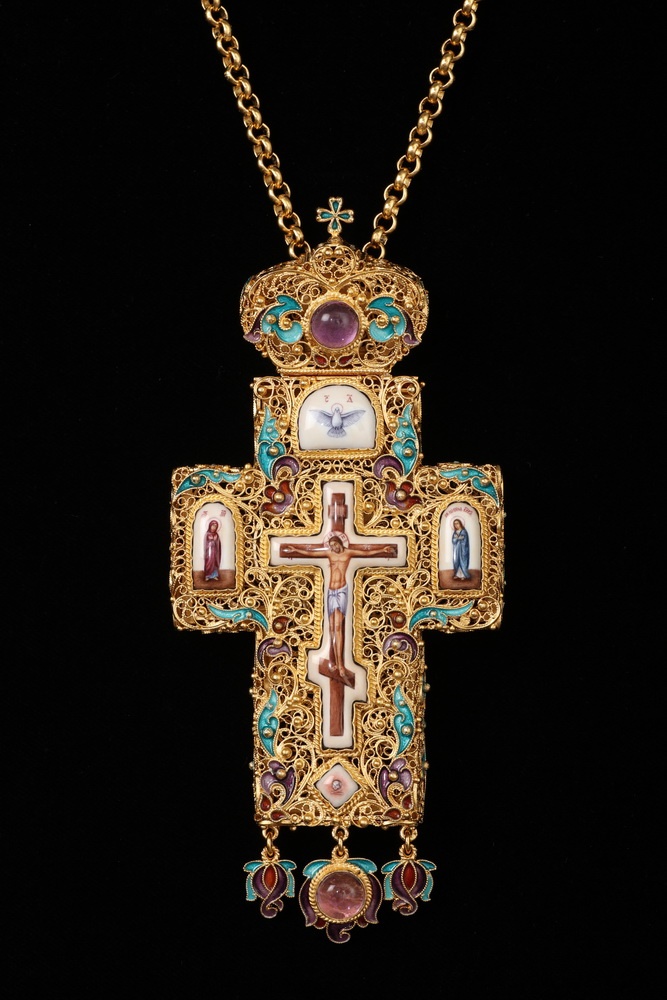 Крест архиерейский филигрань на просвет №3 5-финифтей, эмаль / золочение / серебро (УИН)
