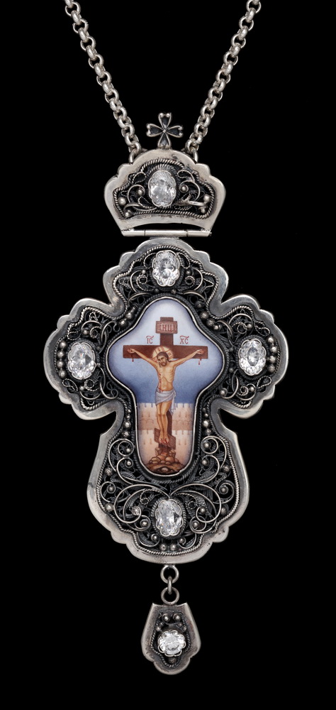 Крест архиерейский филигрань на просвет, финифть / малый / серебро (УИН)