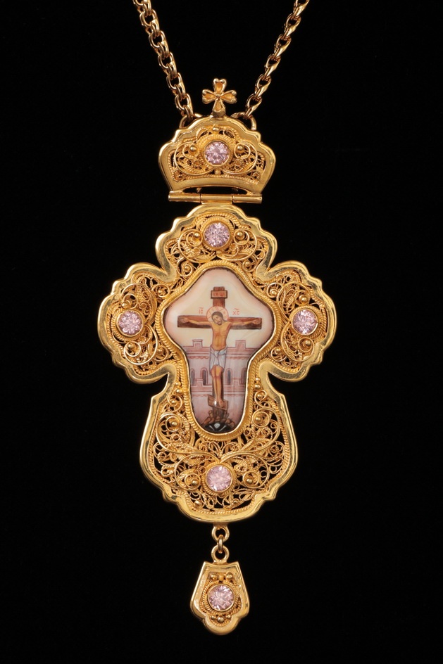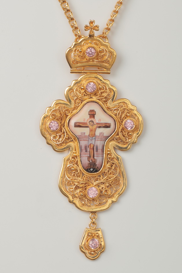 Крест архиерейский филигрань на просвет, финифть / малый / золочение / серебро (УИН)