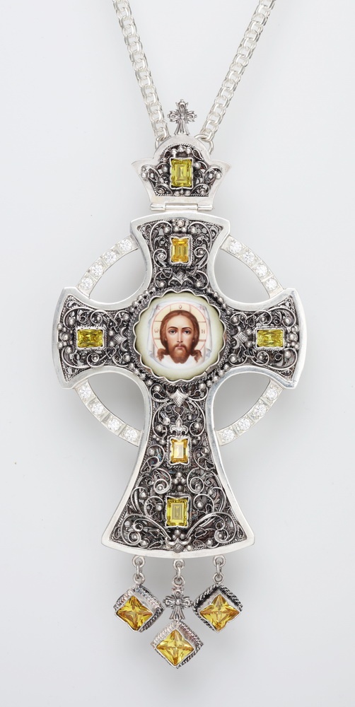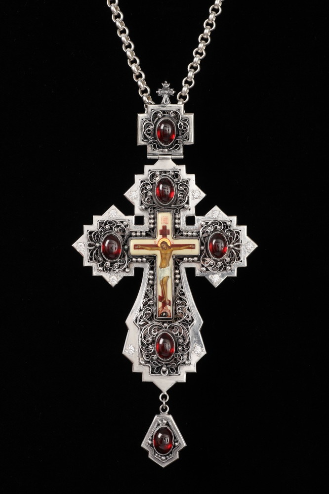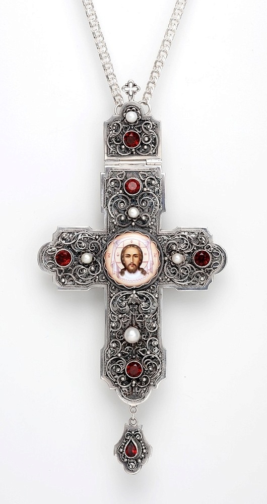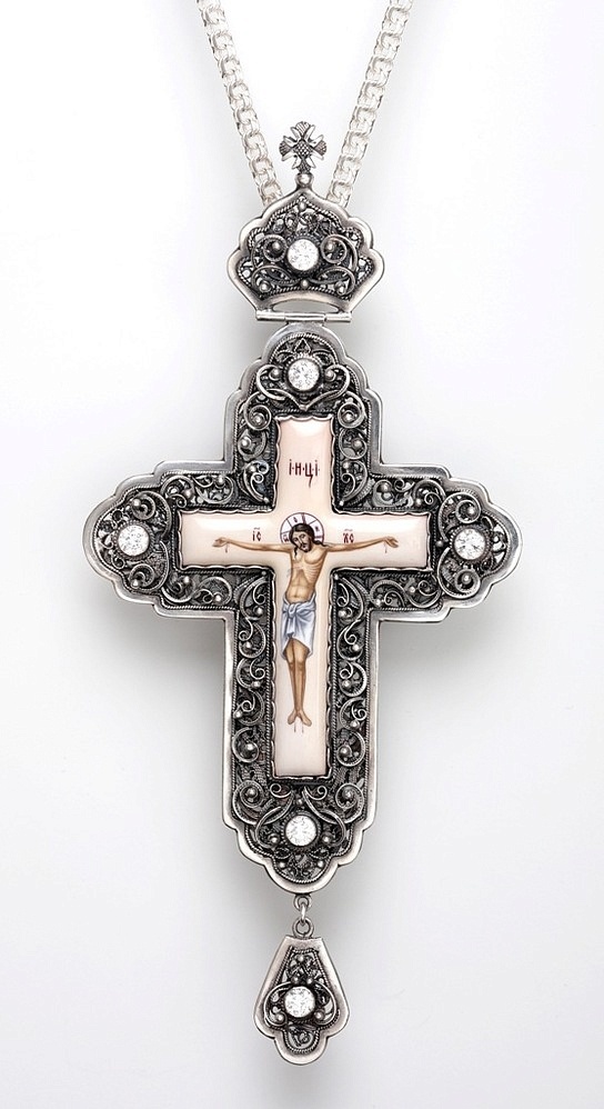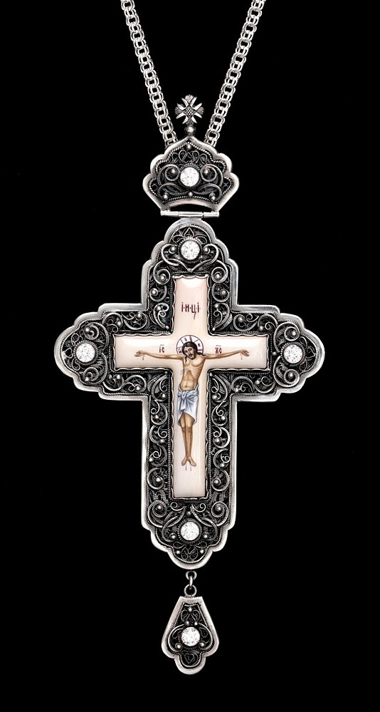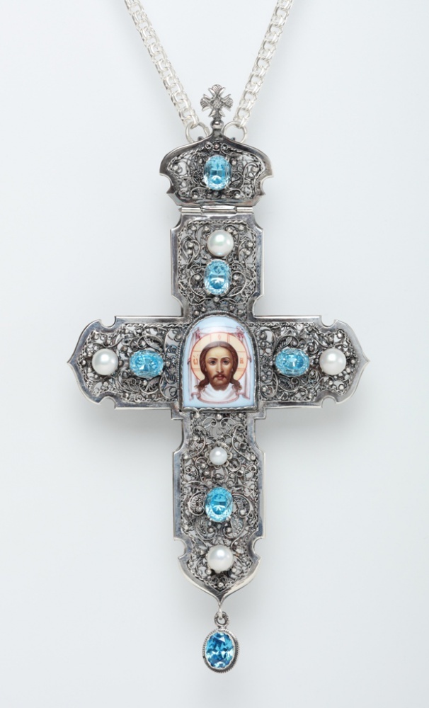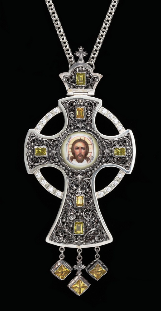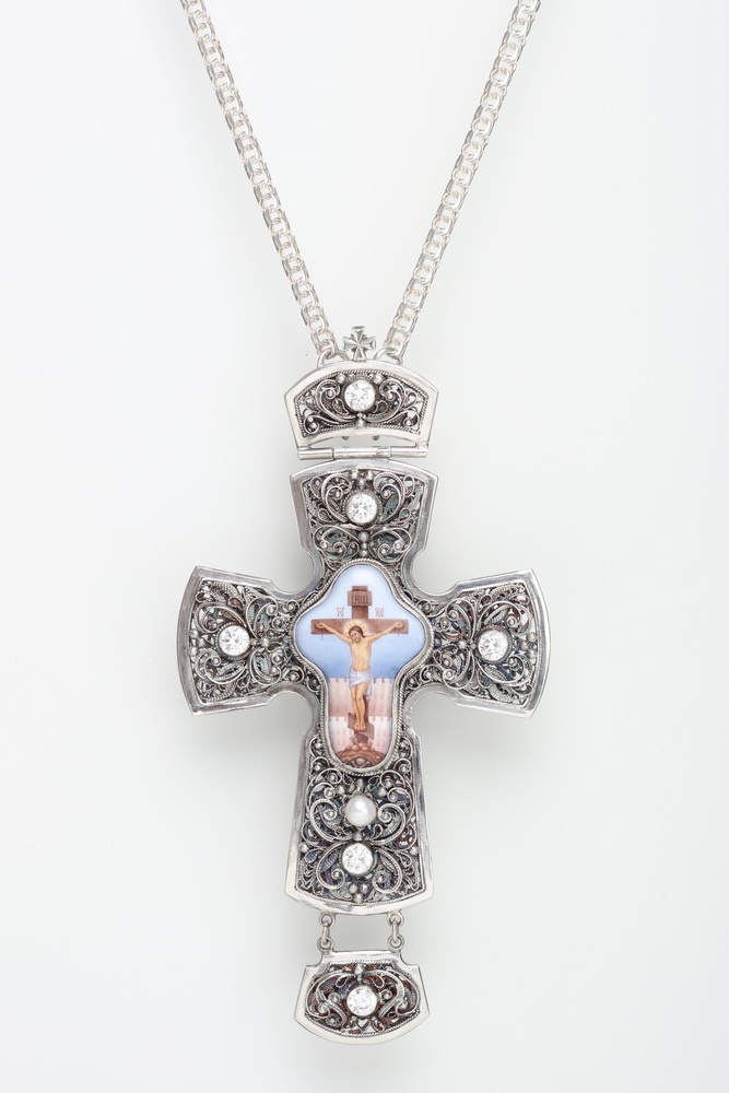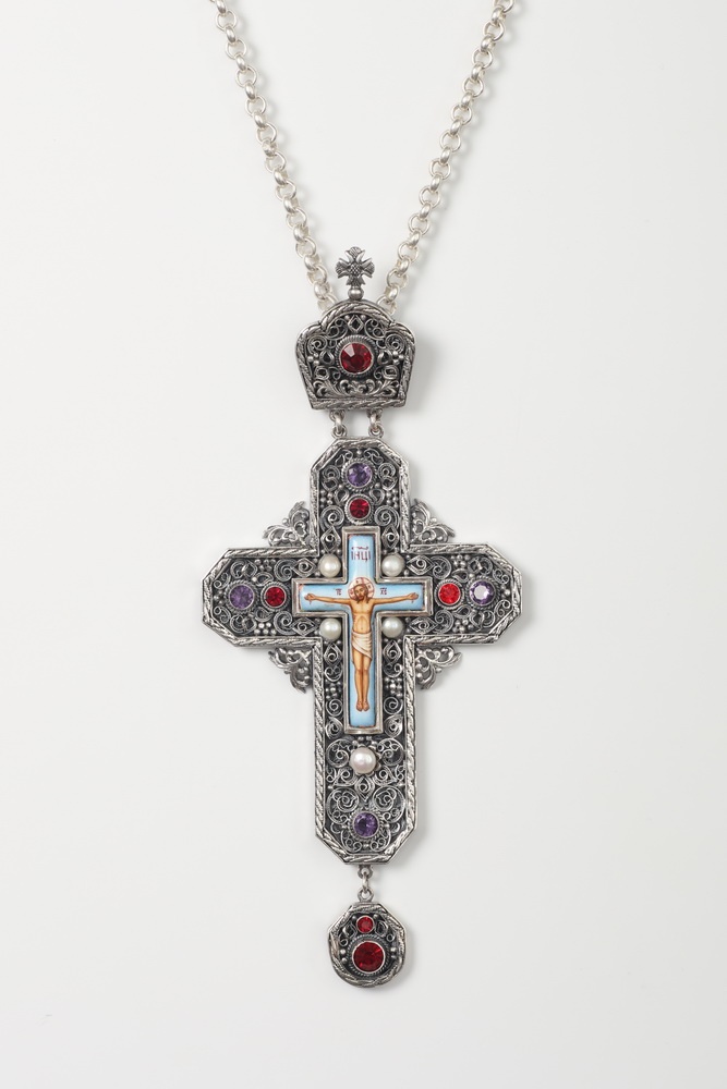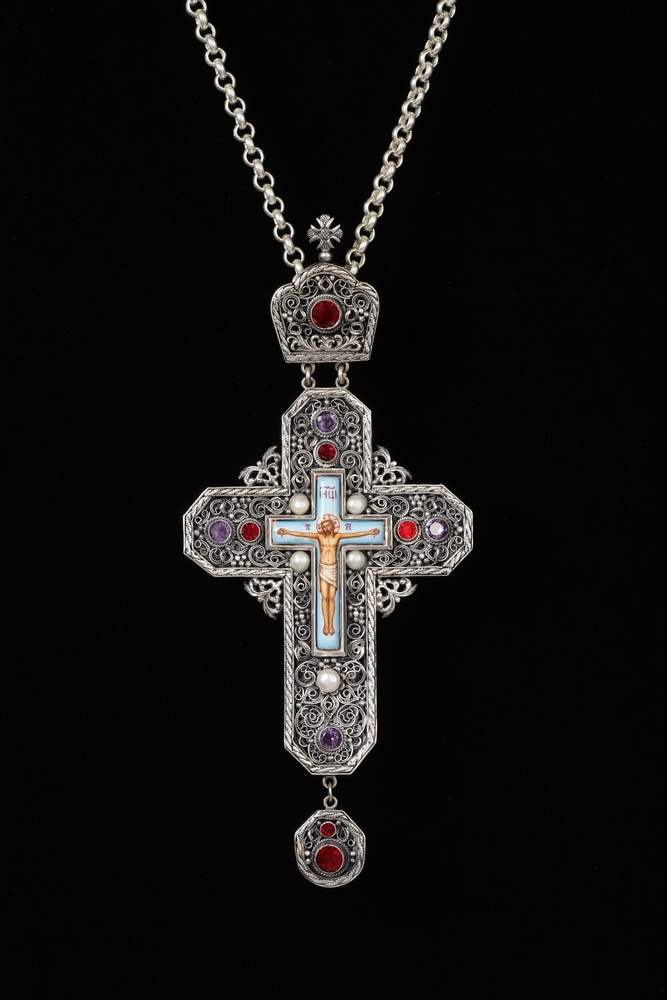 Крест архиерейский филигрань на просвет, финифть серебро (УИН)