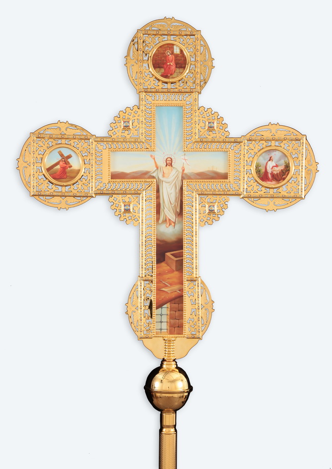 Крест-икона №11 - а запрестольная выпиловка гравировка фото на пластике золочение