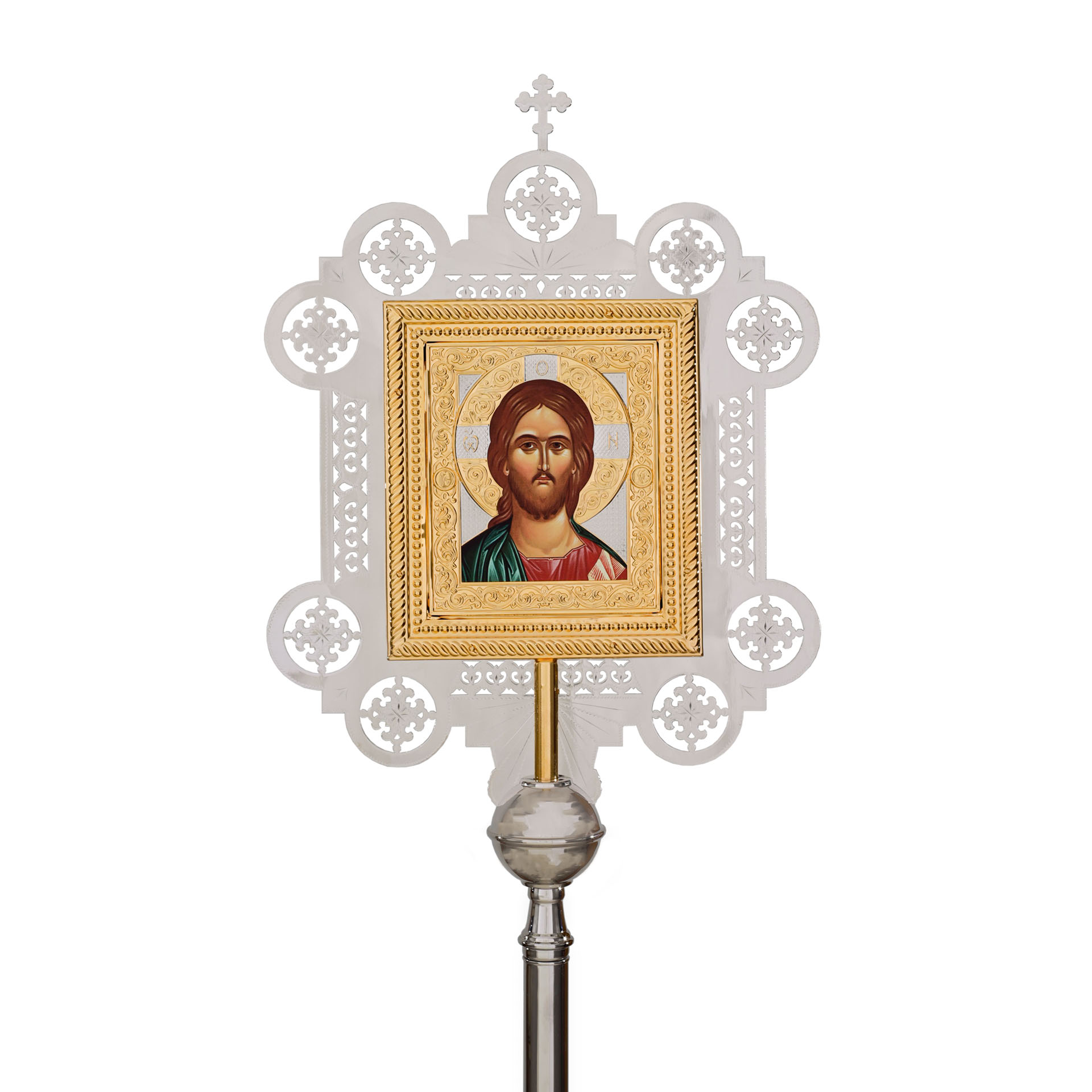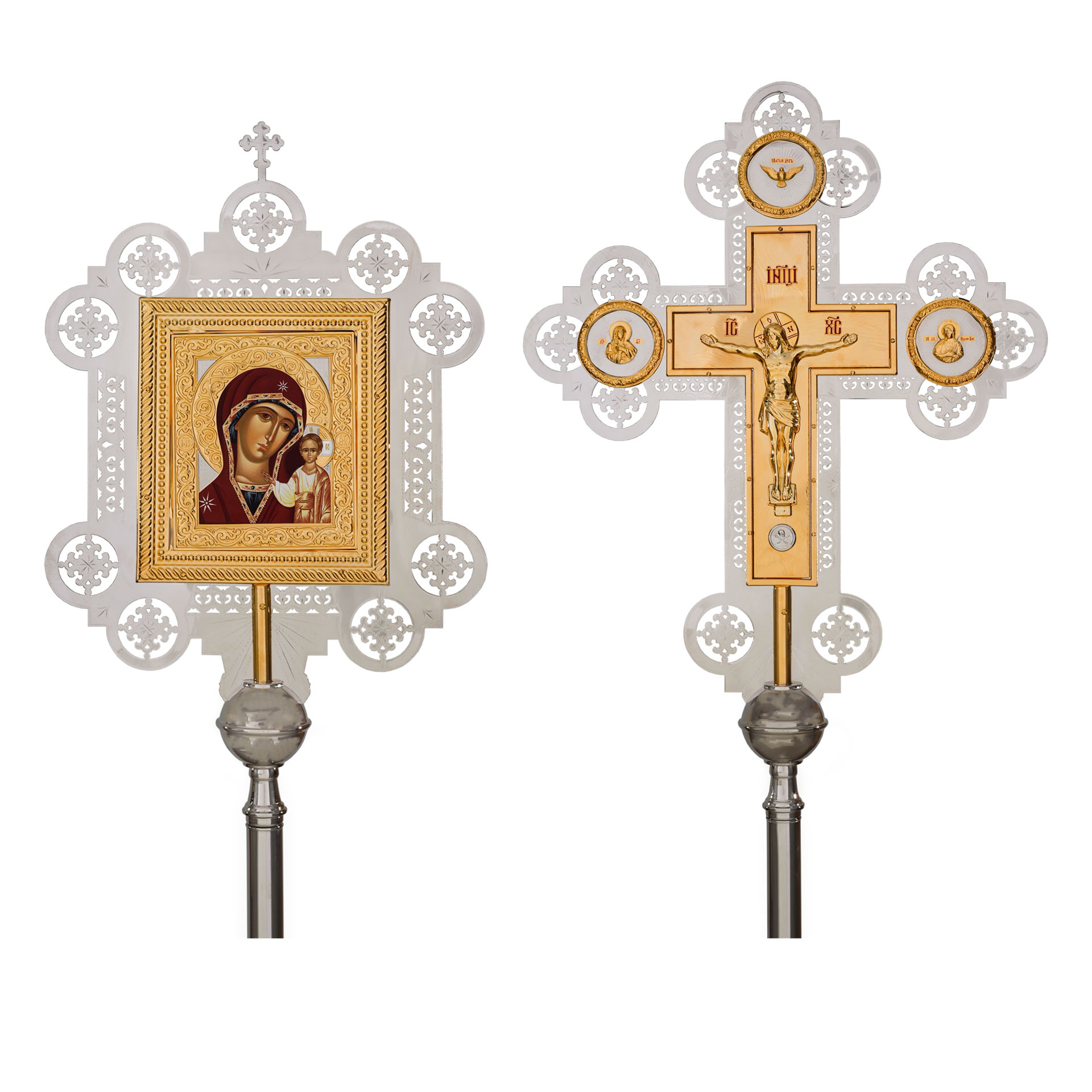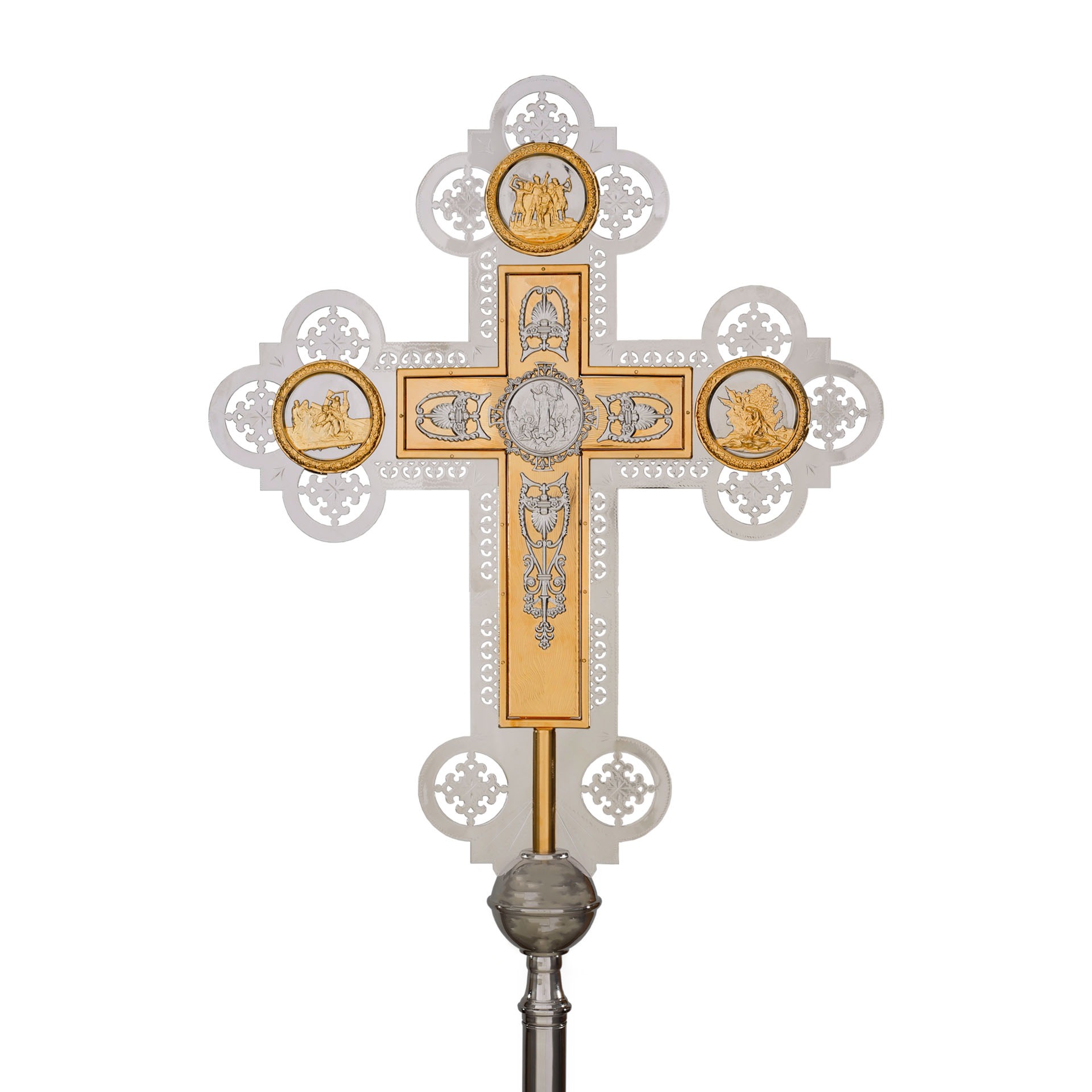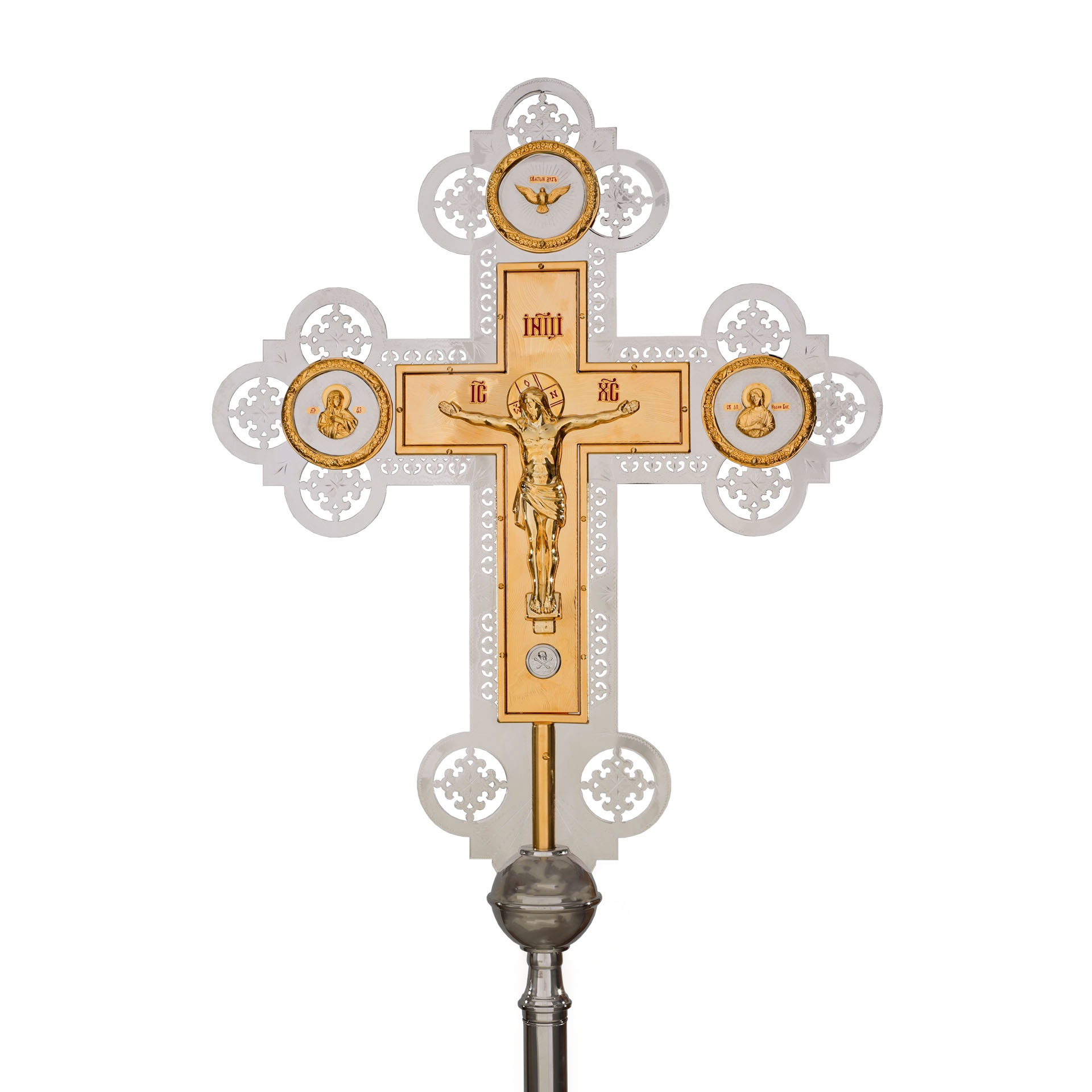 Крест-икона №2-3 запрестольная двухст.с гальванопл.накл. никель ч / золочение