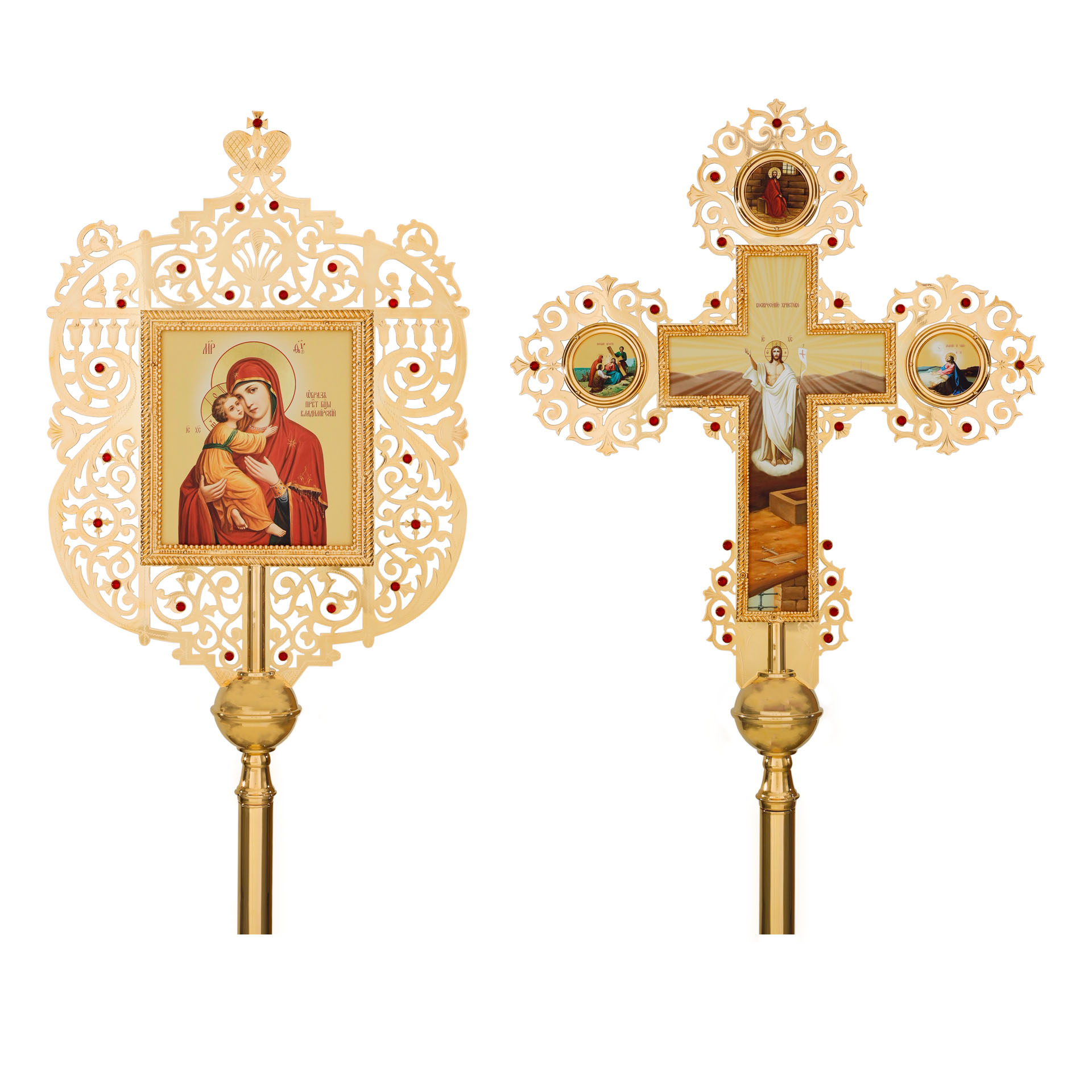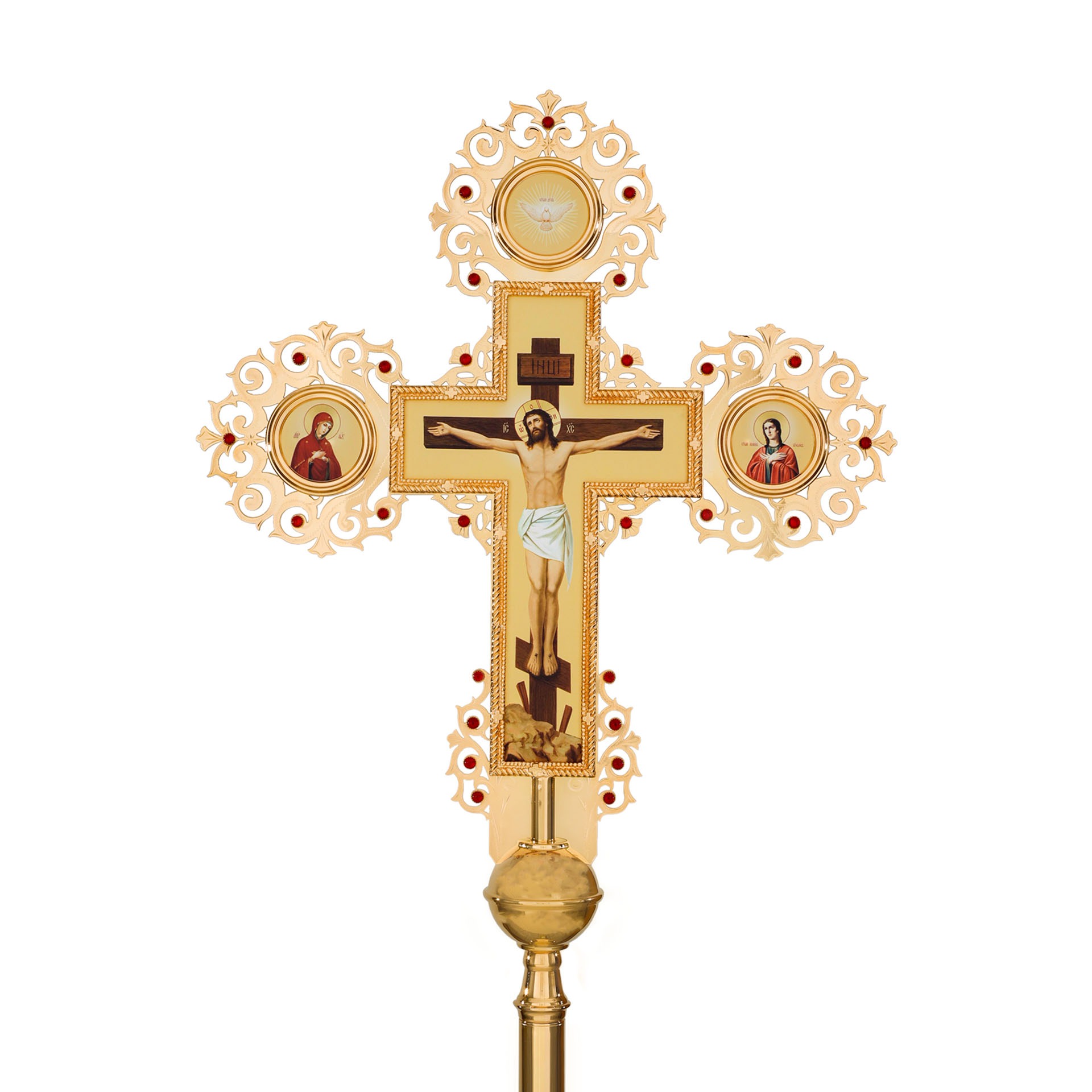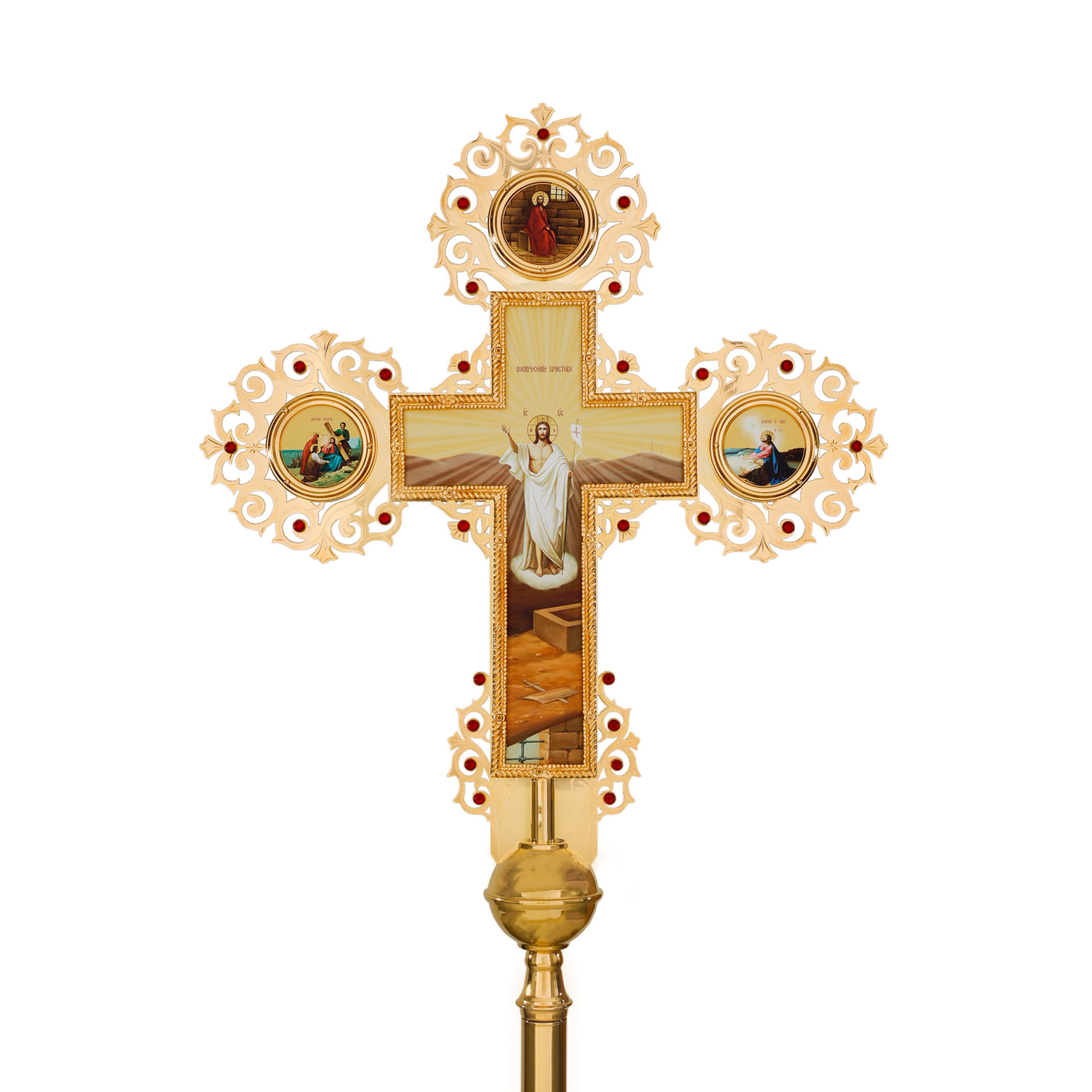 Крест-икона №27 запрестольная гравировка фото на пластике золочение камни
