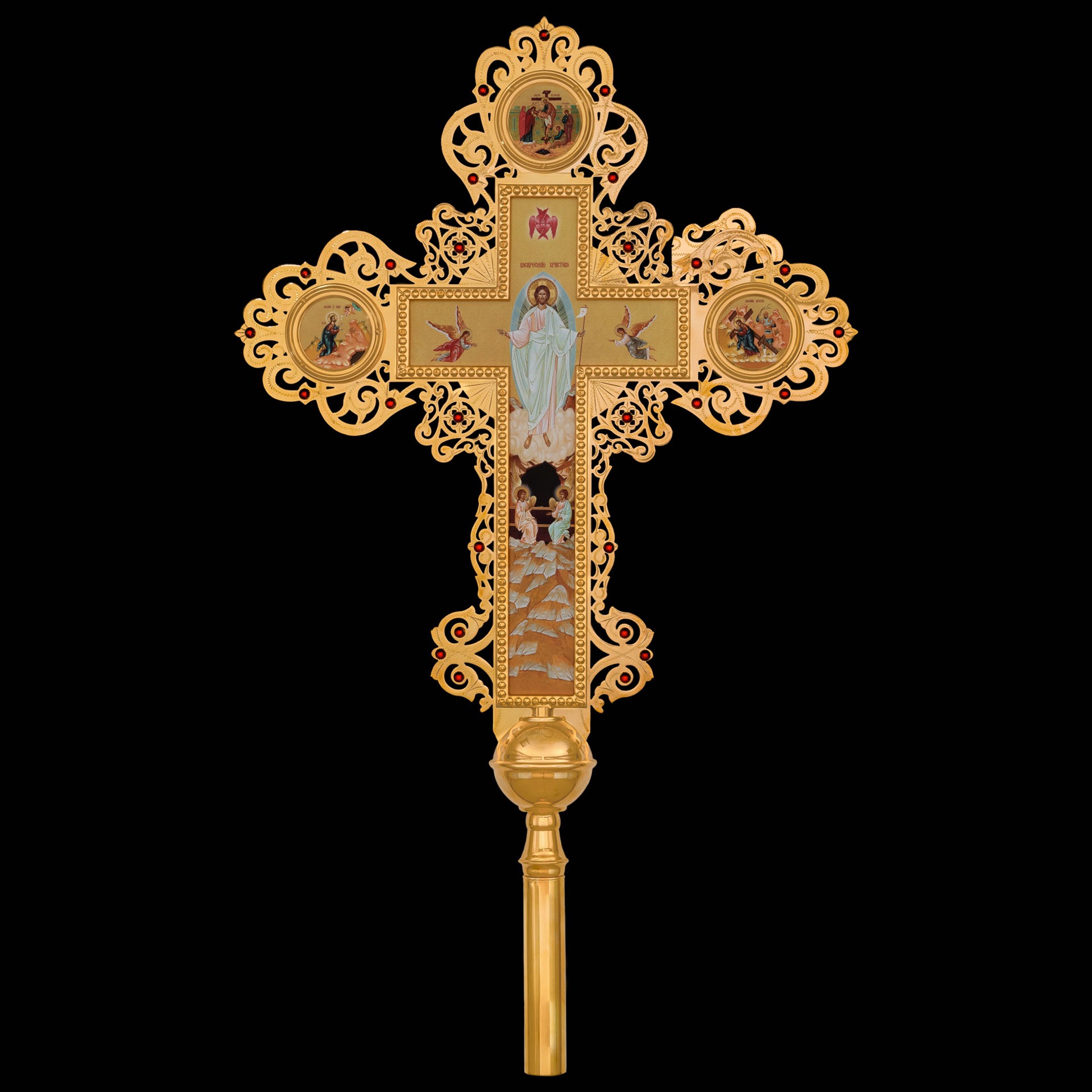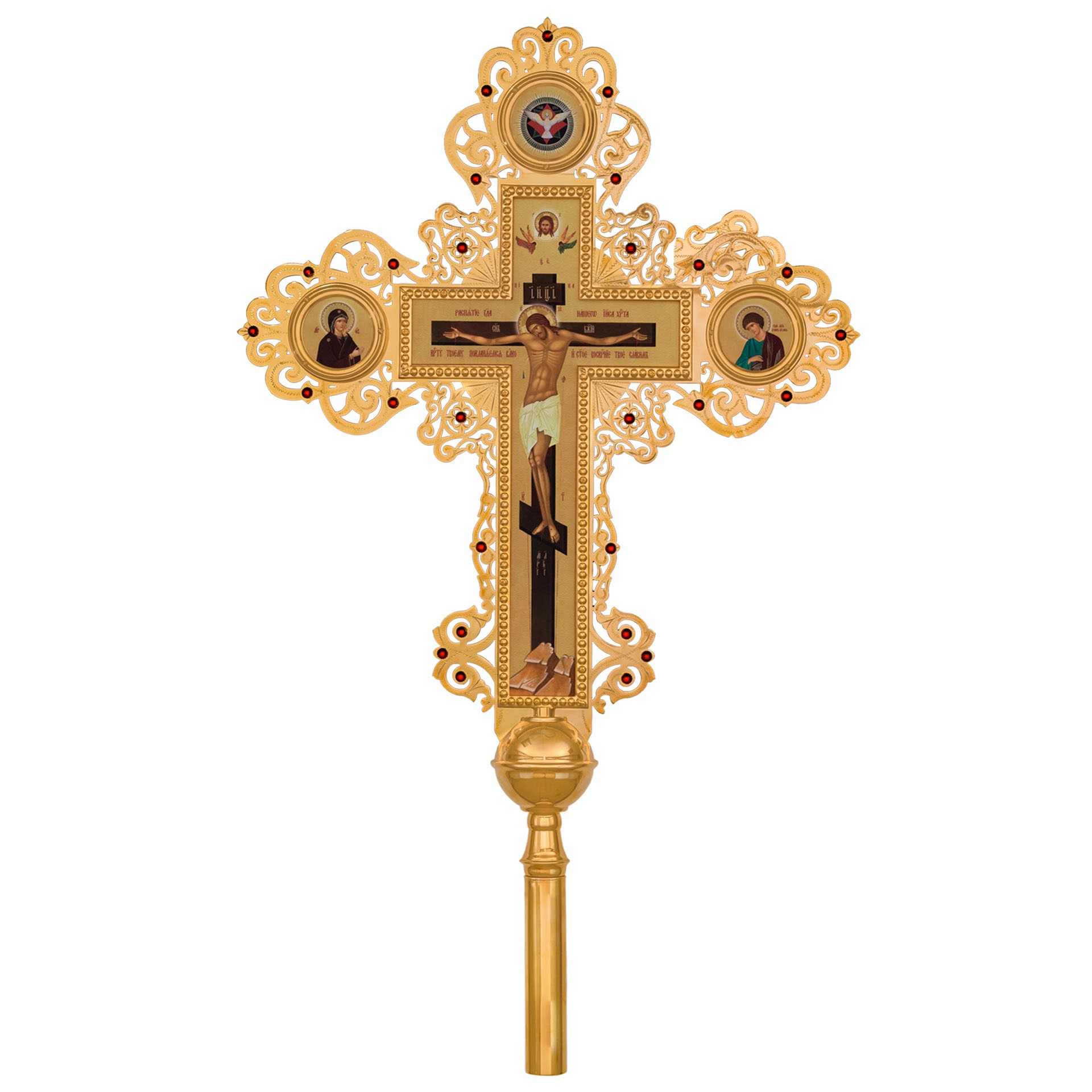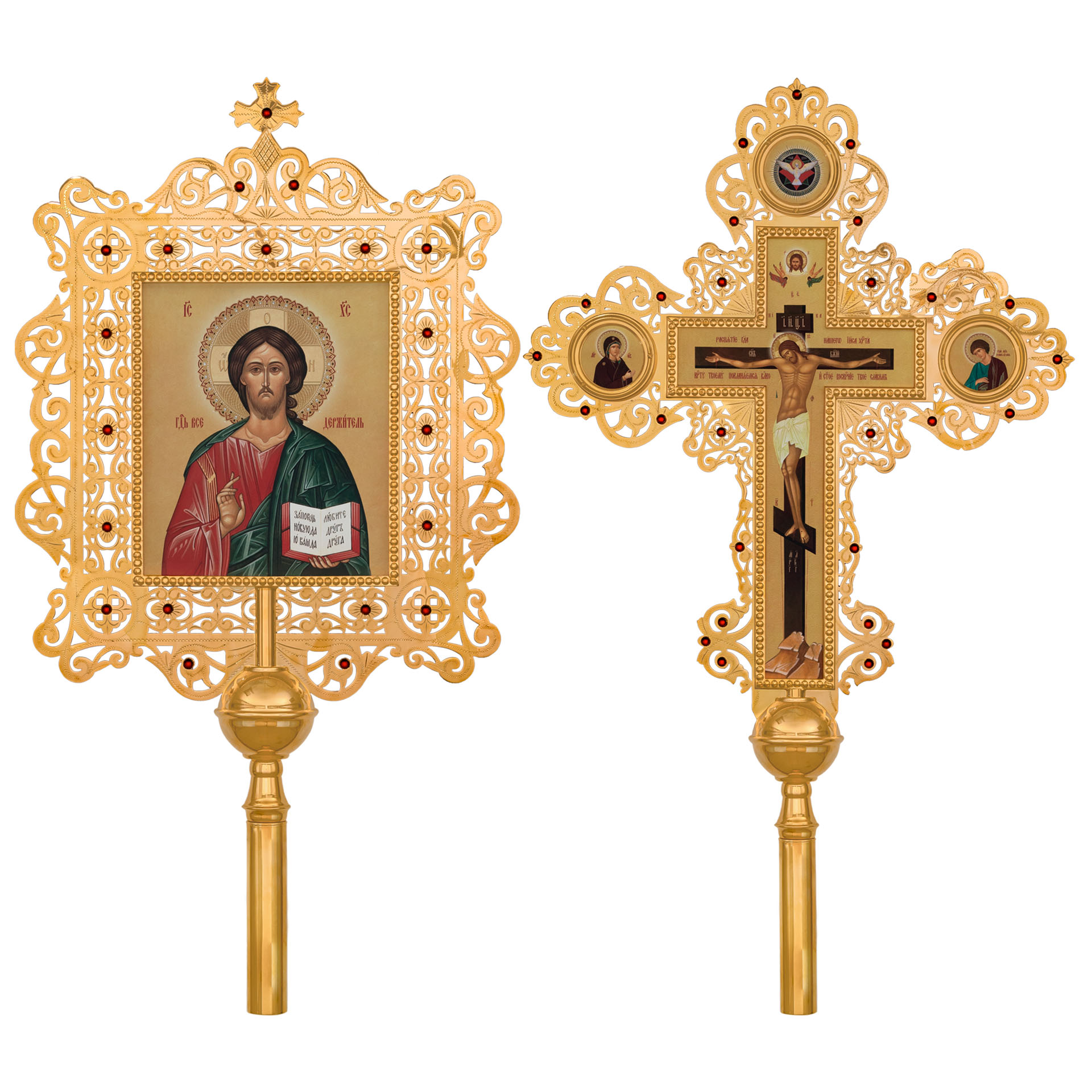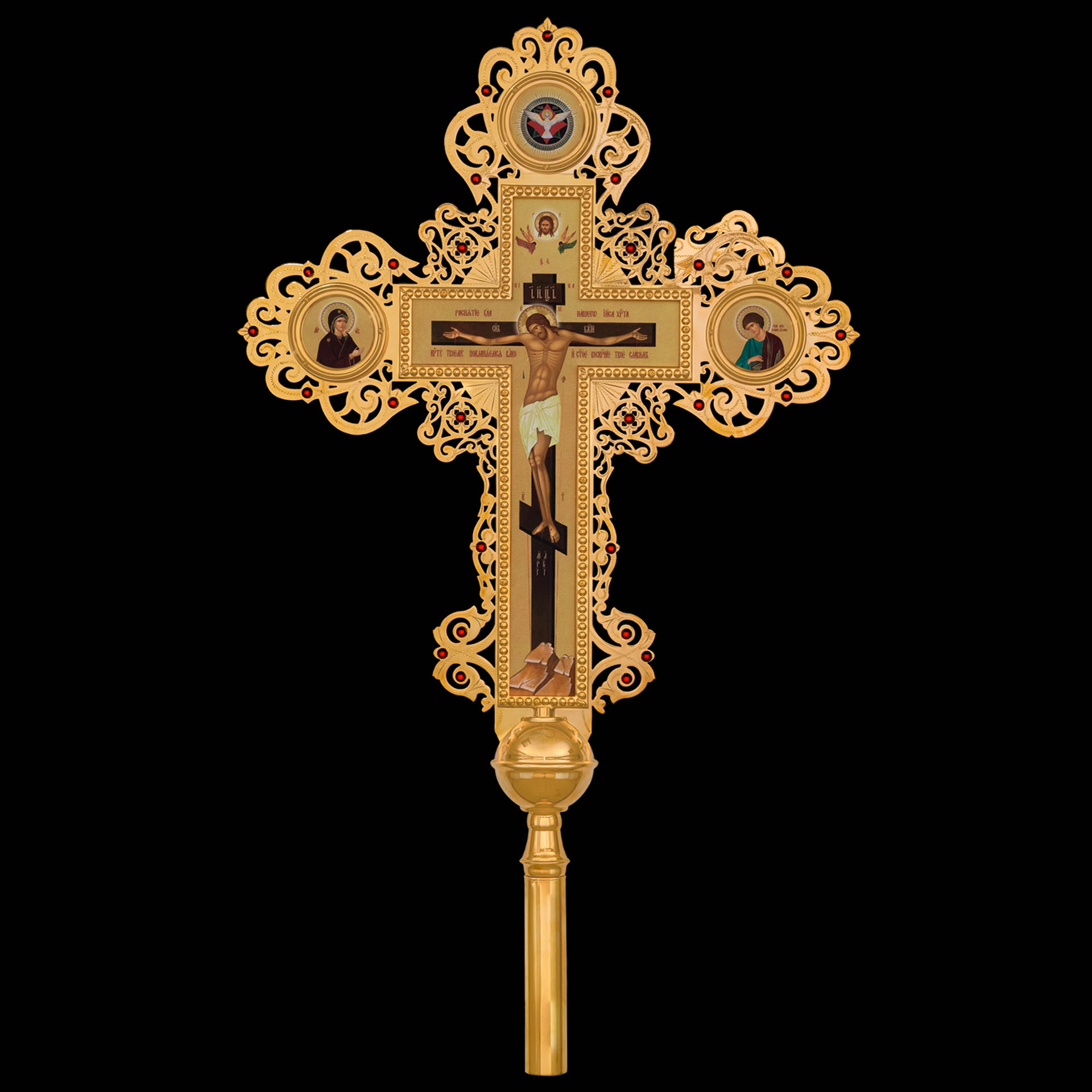 Крест-икона №28 запрестольная выпиловка гравировка фото золочение камни