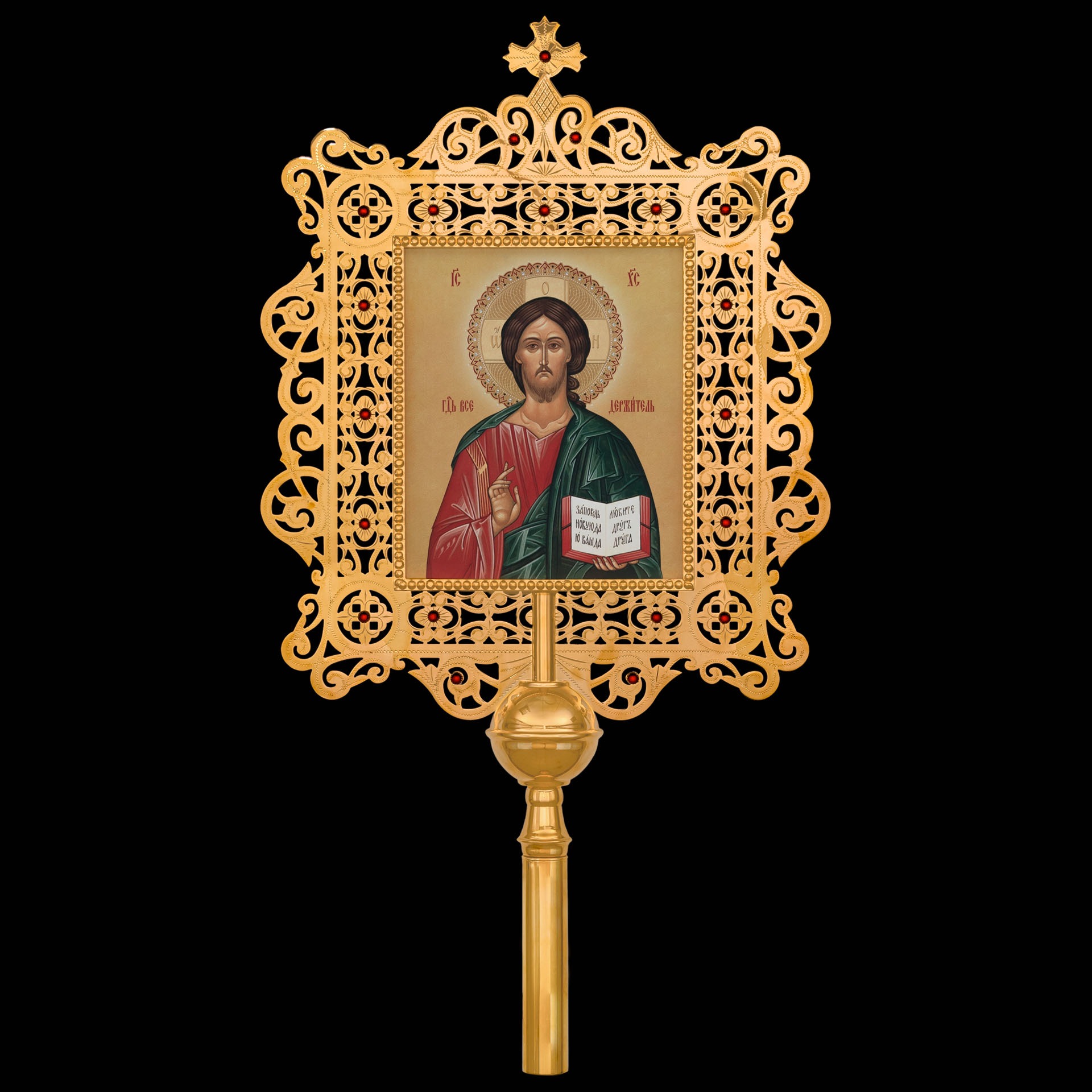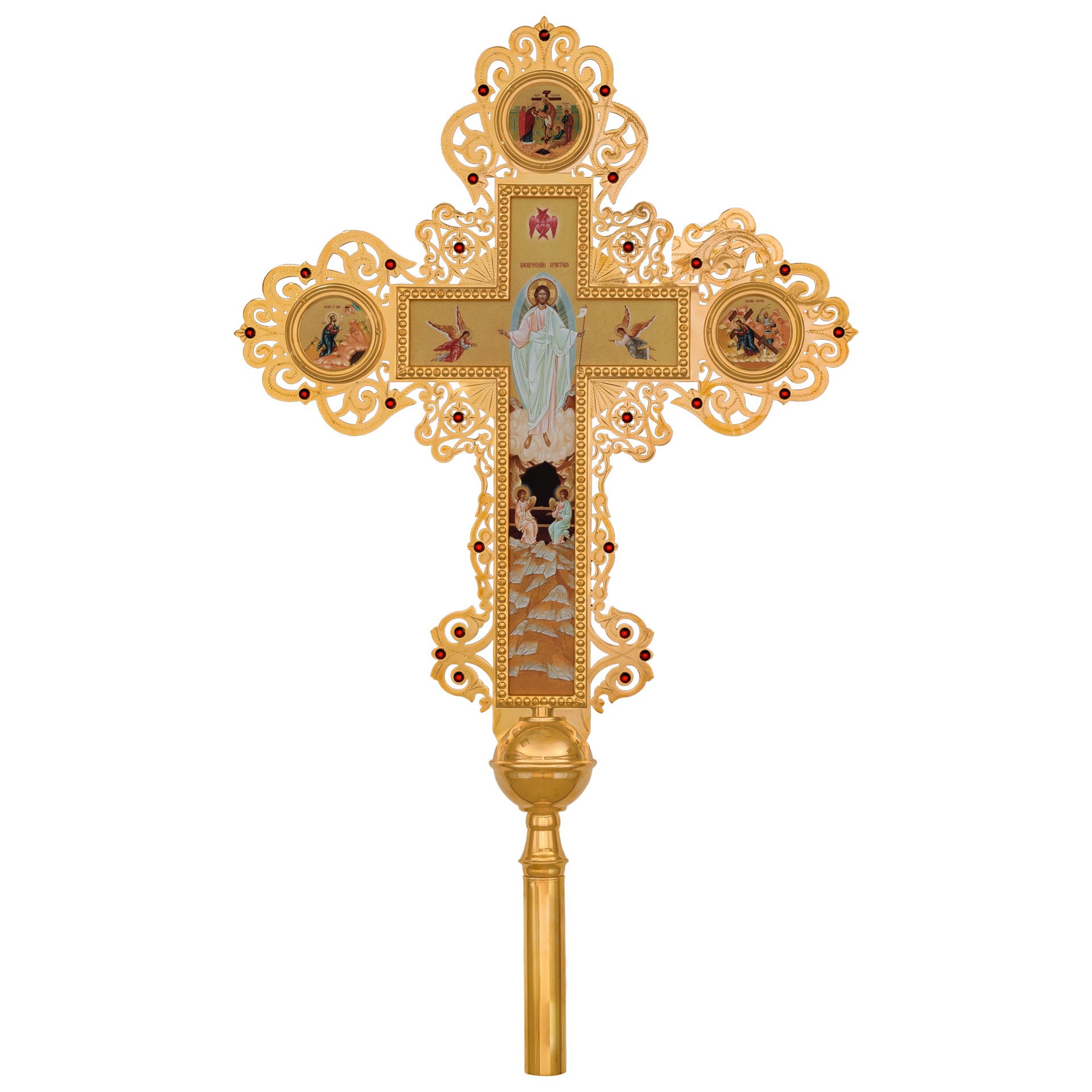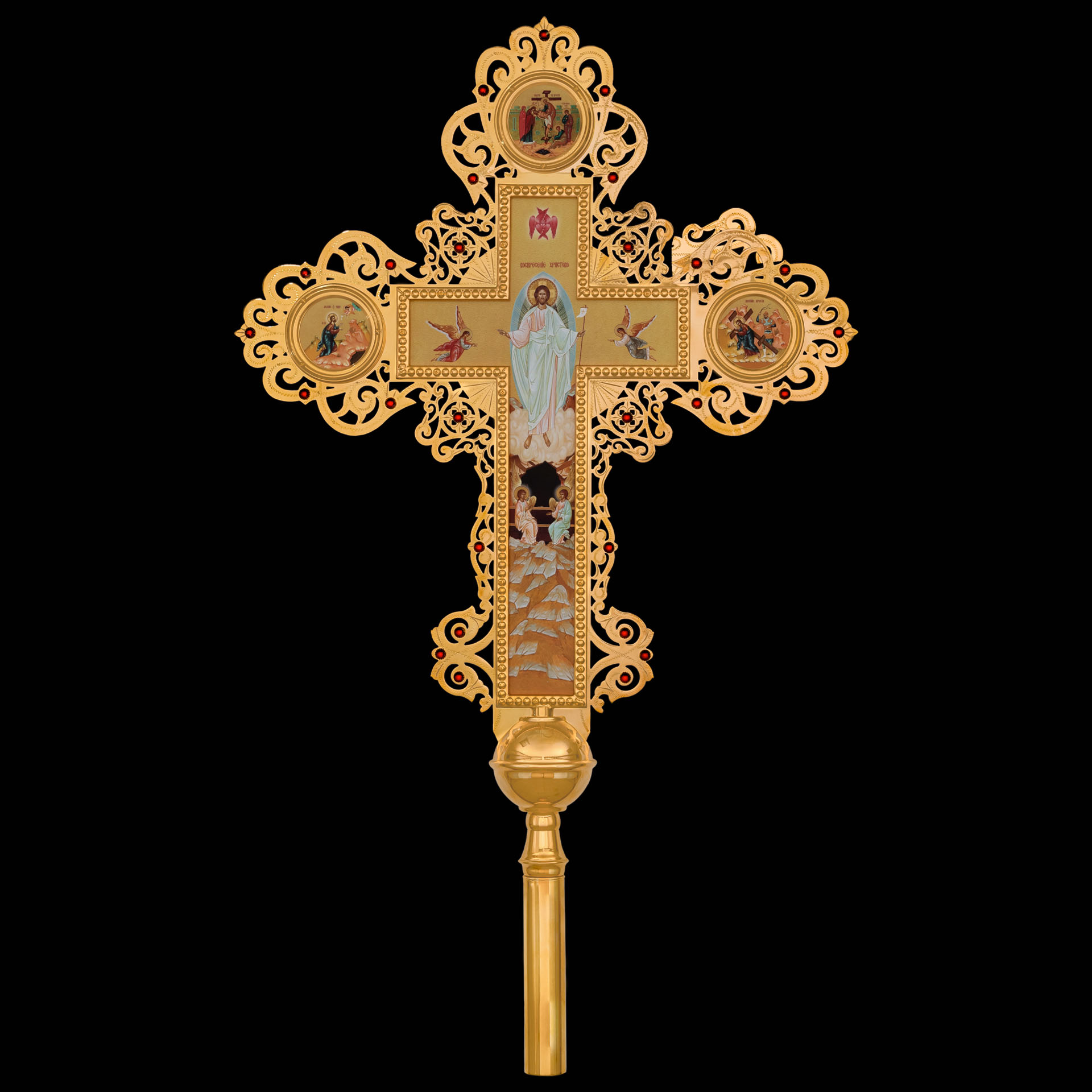 Крест-икона №28 запрестольная выпиловка гравировка фото золочение камни