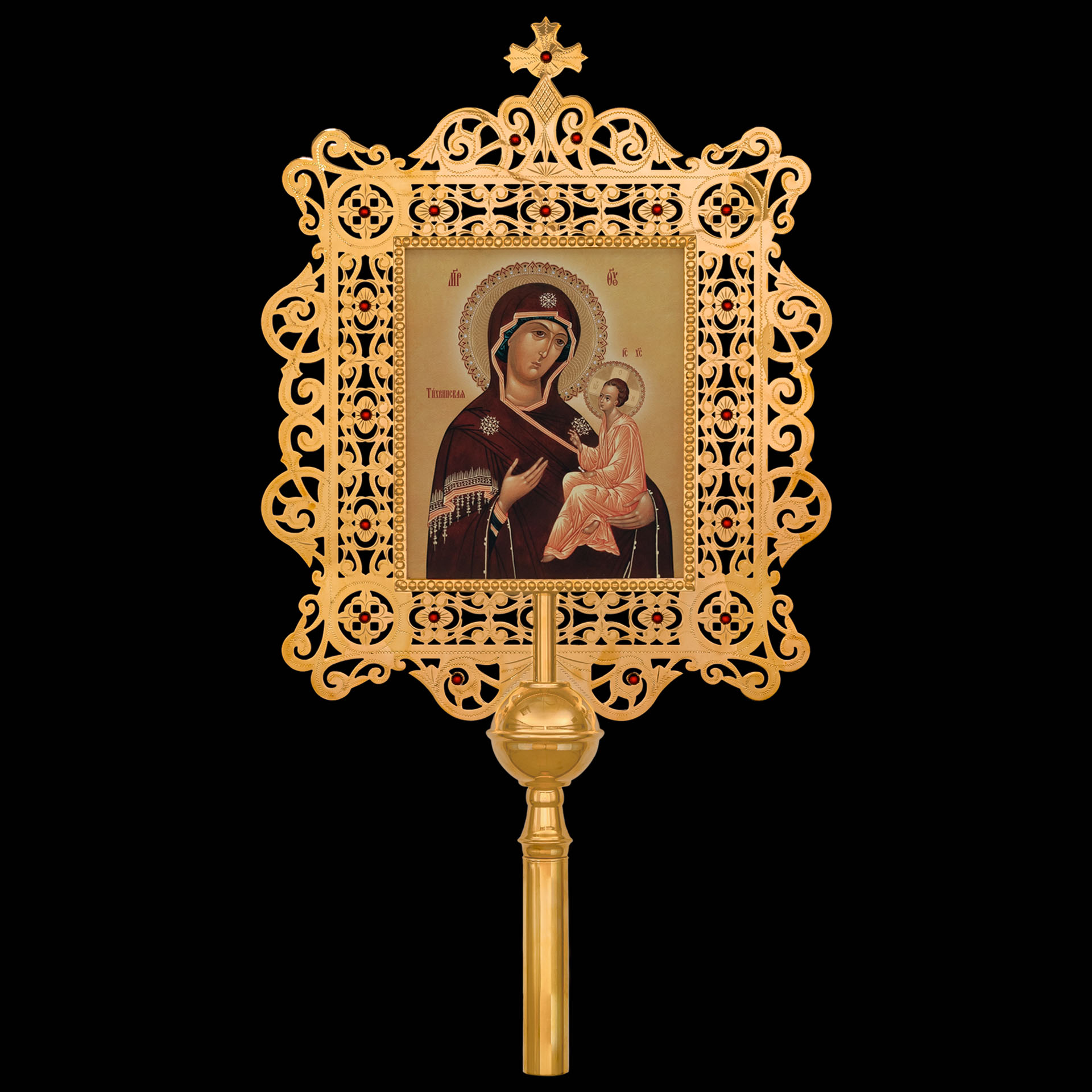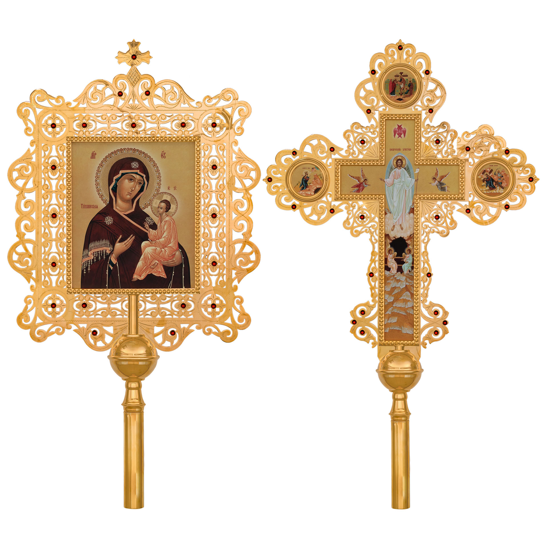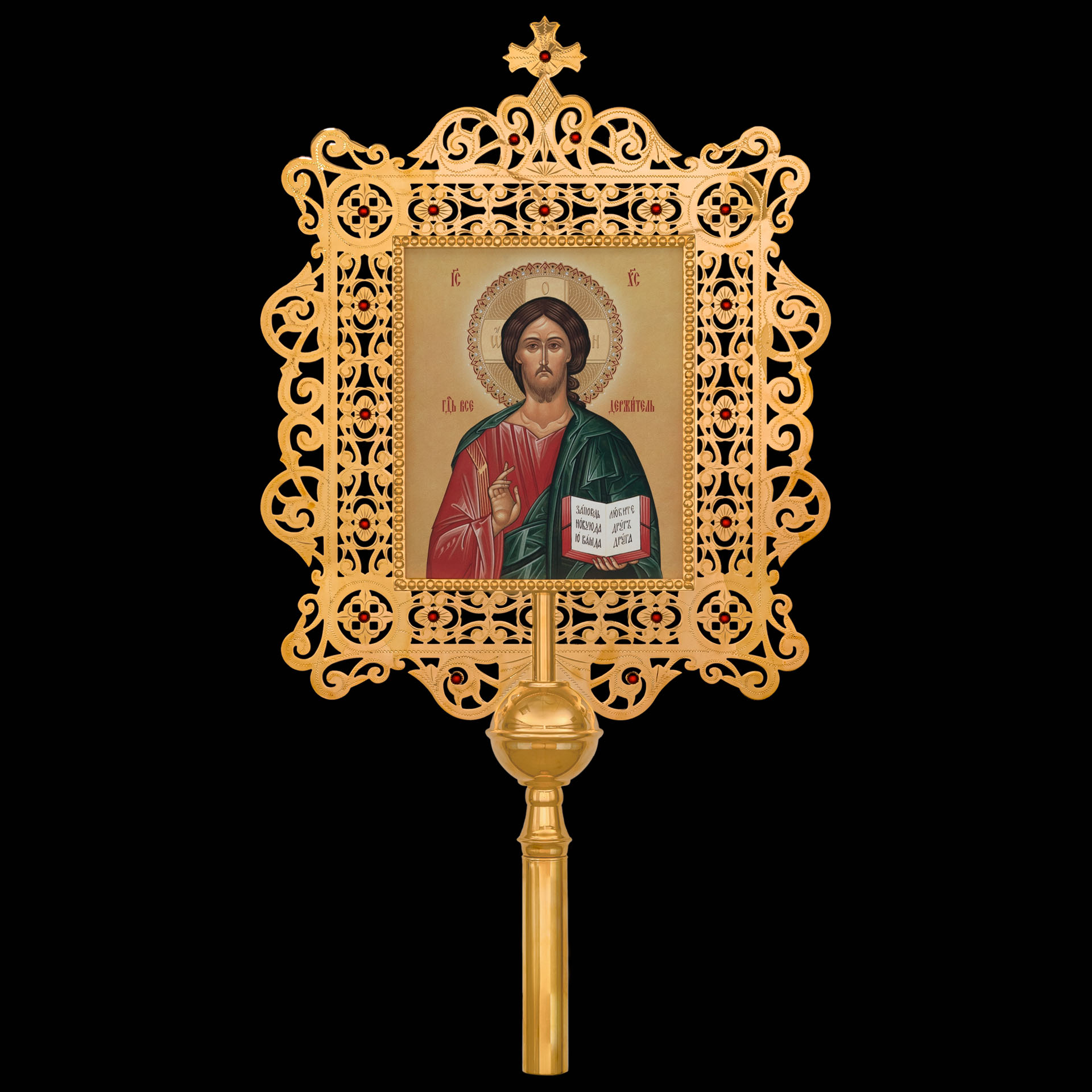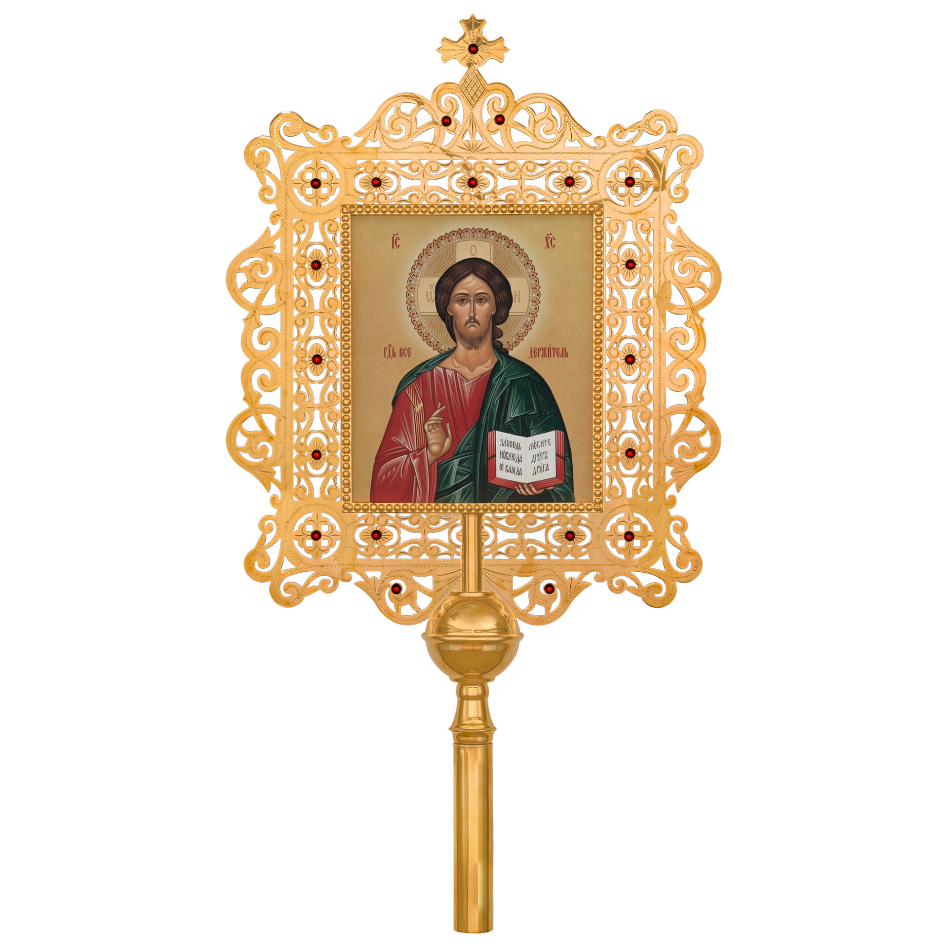 Крест-икона №28 запрестольная выпиловка гравировка фото золочение камни