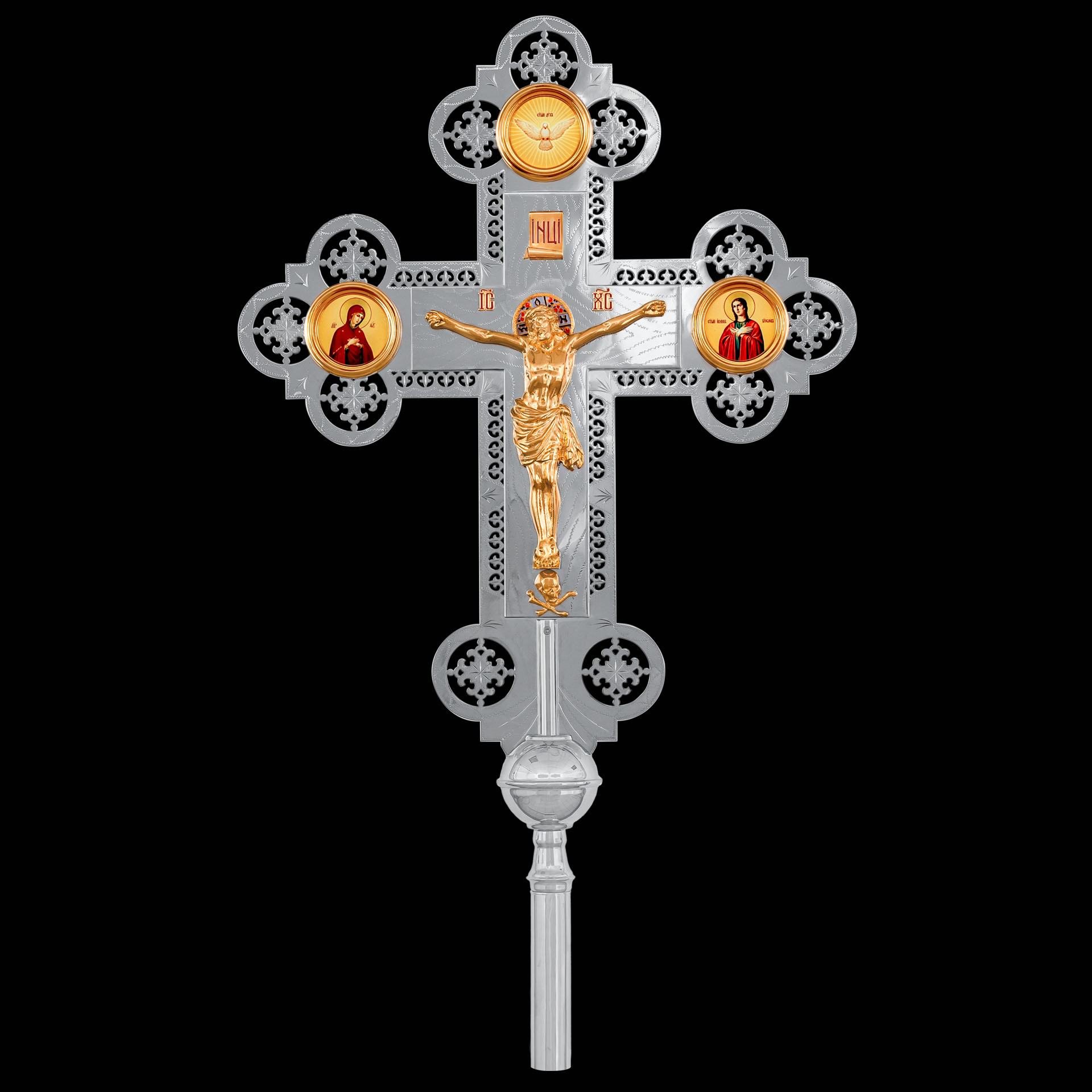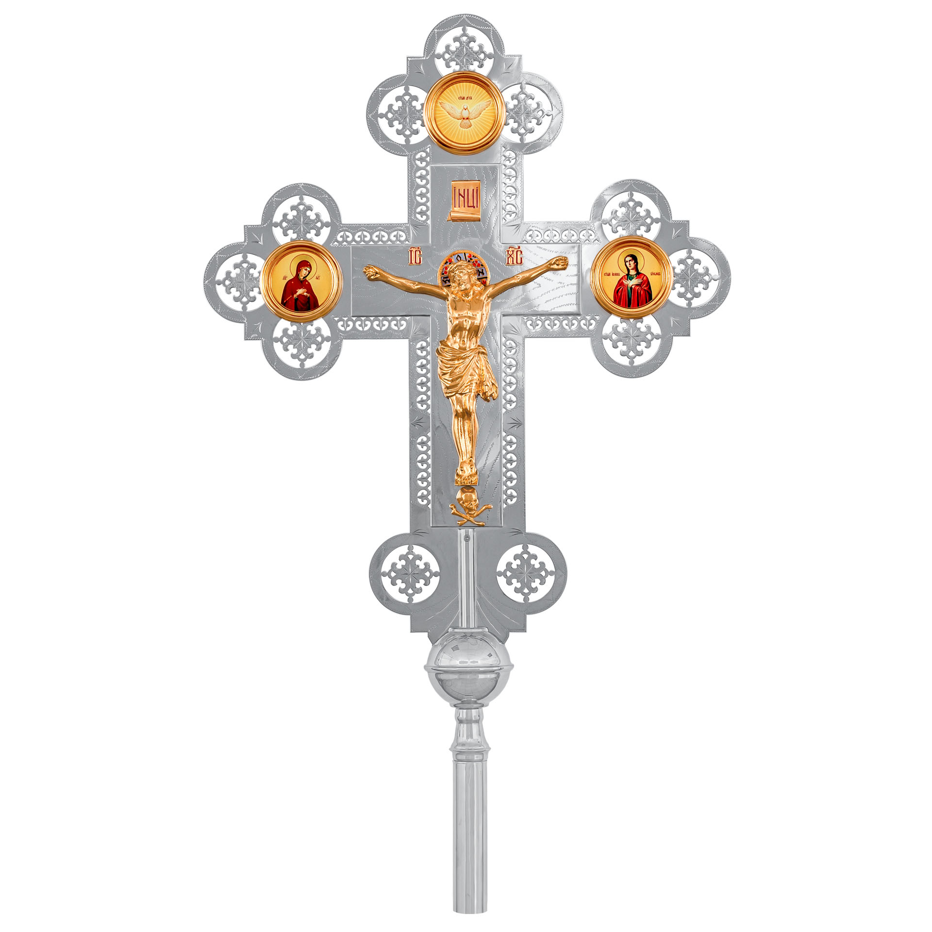 Крест-икона №3 гальванопл. ризы литое распятие гравировка част. золочение
