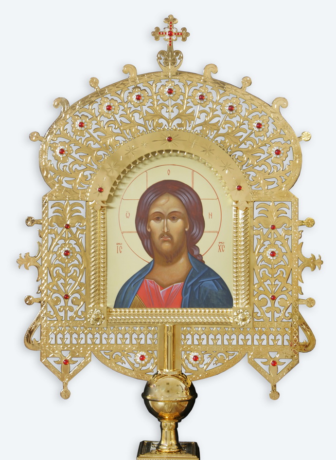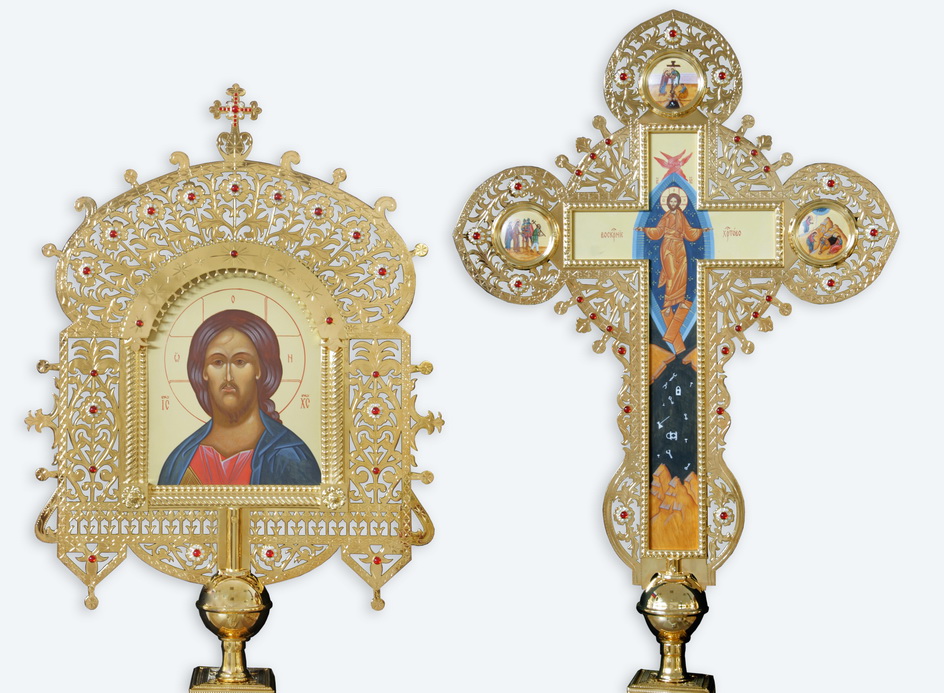 Крест-икона №43 запрестольная выпиловка гравировка живопись золочение камни