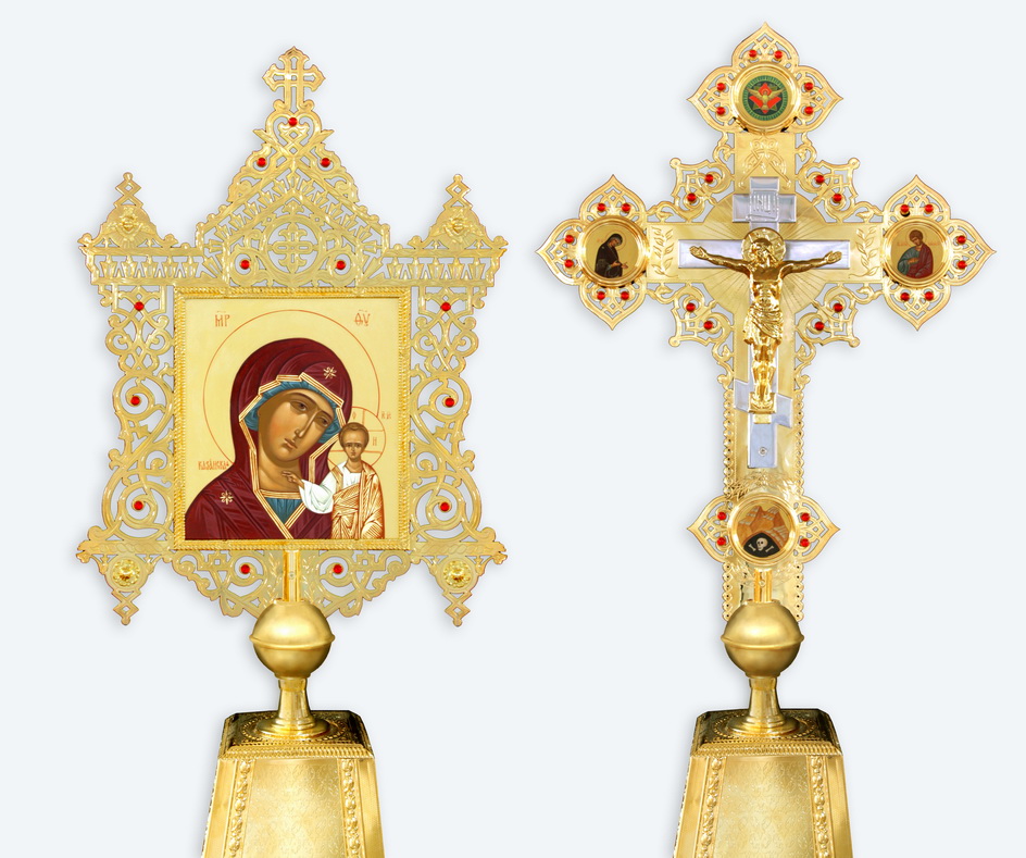 Крест-икона №49 запрестольная выпиловка гравировка живопись золочение
