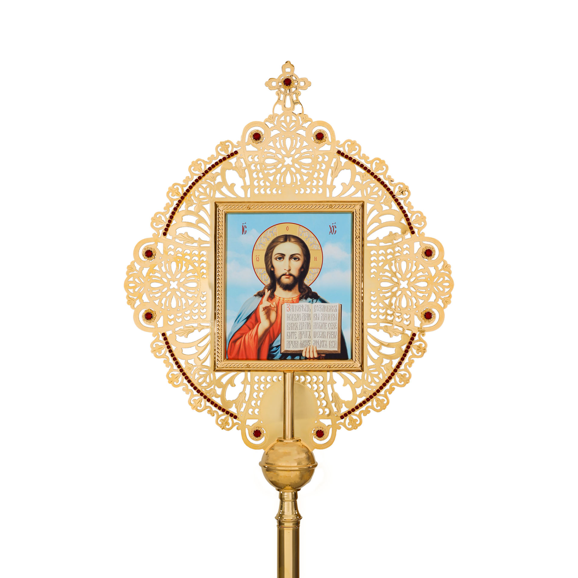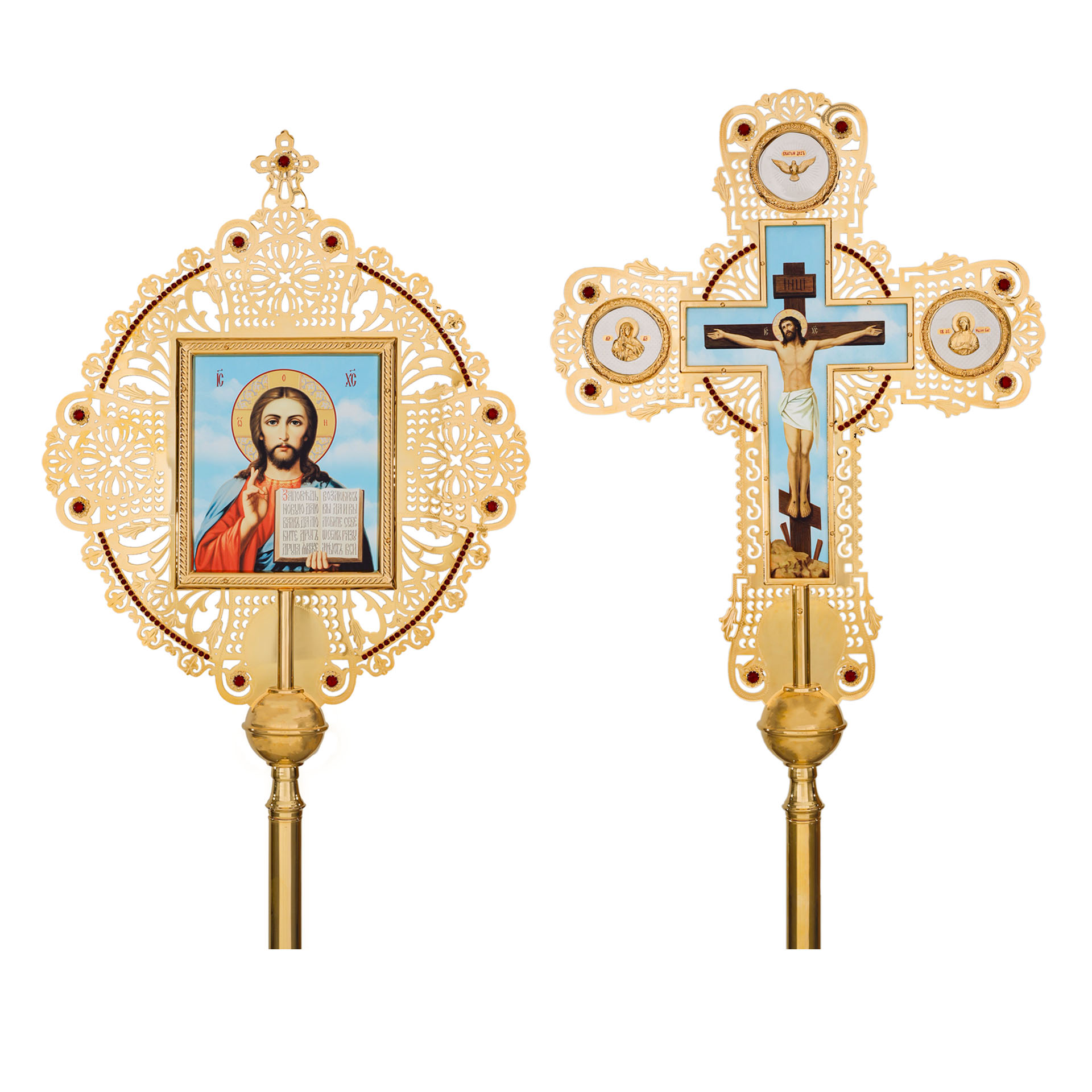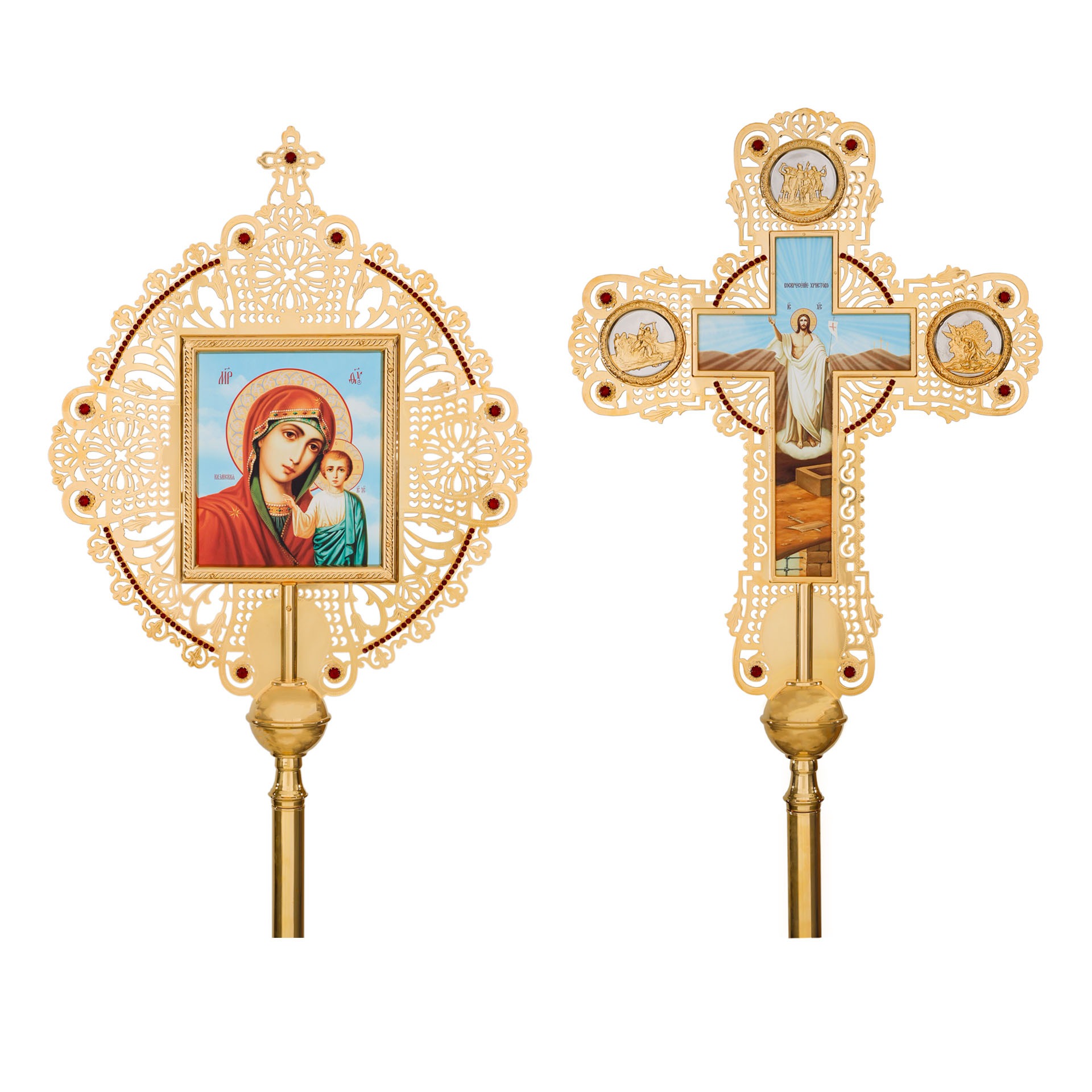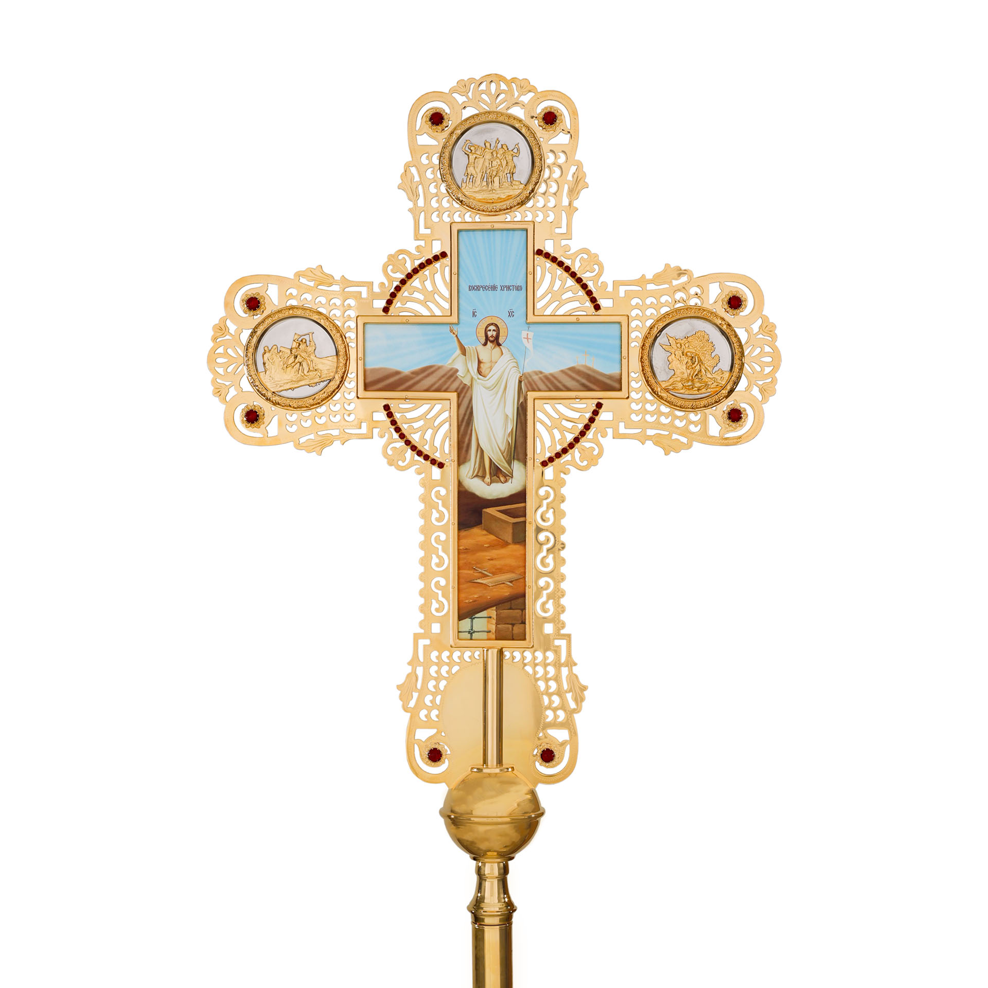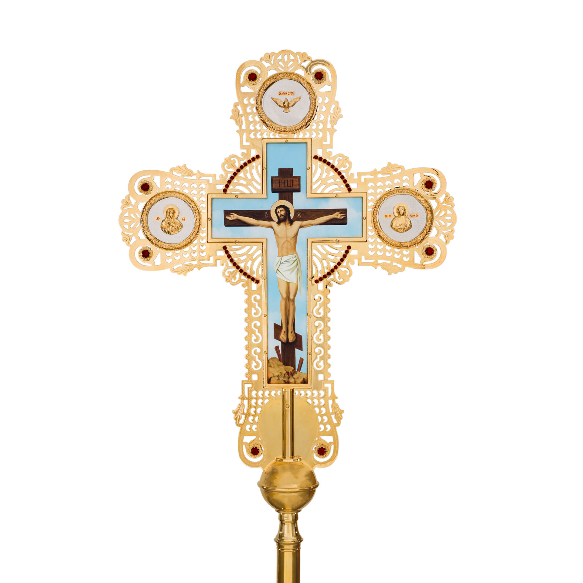 Крест-икона №50 запрестольная выпиловка гравировка фото на пластике золочение