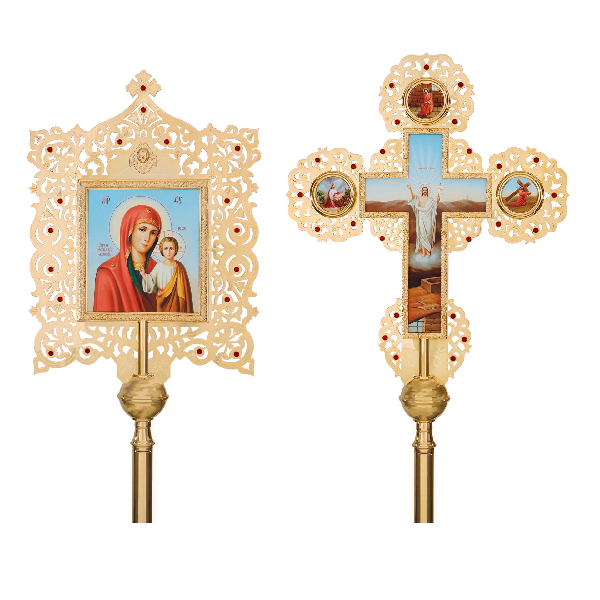 Крест-икона №8 запрестольная выпиловка гравировка камни золочение фото на пластике