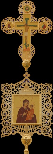 Крест-икона №8 запрестольная выпиловка гравировка живопись золочение камни