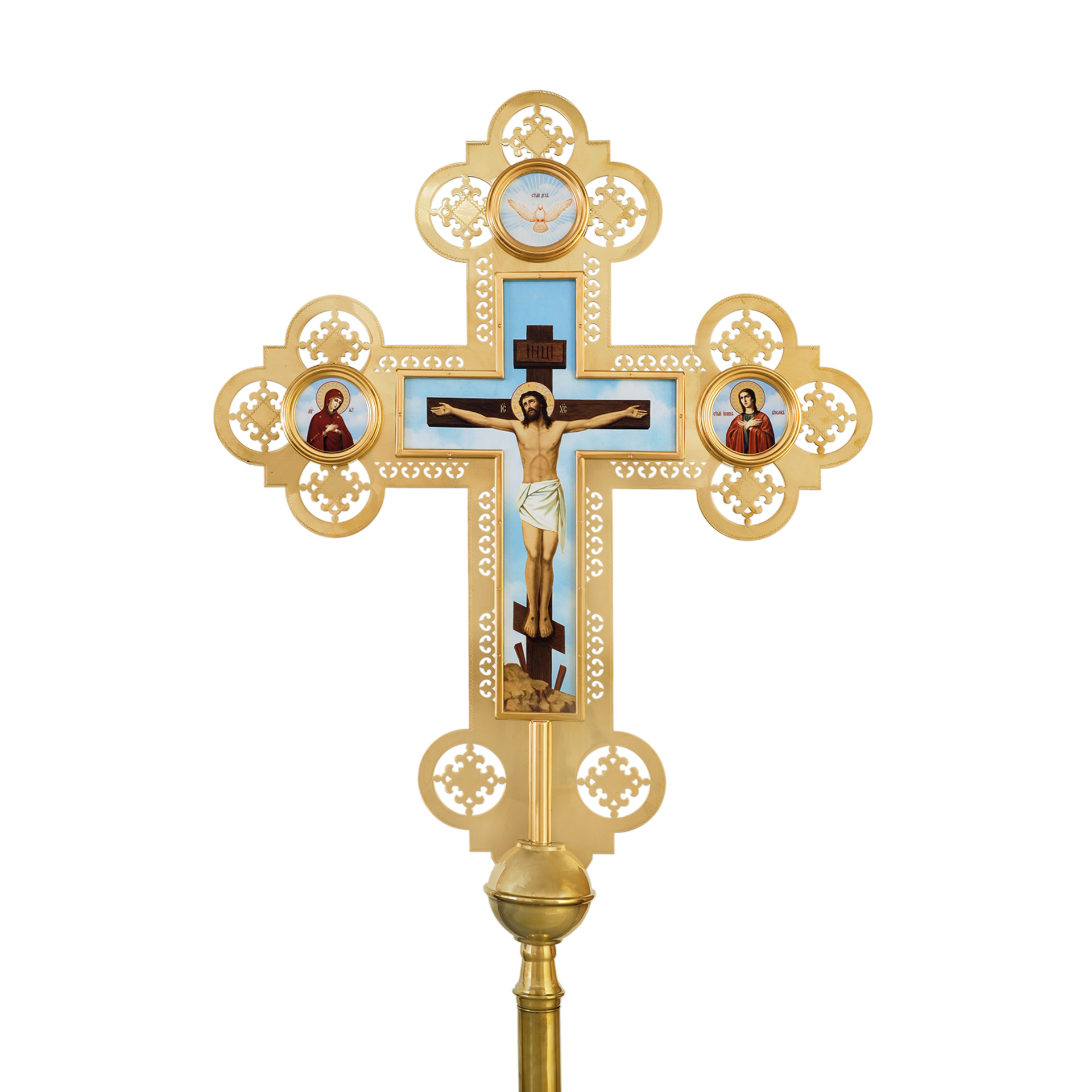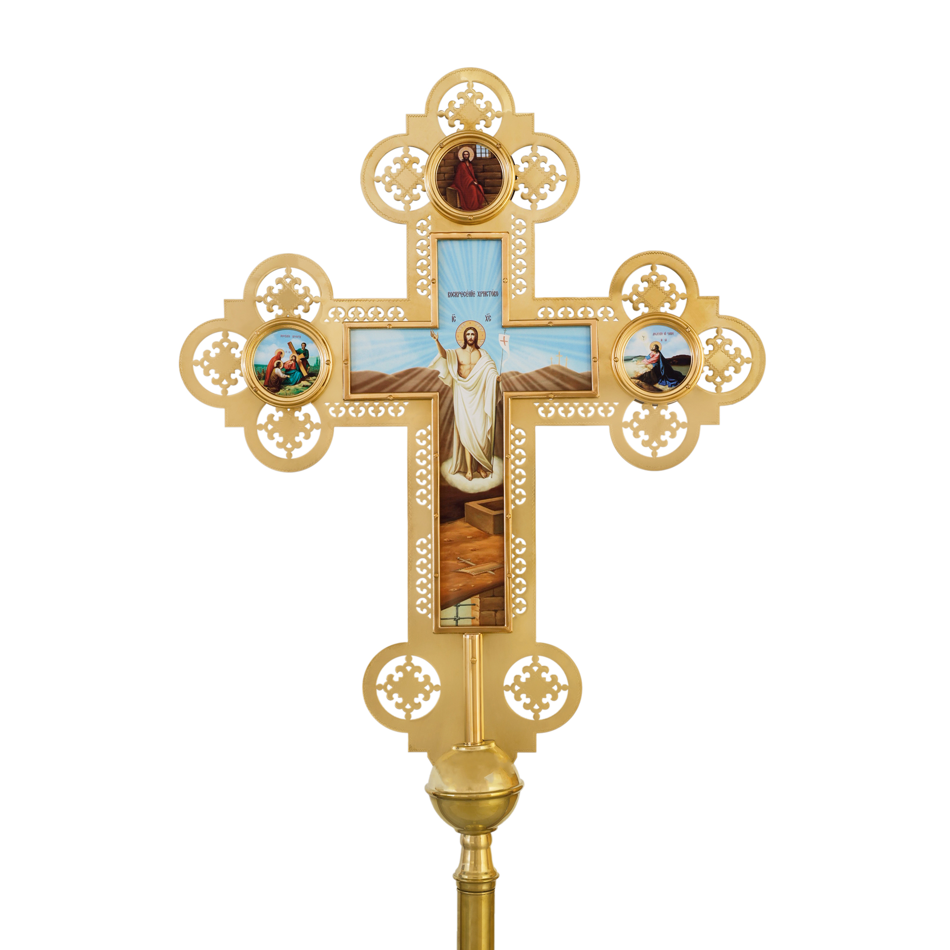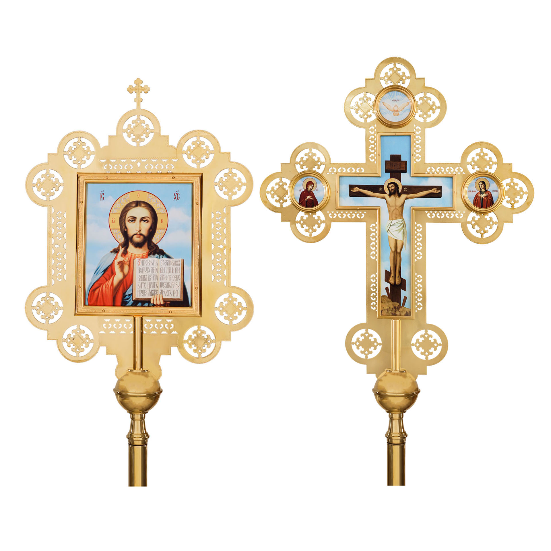Крест-икона запрестольная двухсторонняя гравировка част. золочение