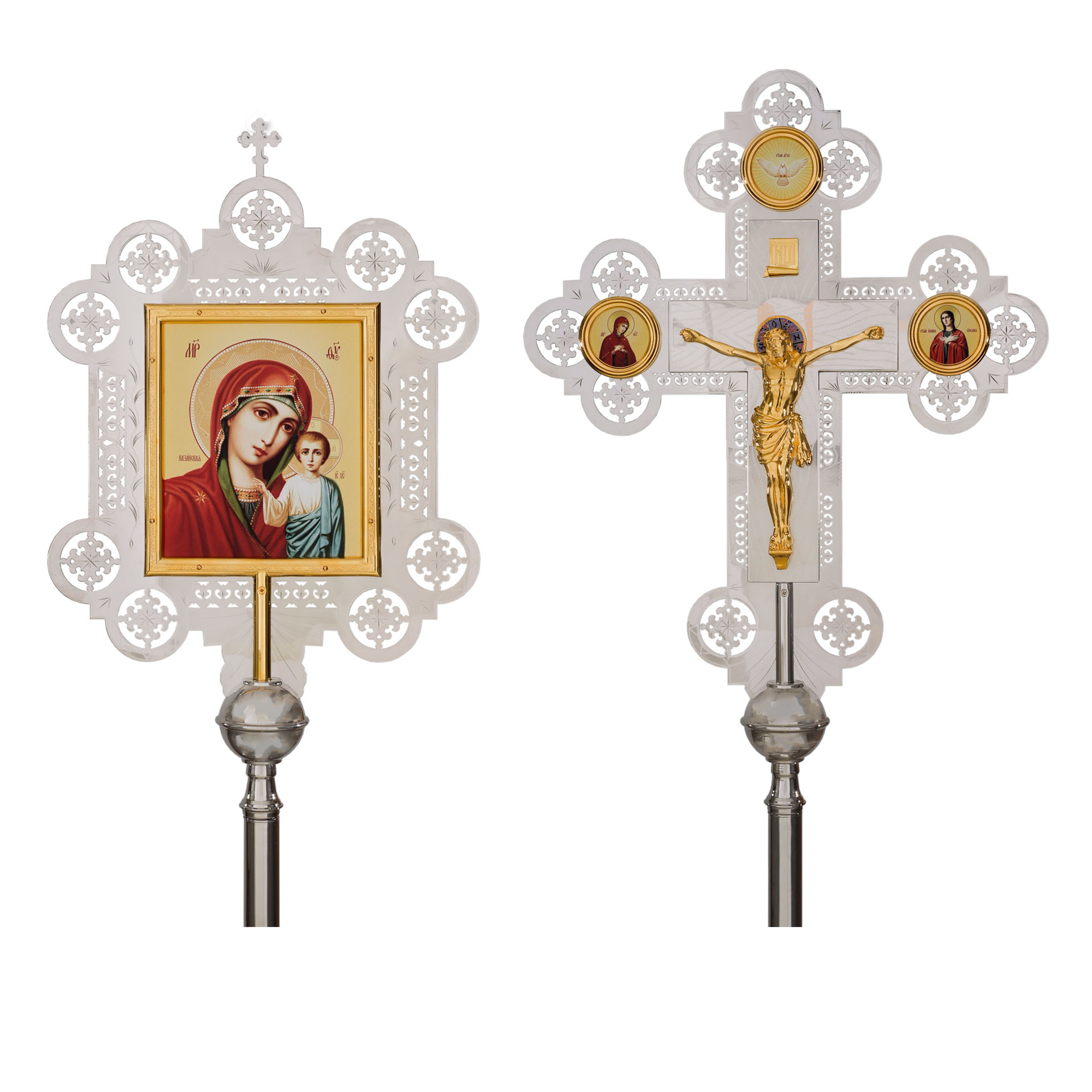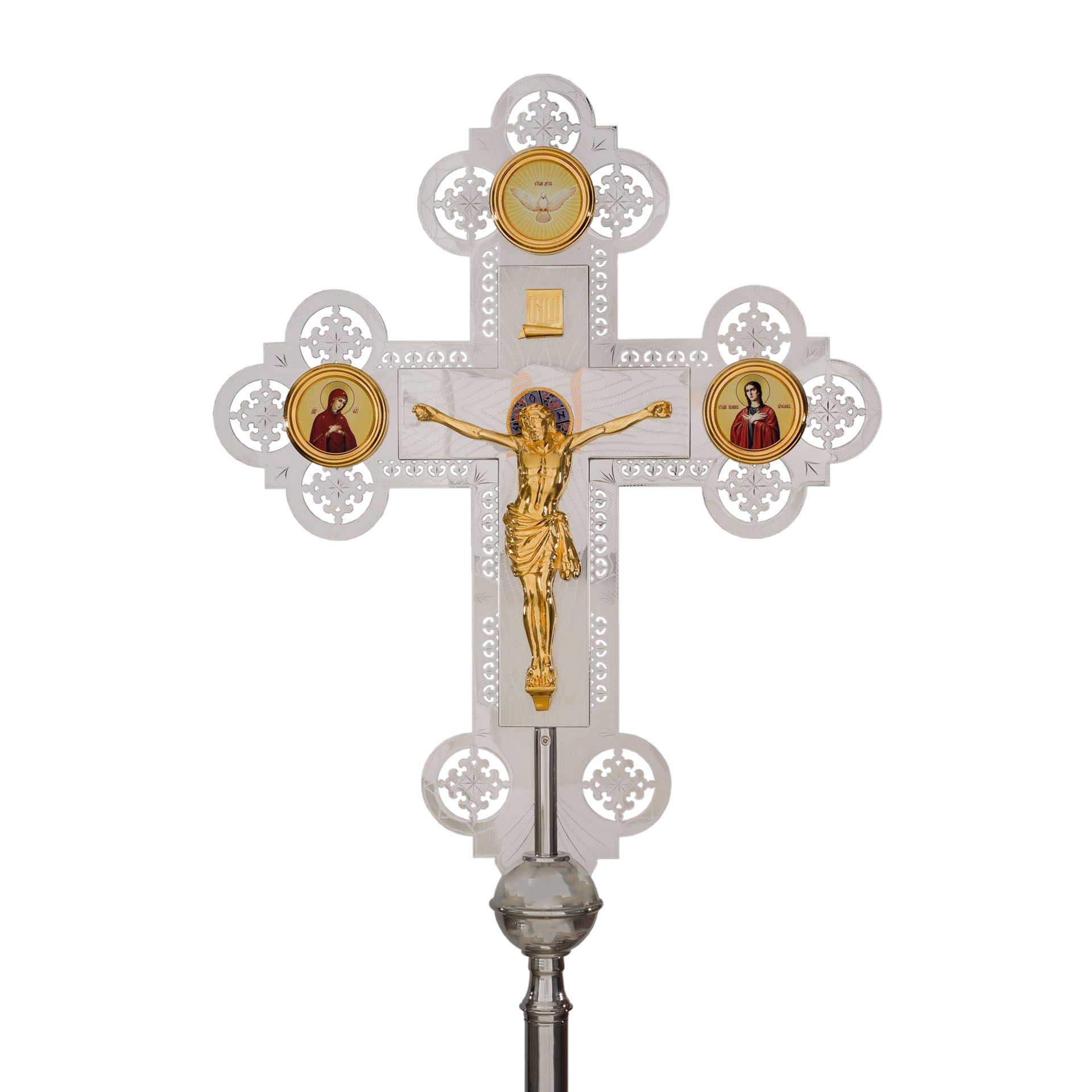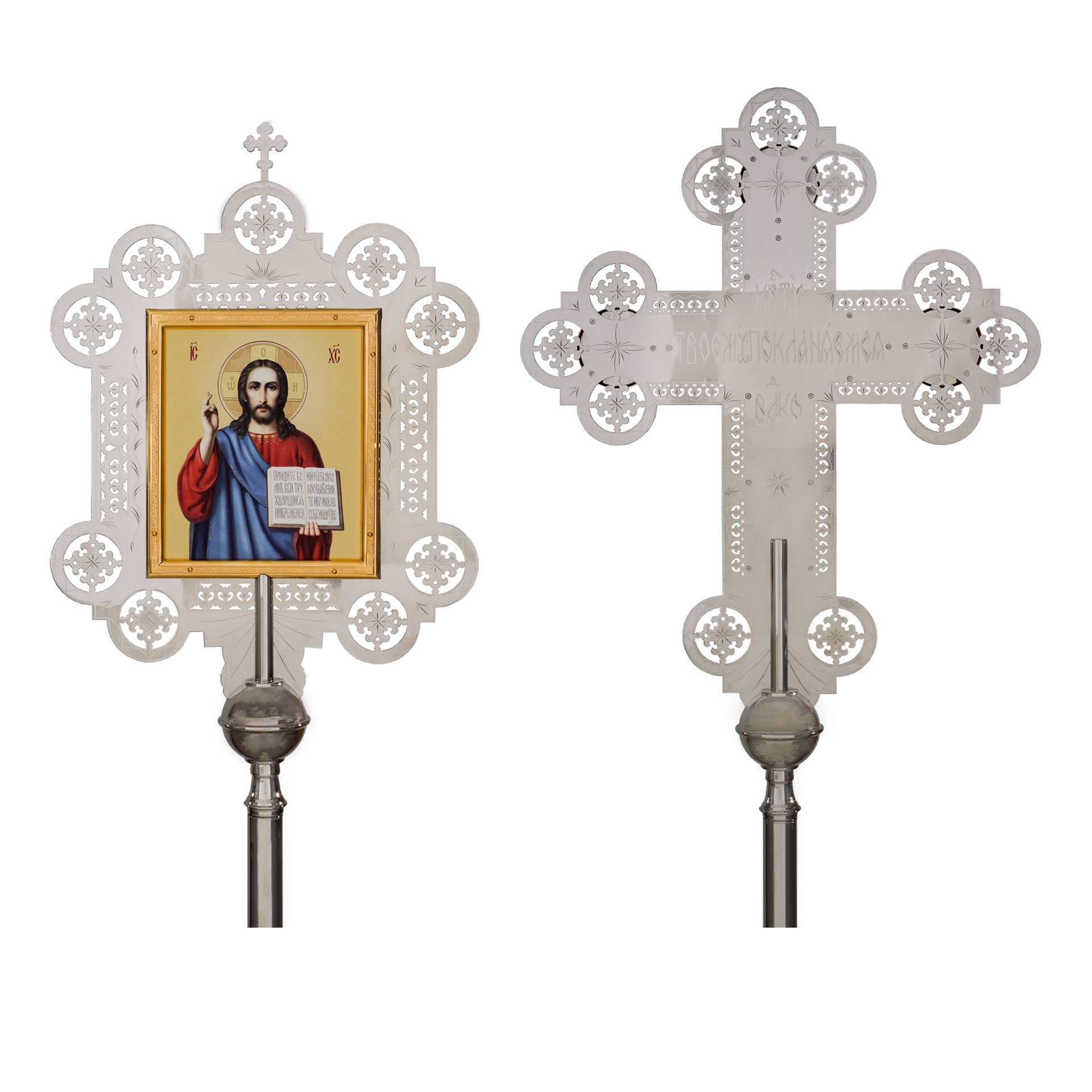 Крест-икона запрестольная с литым распятием гравировка част. золочение
