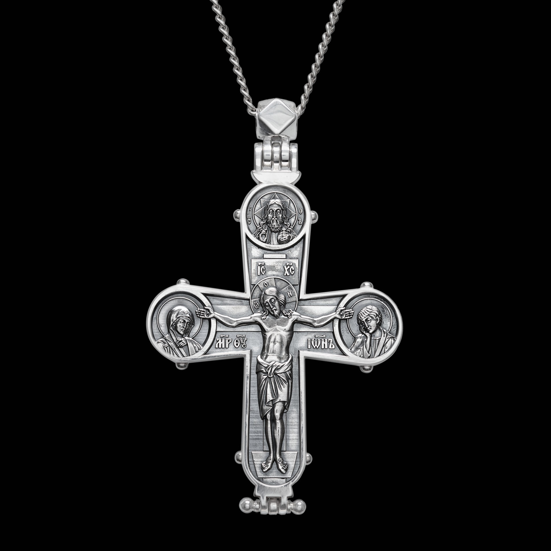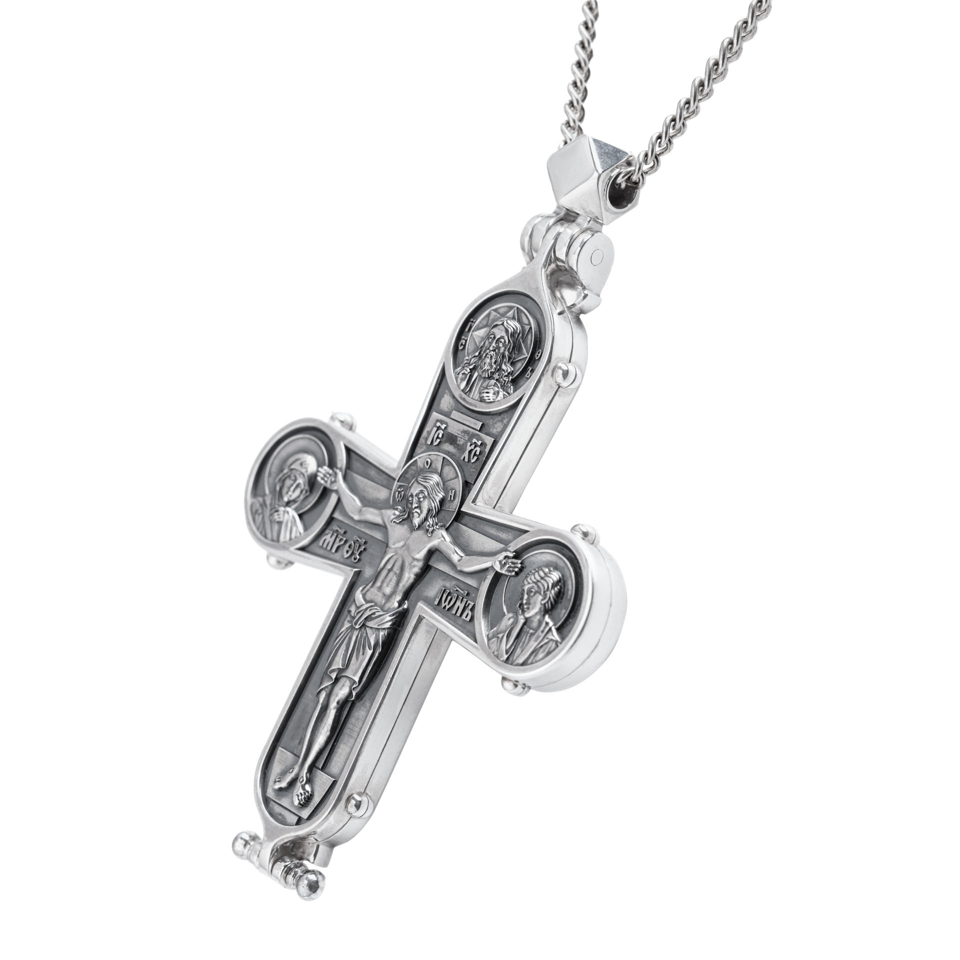 Крест мощевик большой литьевое распятие №25 серебро (УИН)