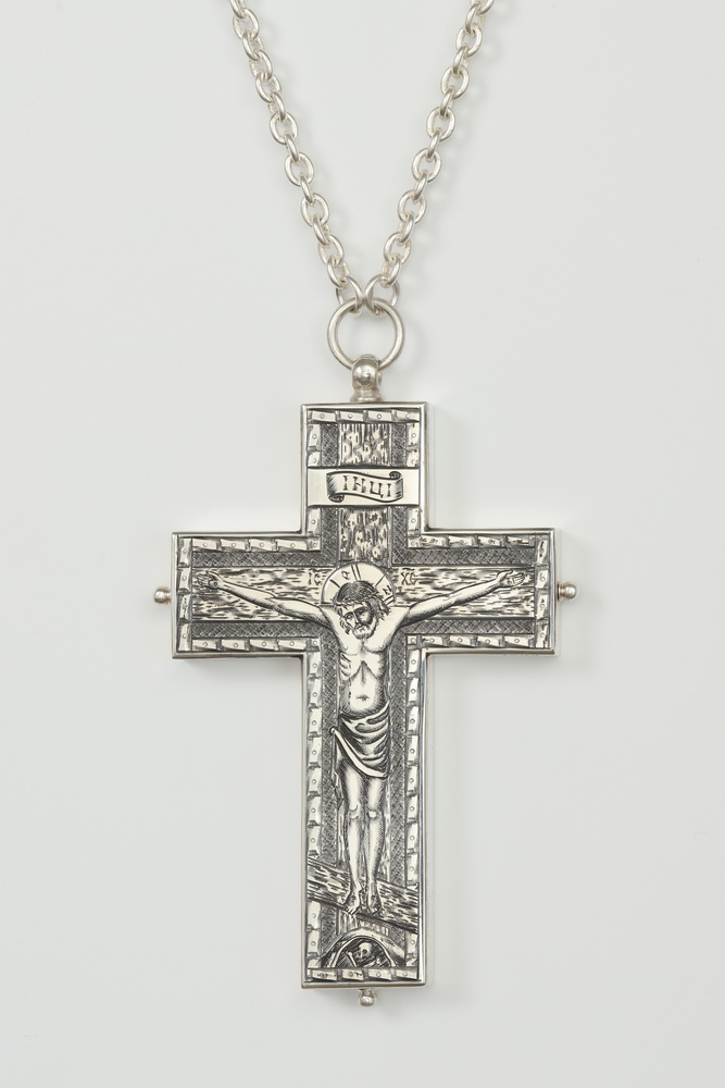 Крест мощевик большой ручная гравировка №2 серебро (УИН)