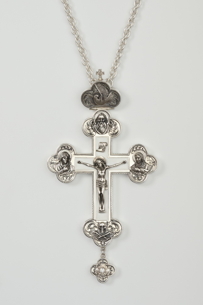 Крест мощевик большой ручная гравировка, литье, эмаль №4 серебро (УИН)