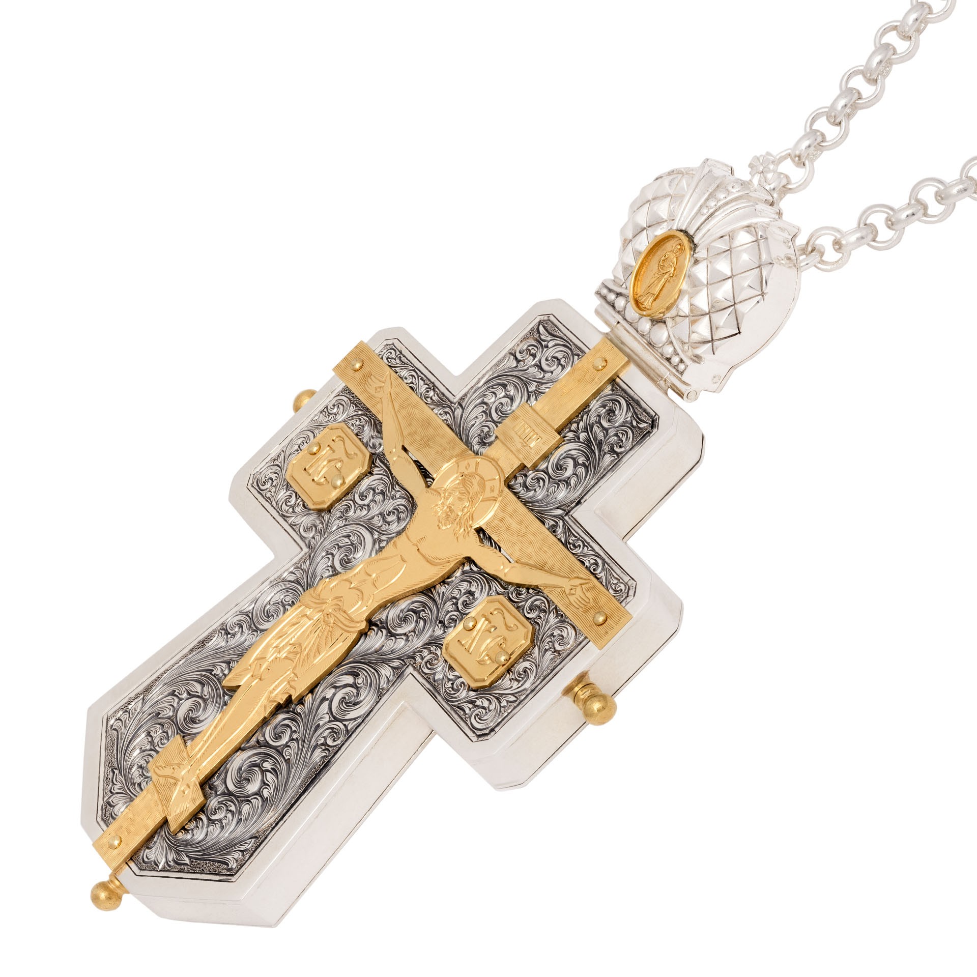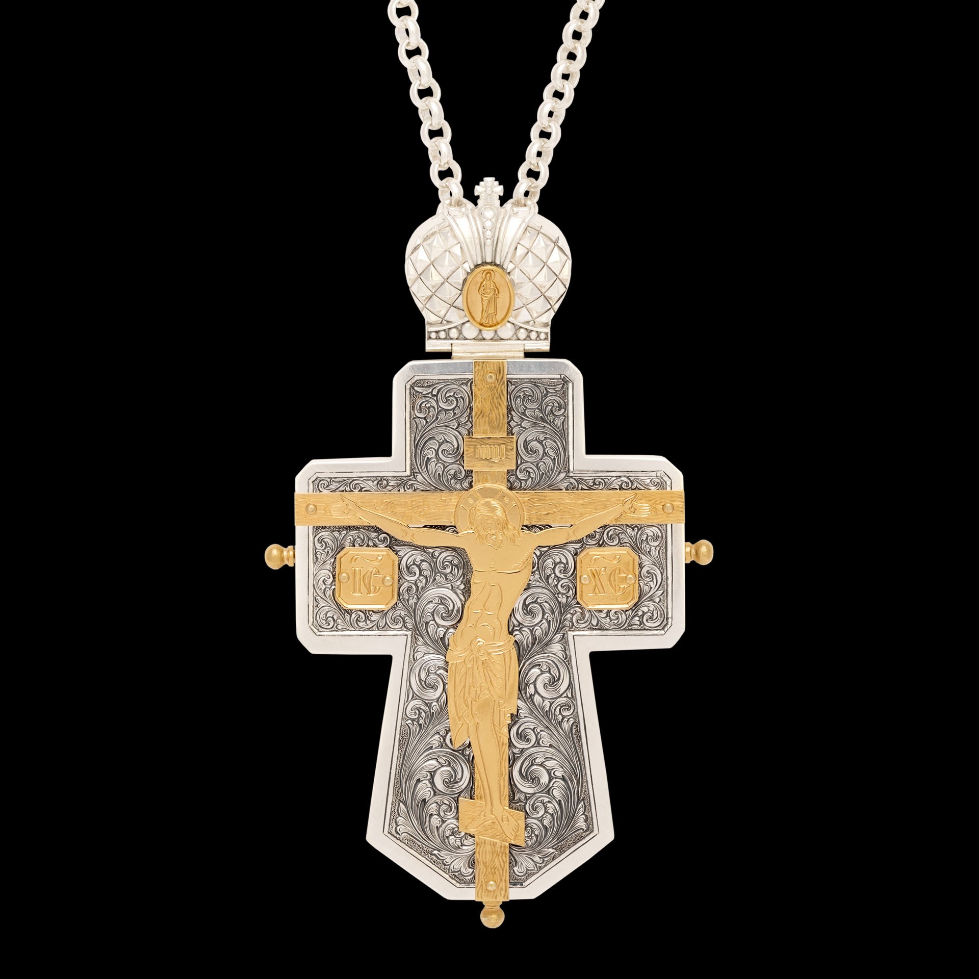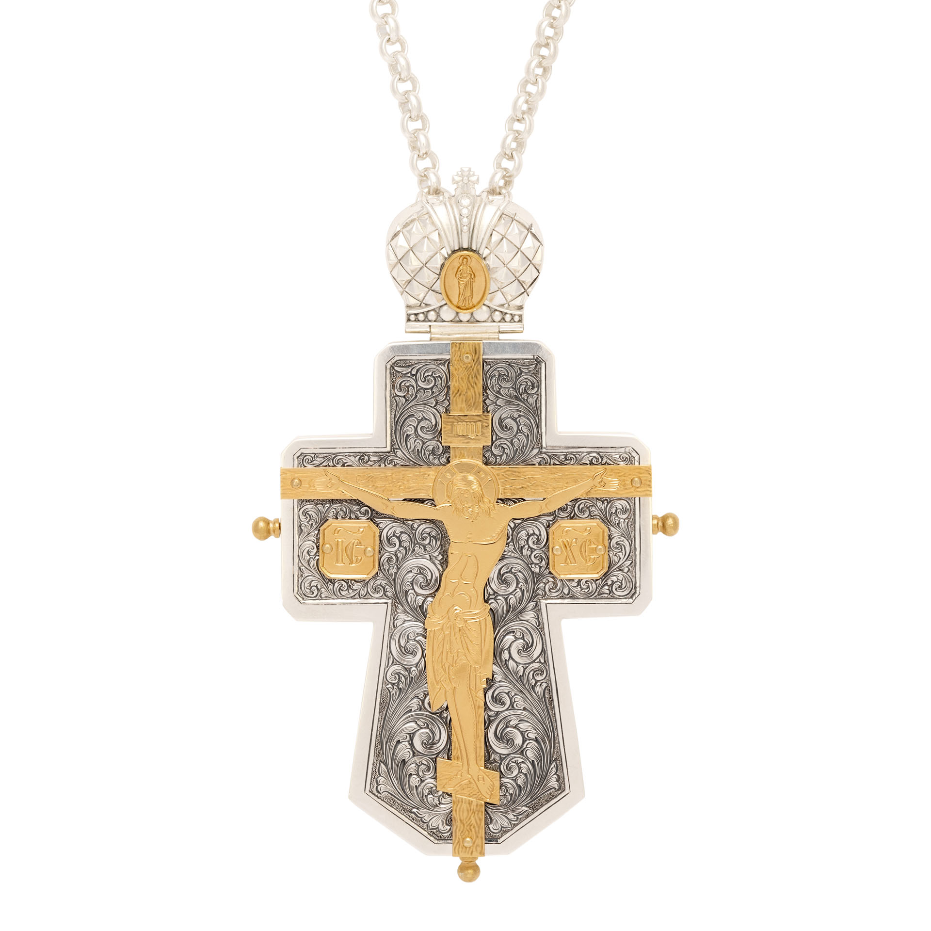 Крест наперсный №1010 мощевик гравировка / золочение / серебро (УИН)