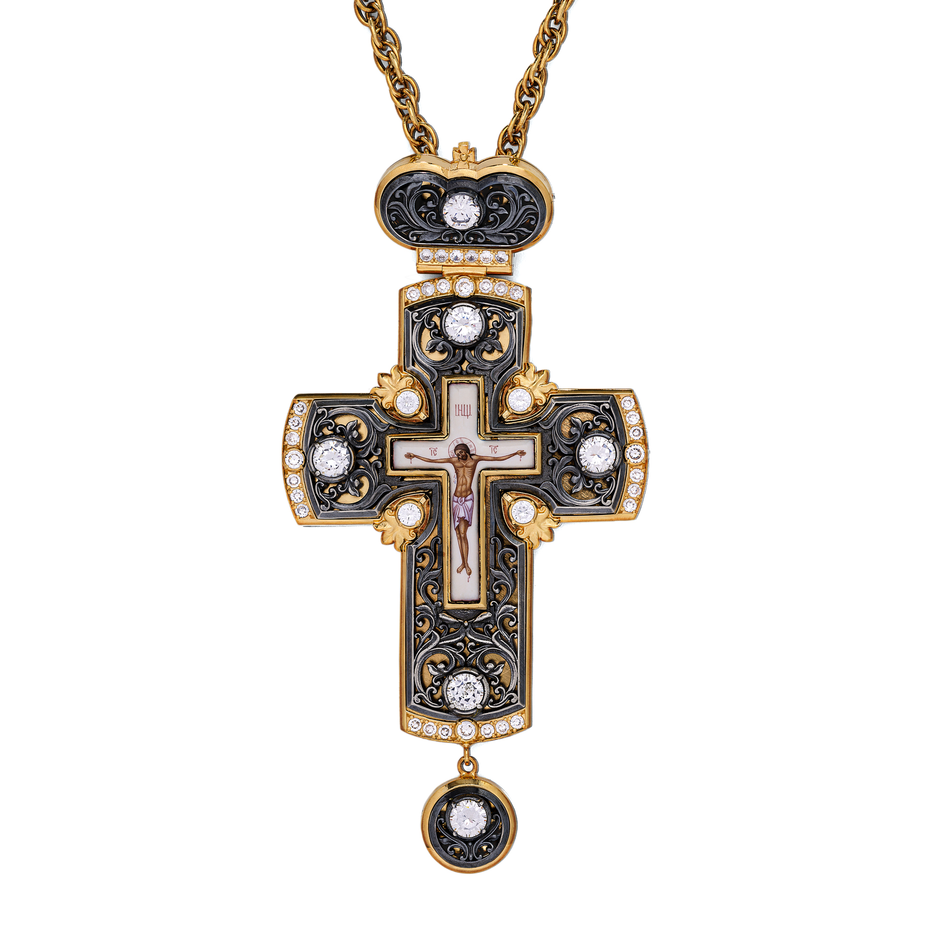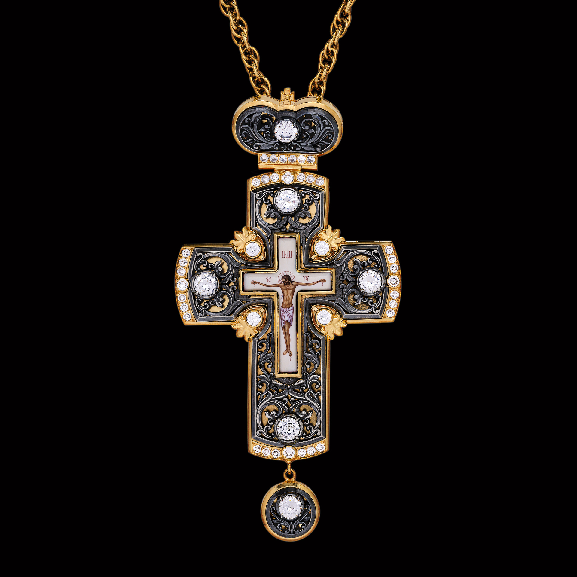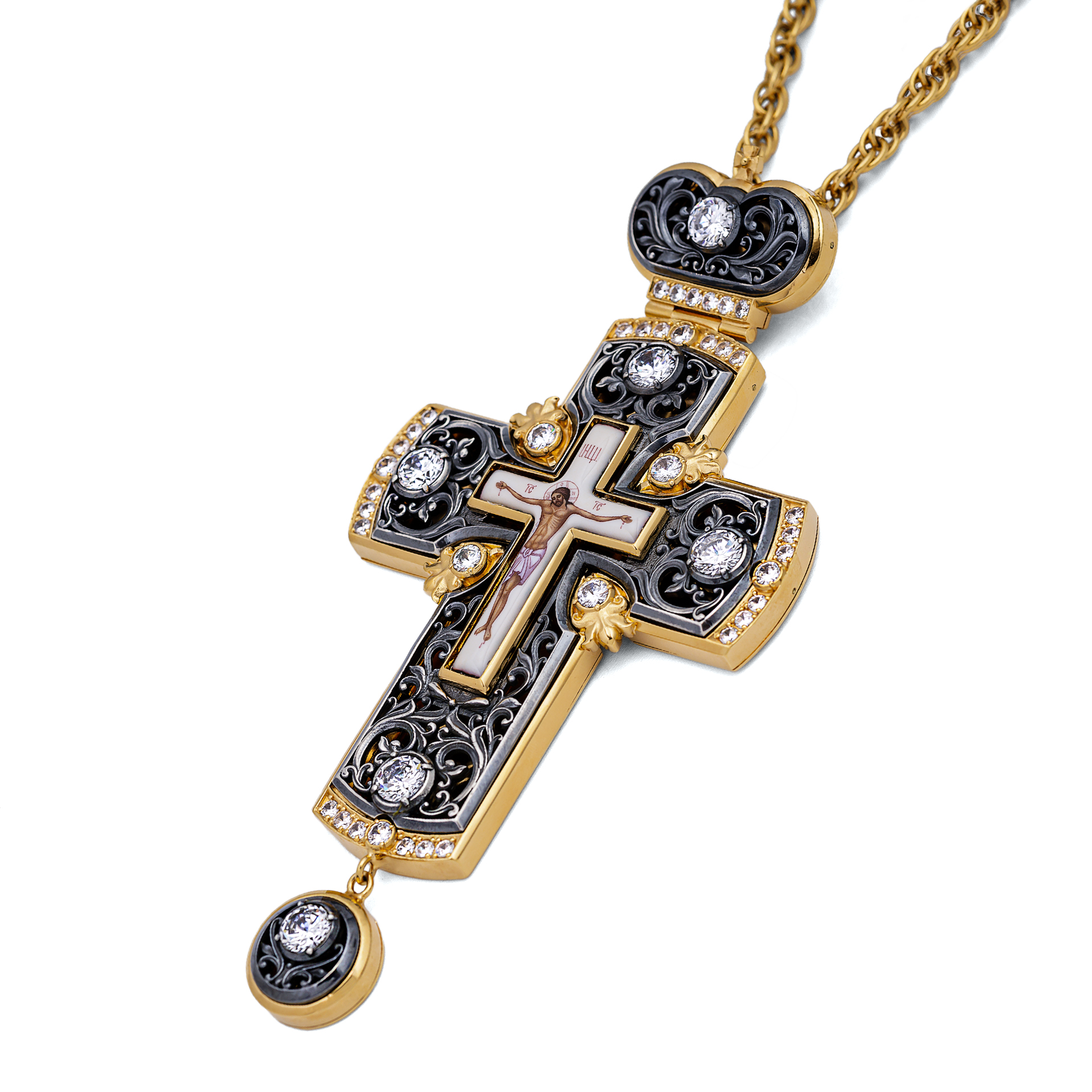 Крест наперсный №107 / Фианиты / золочение, серебрение
