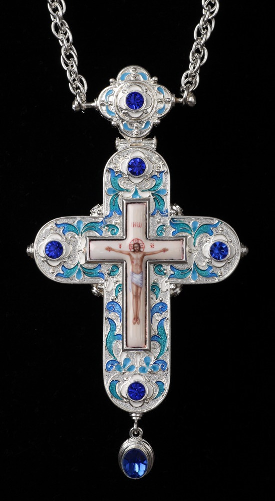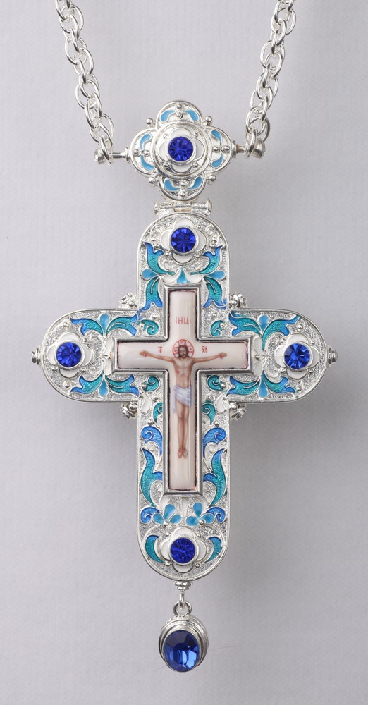 Крест наперсный №111 филигрань, эмаль / серебрение