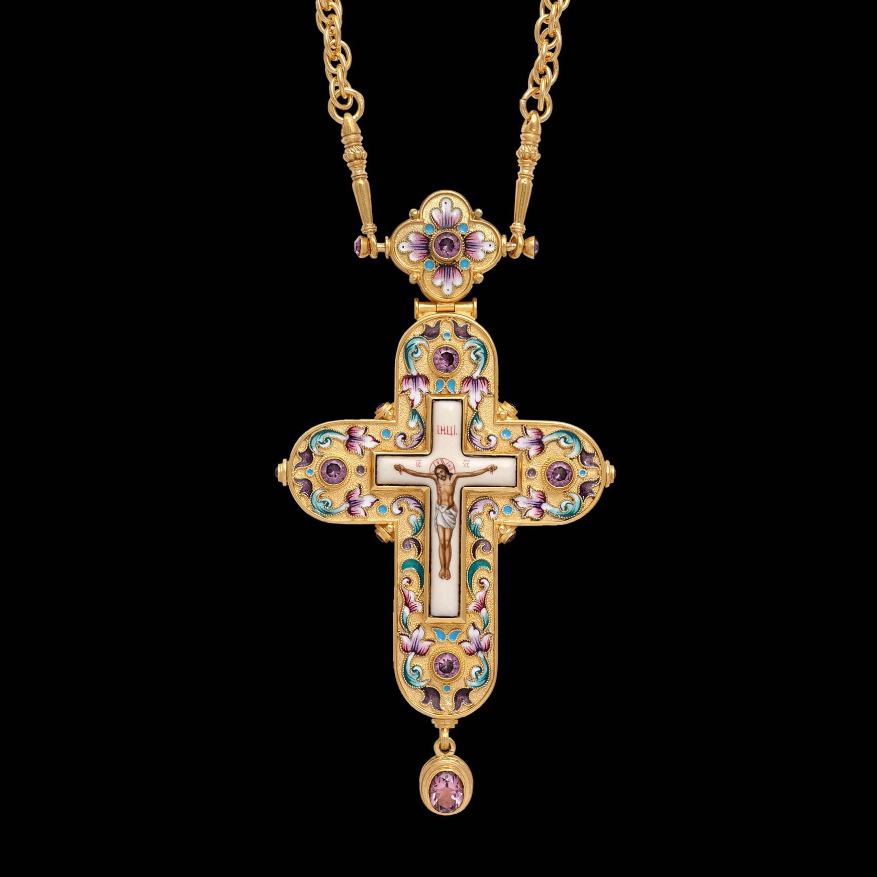 Крест наперсный №111 / золочение / серебро филигрань, эмаль, роспись (УИН)