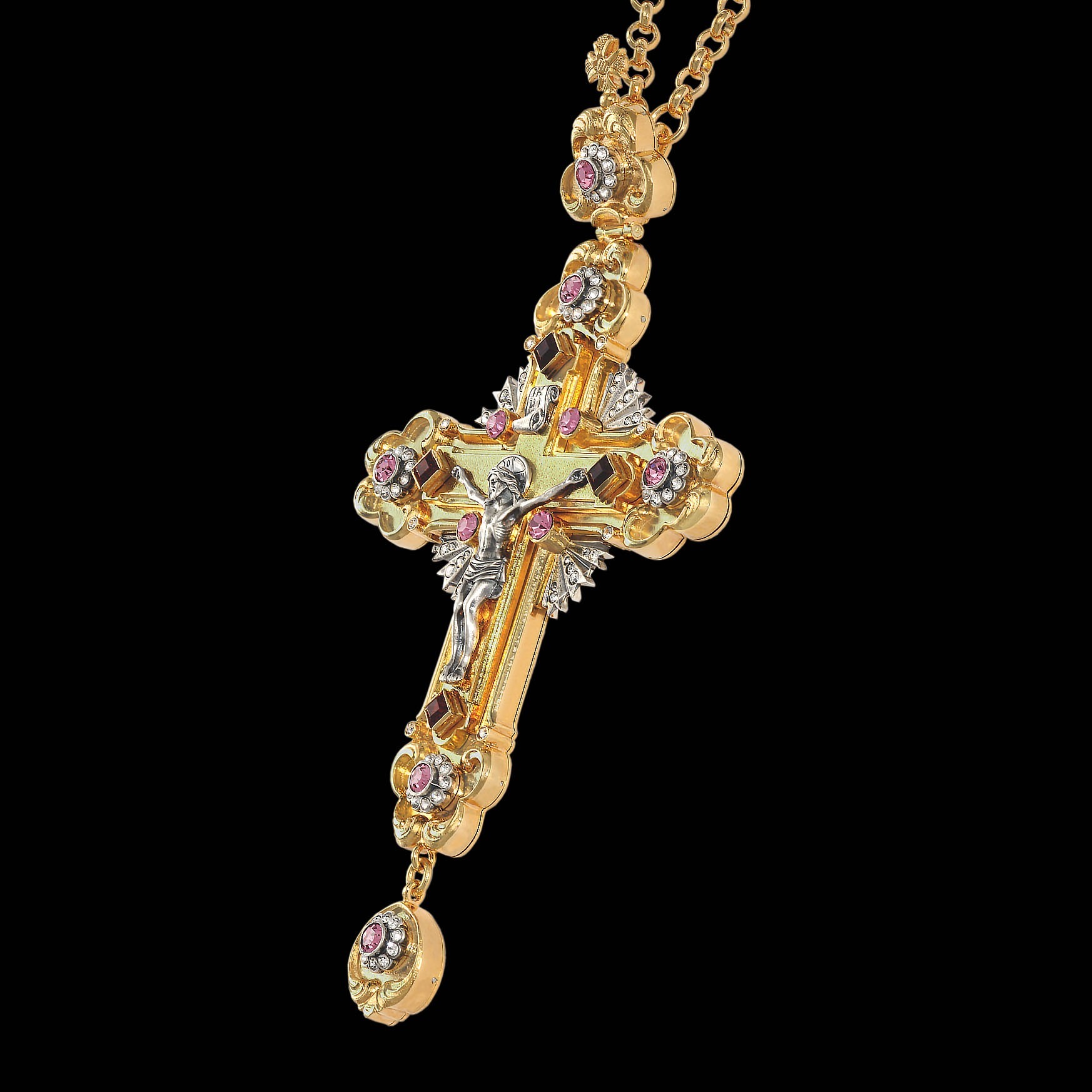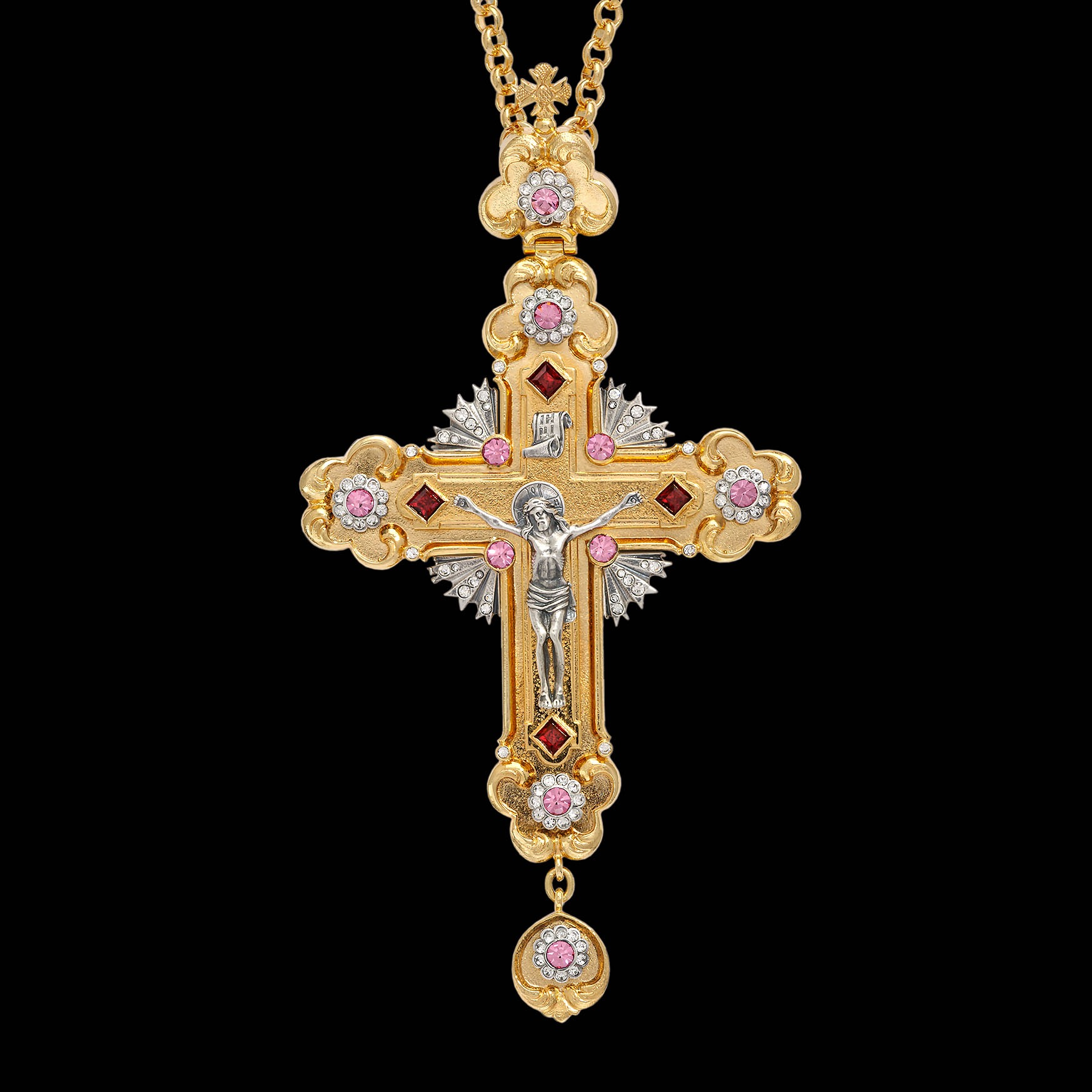 Крест наперсный №114 литьевое распятие / золочение, серебрение