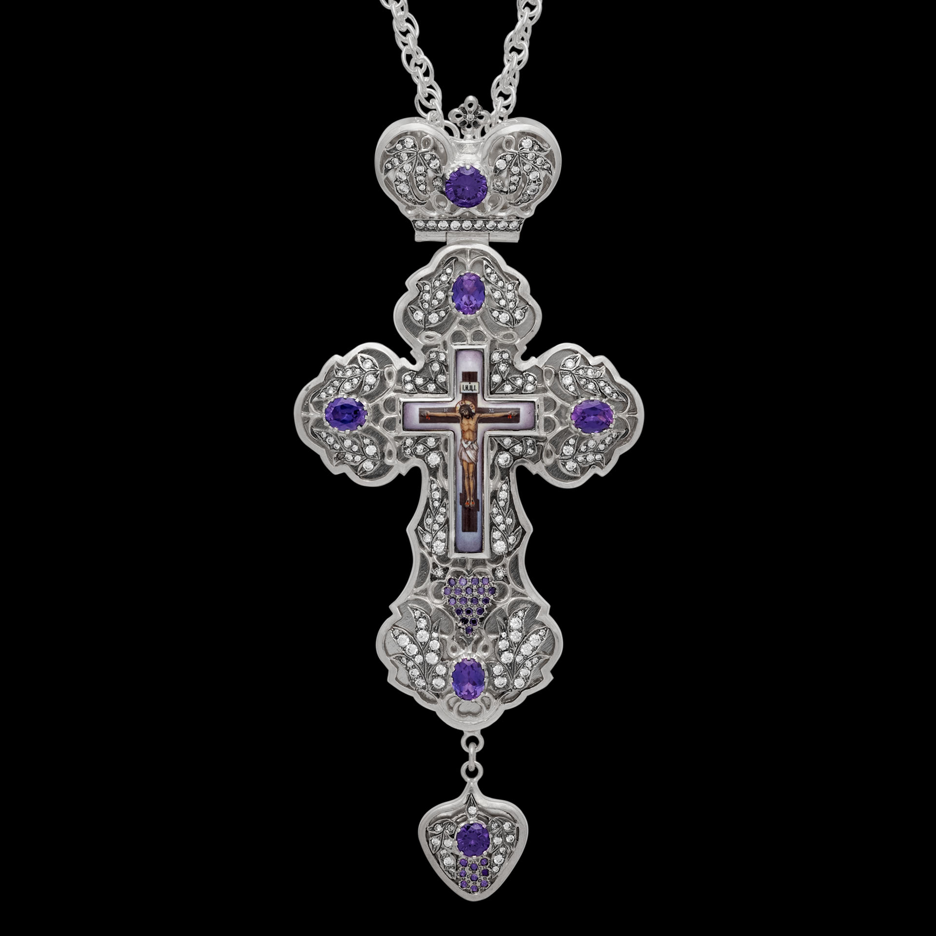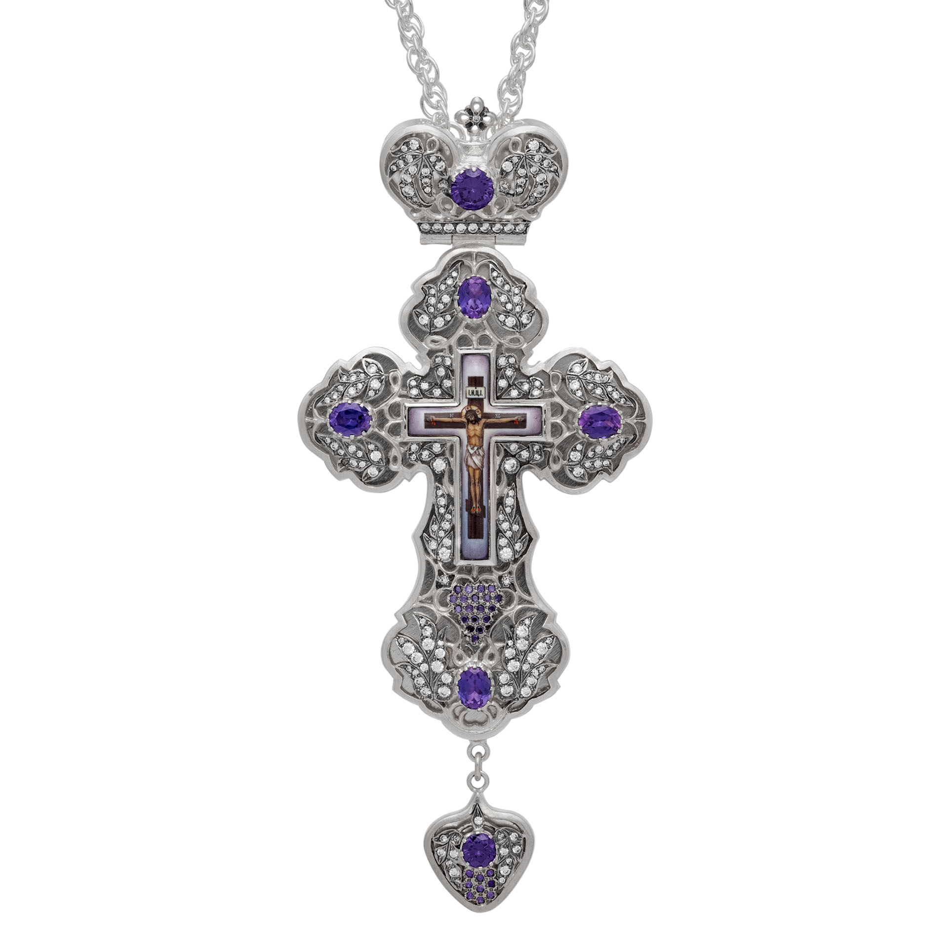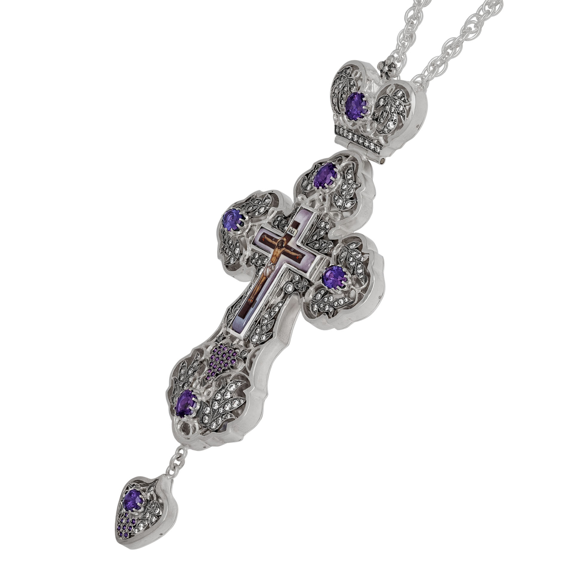 Крест наперсный №1238 / Фианиты деколь / серебрение