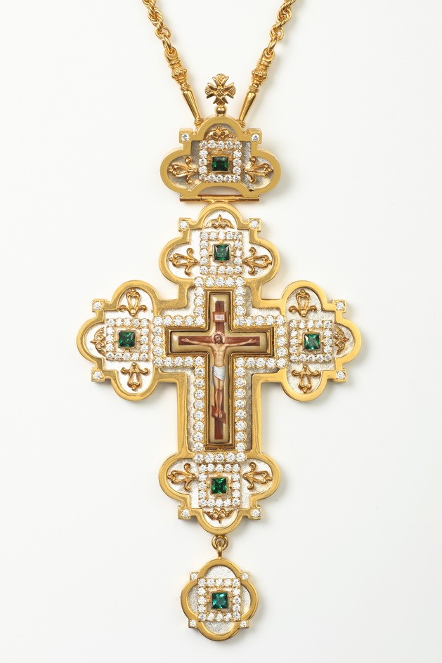 Крест наперсный №1256 / золочение / серебро финифть (УИН)