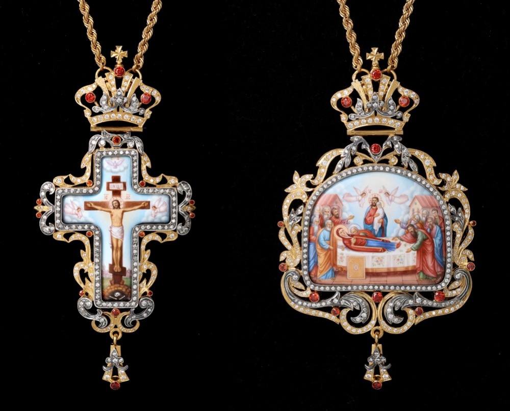 Крест наперсный №1264 / золочение / серебро финифть (УИН)