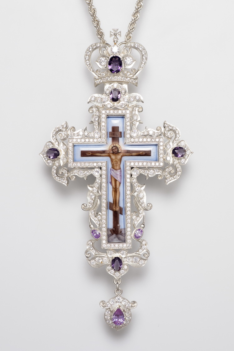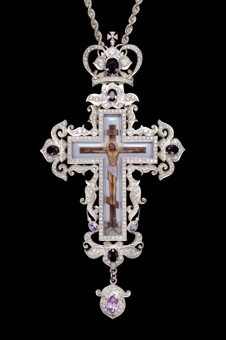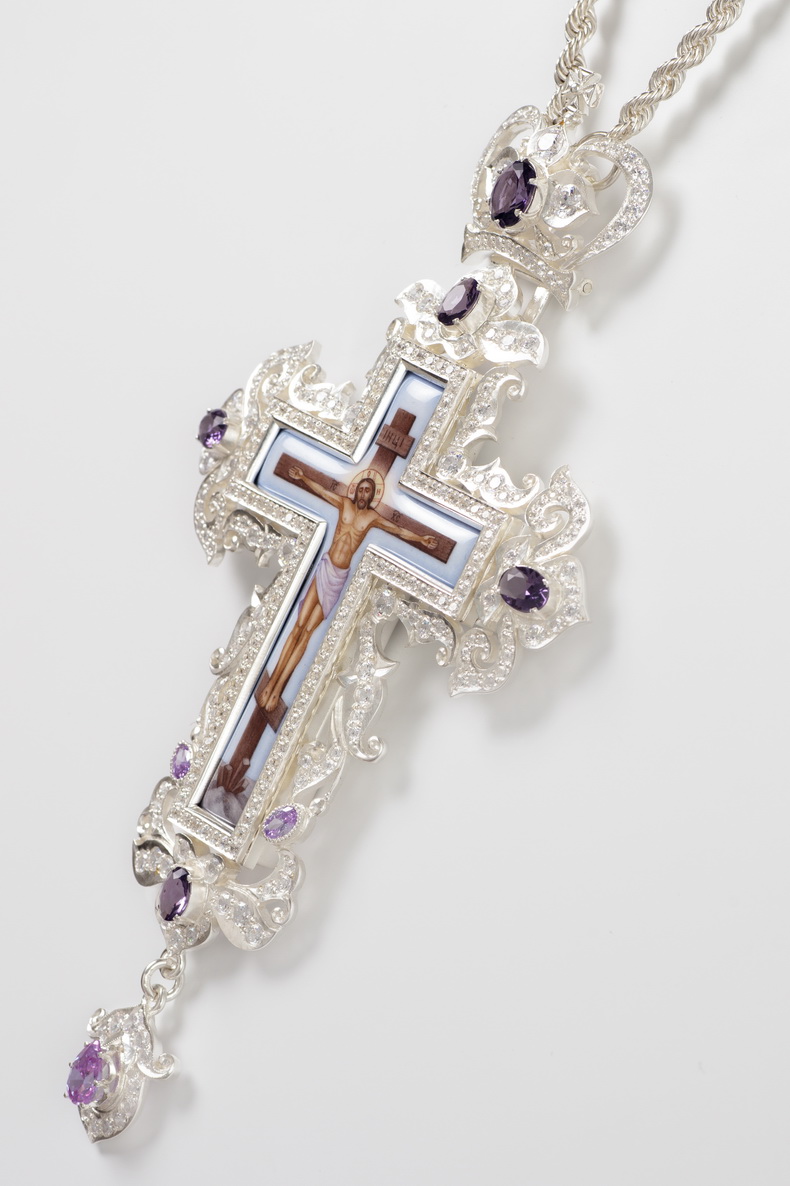 Крест наперсный №1368 / Фианиты серебро финифть (УИН)