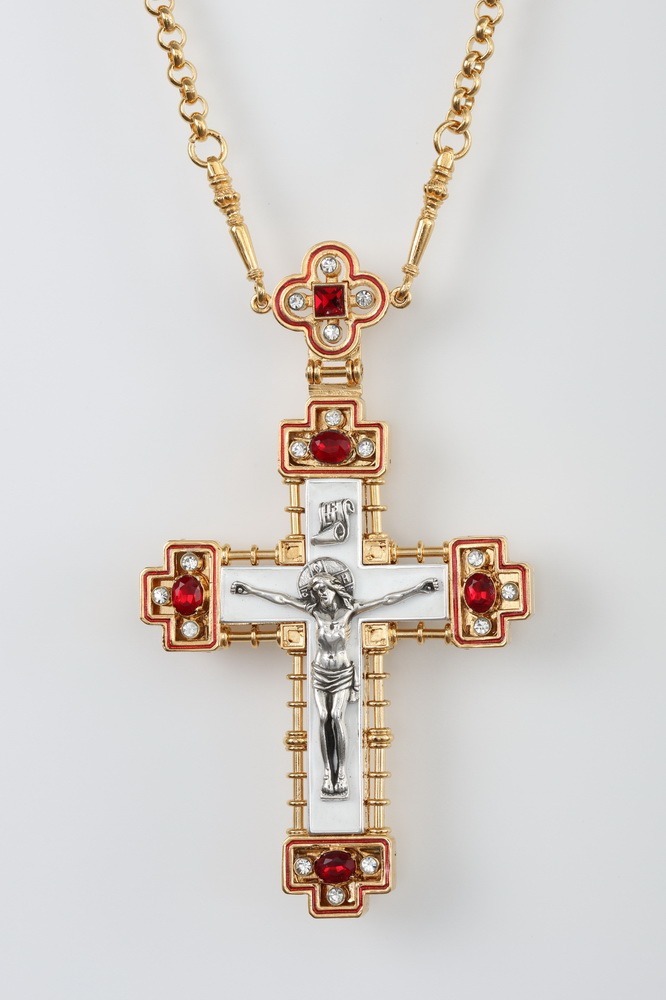 Крест наперсный №137 литьевое распятие, эмаль / золочение, серебрение