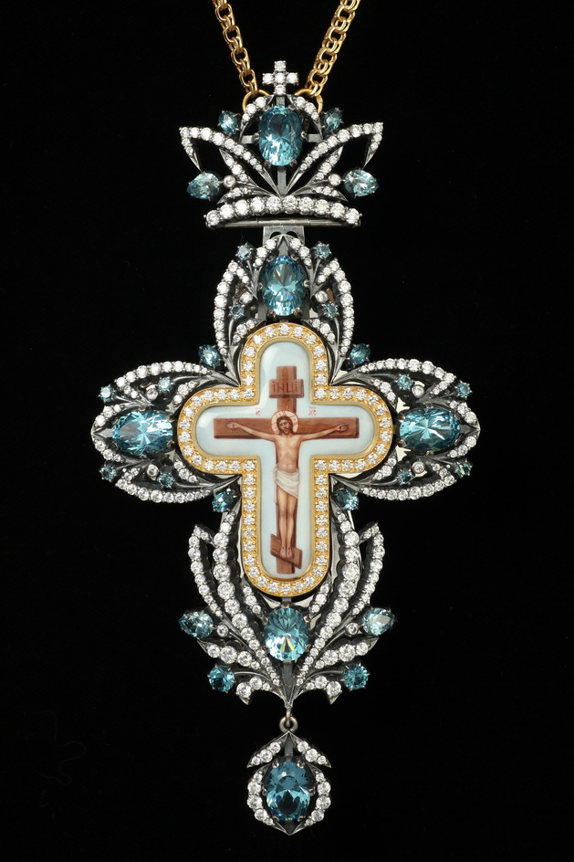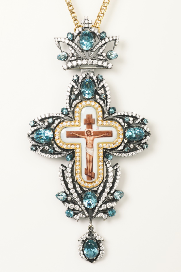 Крест наперсный №1371 / золочение / серебро финифть (УИН)
