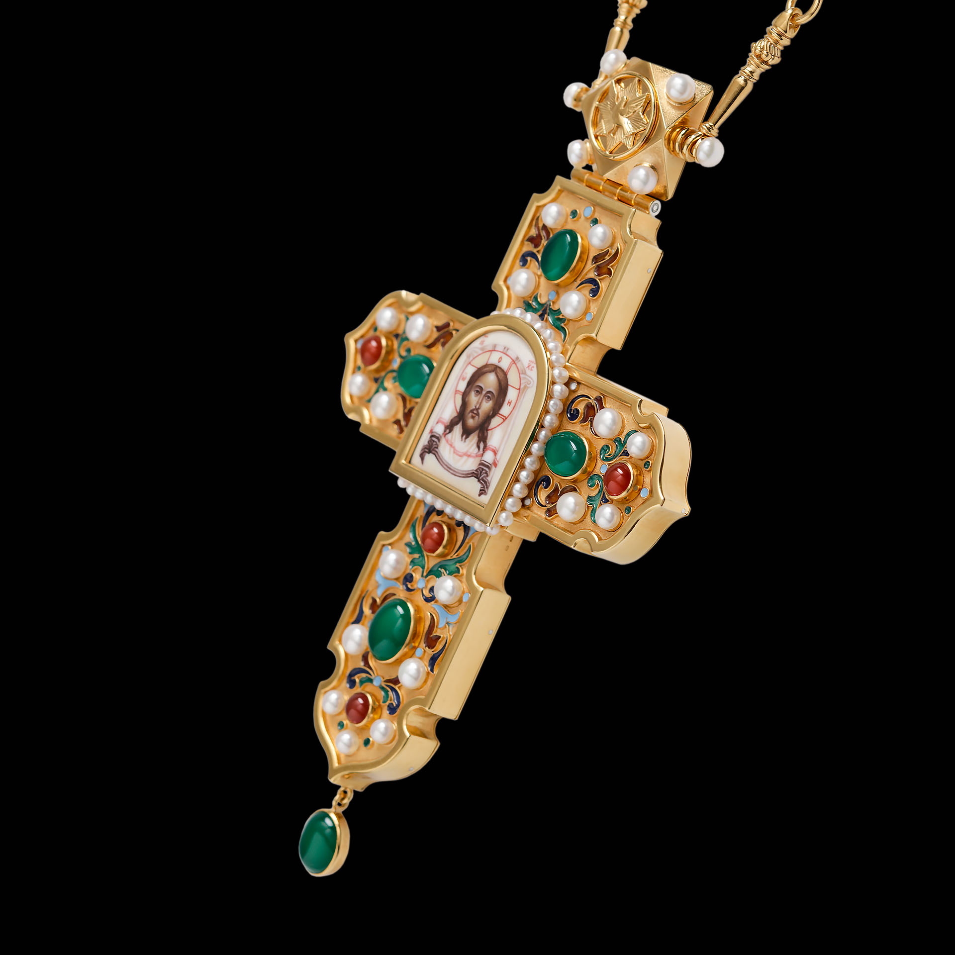 Крест архиерейский №1415 / Фианиты / золочение / серебро финифть, эмаль (УИН)