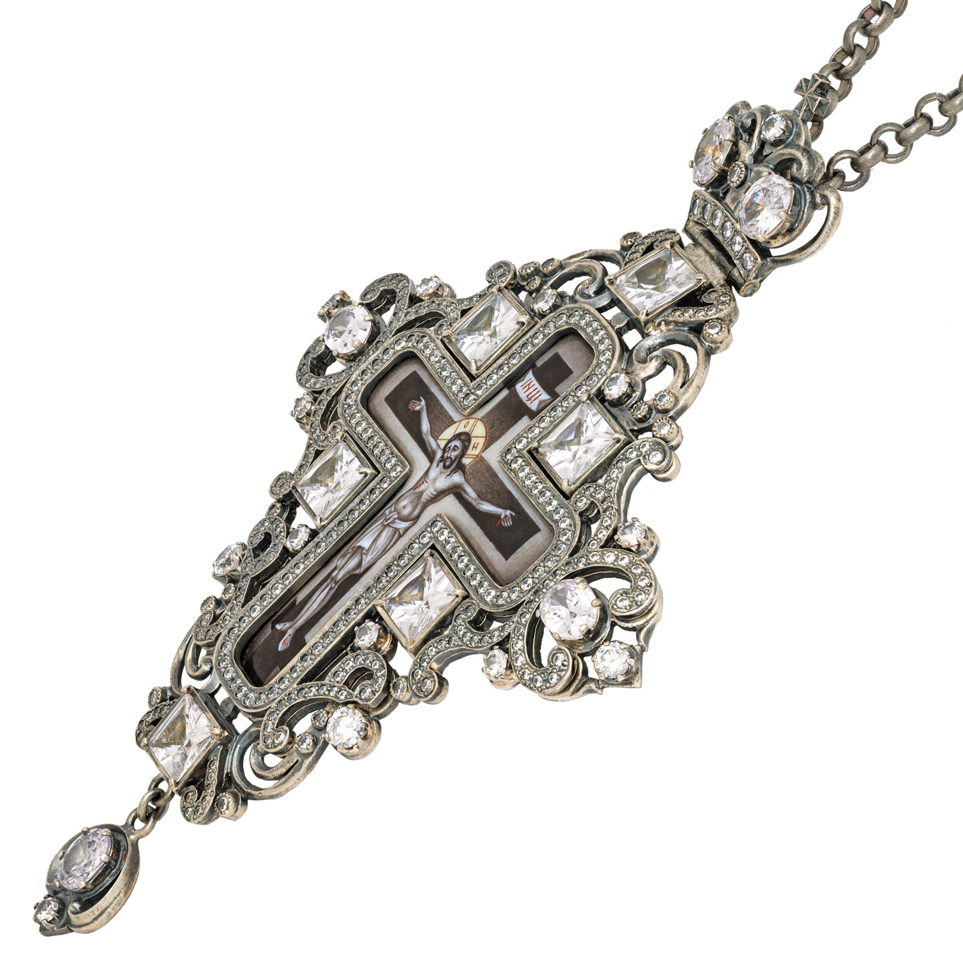 Крест наперсный №1417 / Фианиты финифть / серебрение