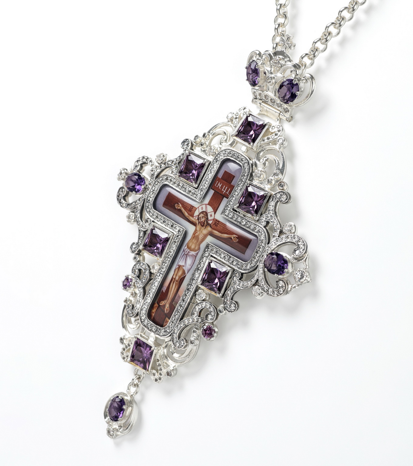 Крест наперсный №1417 / Фианиты серебро деколь