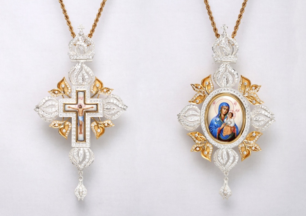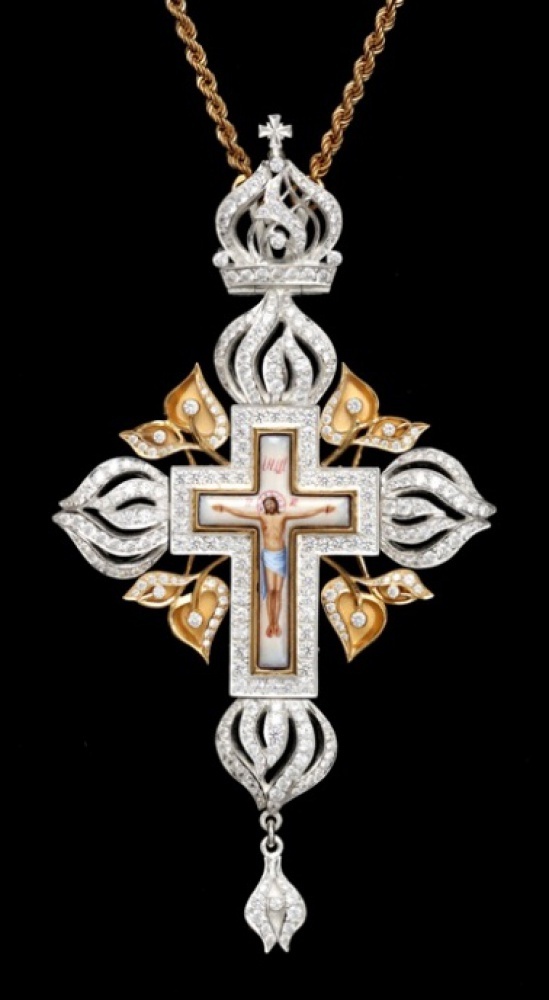 Крест наперсный №1470 / золочение / серебро финифть (УИН)