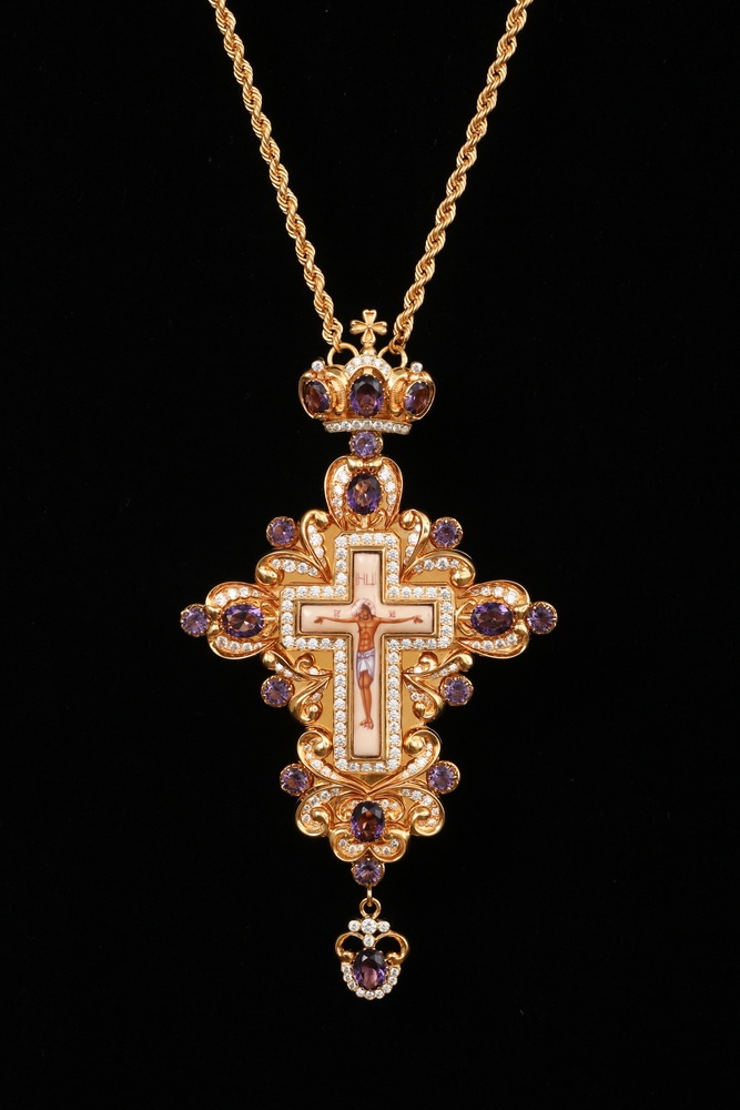 Крест наперсный №1521 / золочение / серебро финифть (УИН)